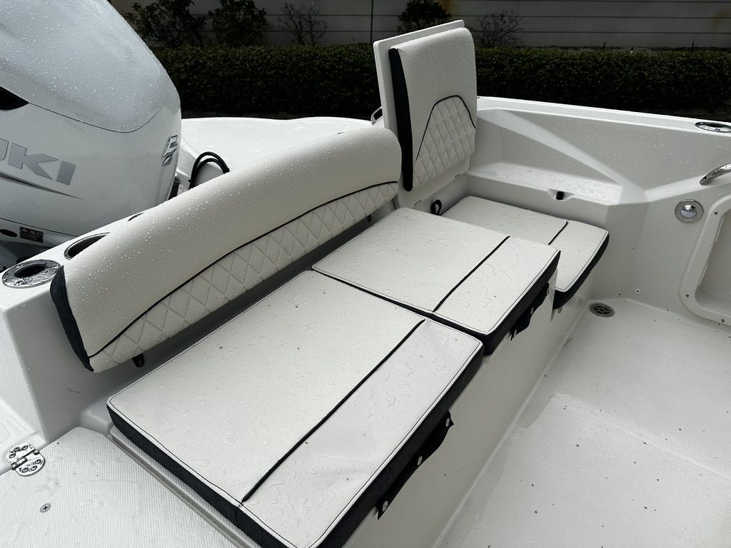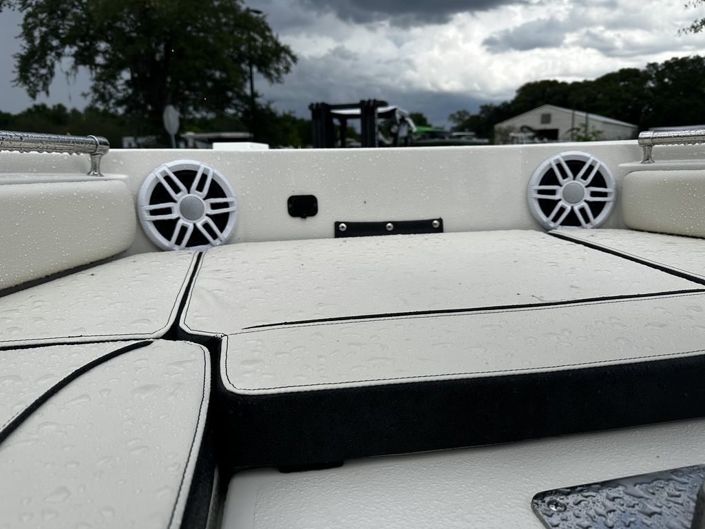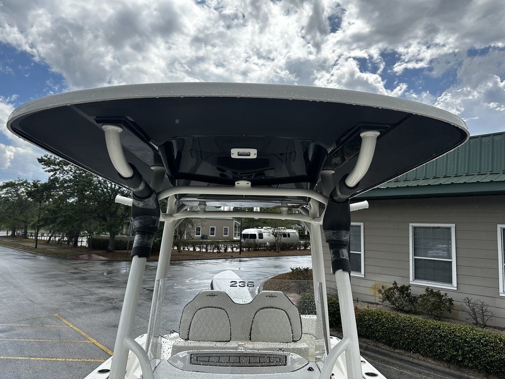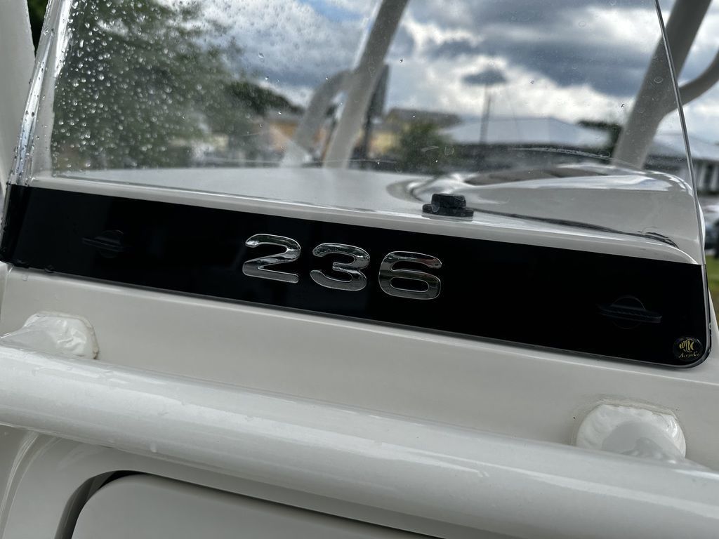 While the 236CC is designed for use as a coastal fishing boat, it's really a multi-purpose boat that can be used for a multitude of activities -- pulling kids on a tube, cruising to dinner, or just a leisurely ride along the waterways. Most noticeable, as you approach the 236CC, is the leaning post, outfitted with custom molded flip-up bolster seats and a 74-quart Engel cooler beneath, and the optional T-top. These features alone set it apart from its little brothers. Add a few options and this boat is ready for some coastal fishing. Go ahead and call your fishing buddies now!