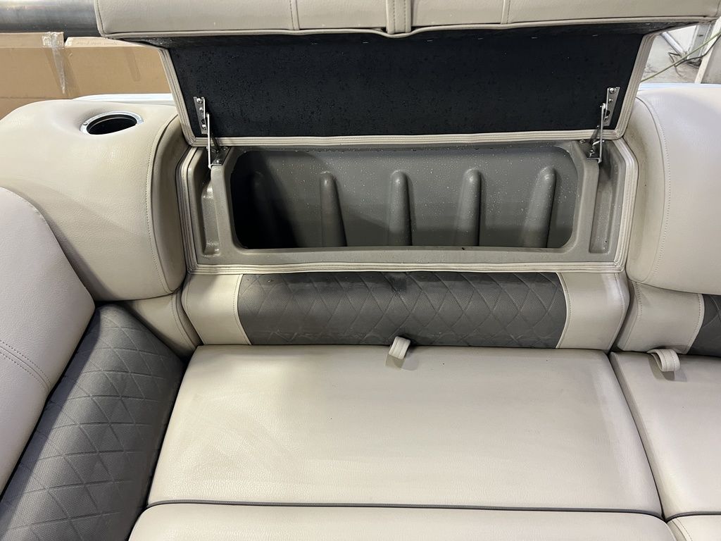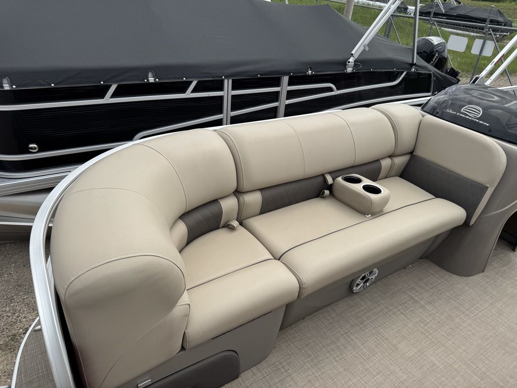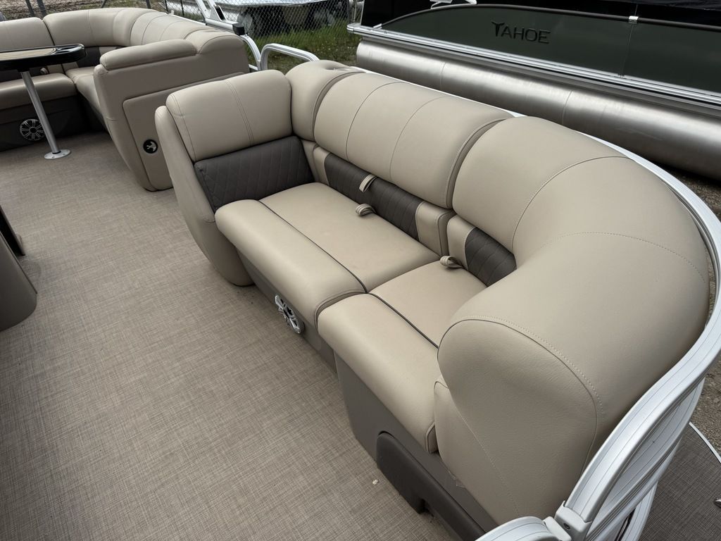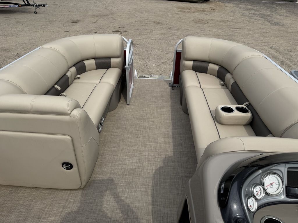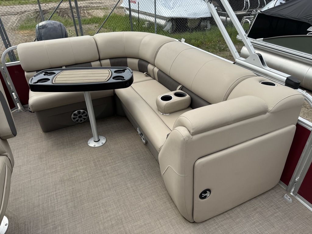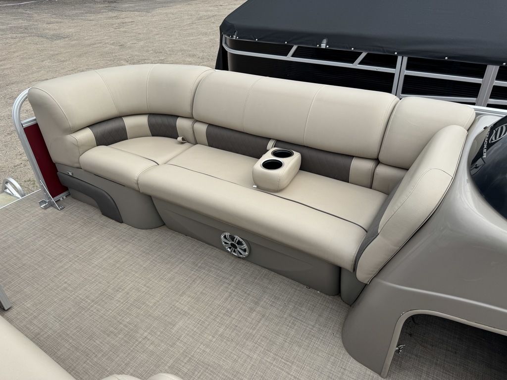 EFI Outboard. This cruise layout pontoon features 2 couches in front with an