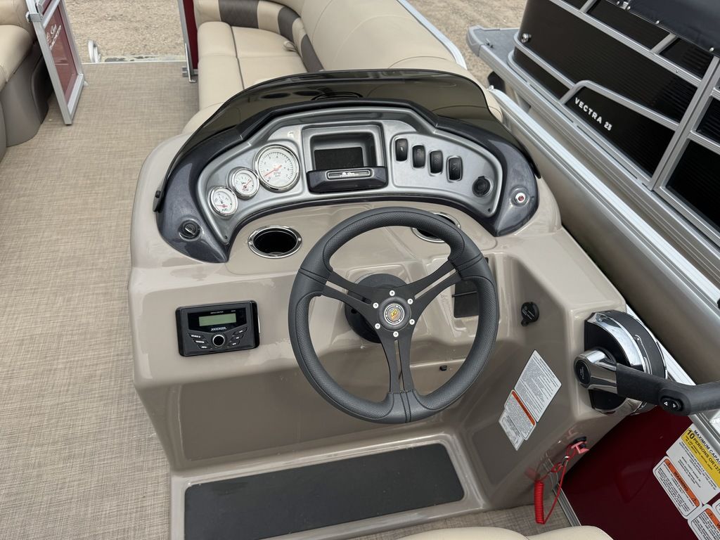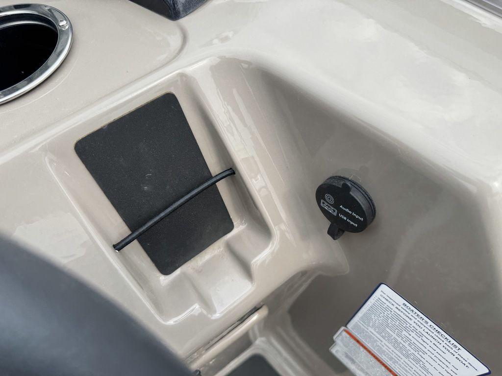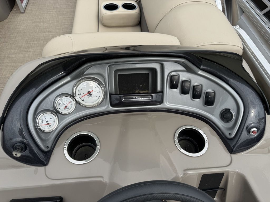 features a Tachometer, Fuel and Trim gauge. There is a Kicker Bluetooth audio