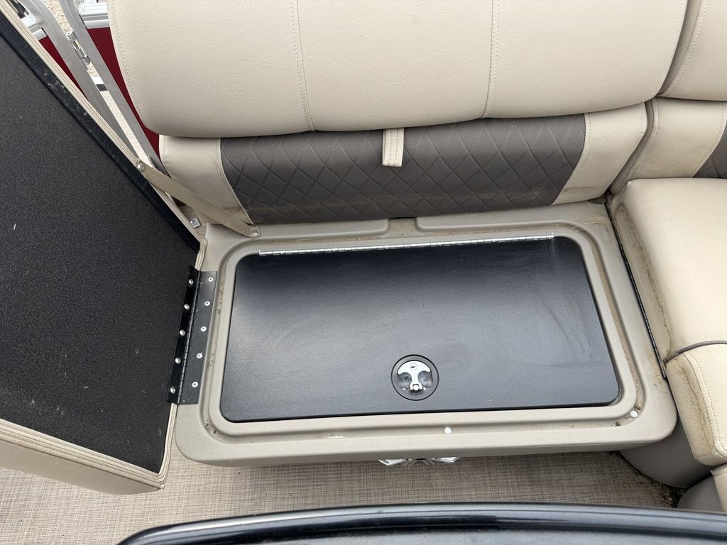 There is a lockable storage compartment underneath the rearmost seat cushion of