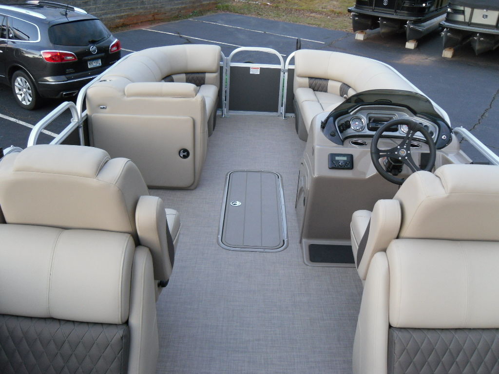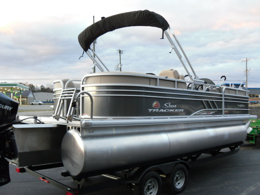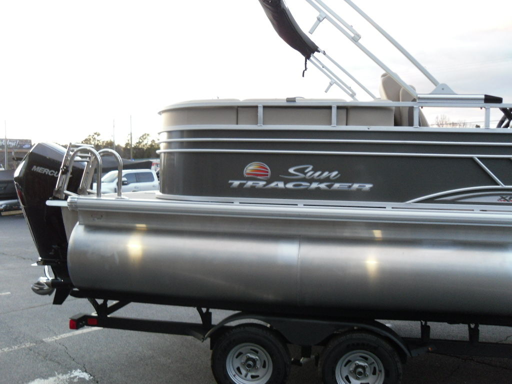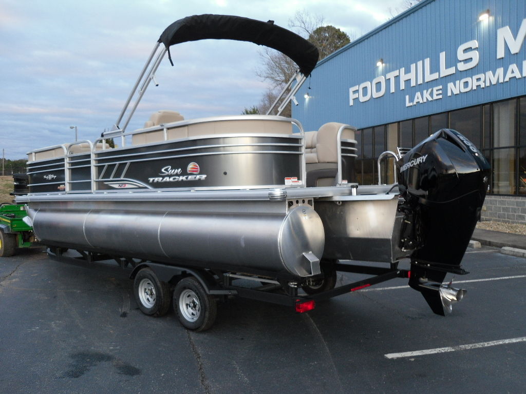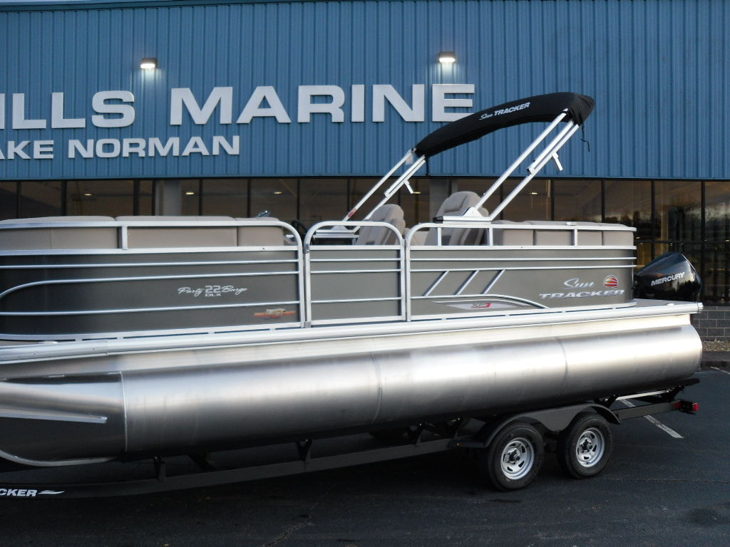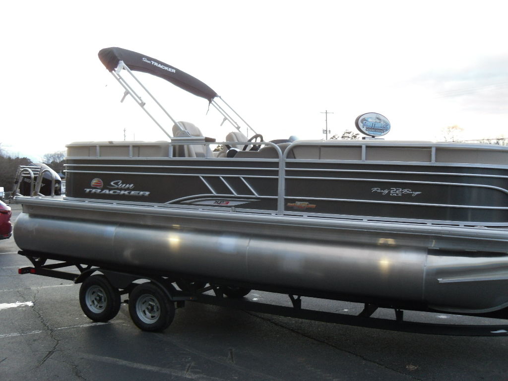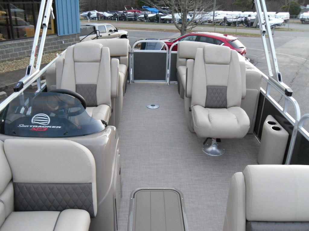 2023 Sun Tracker Party Barge® 22 XP3 Of course, as the name denotes, the PARTY BARGE® 22 XP3 is a recreational pontoon through and through. It offers everything from four lounge seats (with our STOW MORE™ seat storage system) to the New 10' color-keyed SureShade® powered Bimini top to swim platform to NEW AM/FM Bluetooth®-capable stereo system and more. All that, combined with things like three inward-swinging gates, padded woven flooring and cooler storage, ensures this pontoon boat is ready for a full day of fun. Then, it adds in the XP3 performance package, which includes three 26” pontoon logs with lifting strakes, underpinning and hydraulic steering to raise the horsepower rating to 200 and provide the performance needed for tubing and cruising! The XP3 package also includes in-deck storage, perfect for stowing watersports gear.
