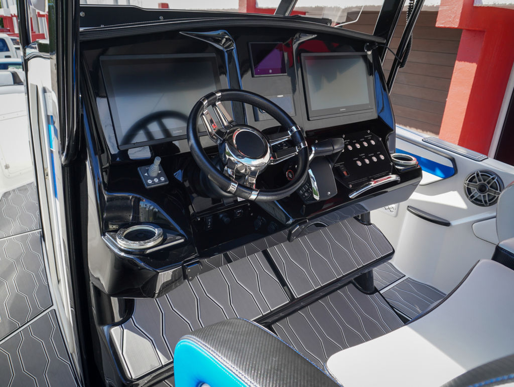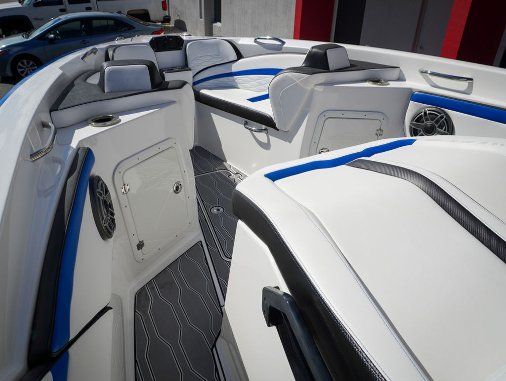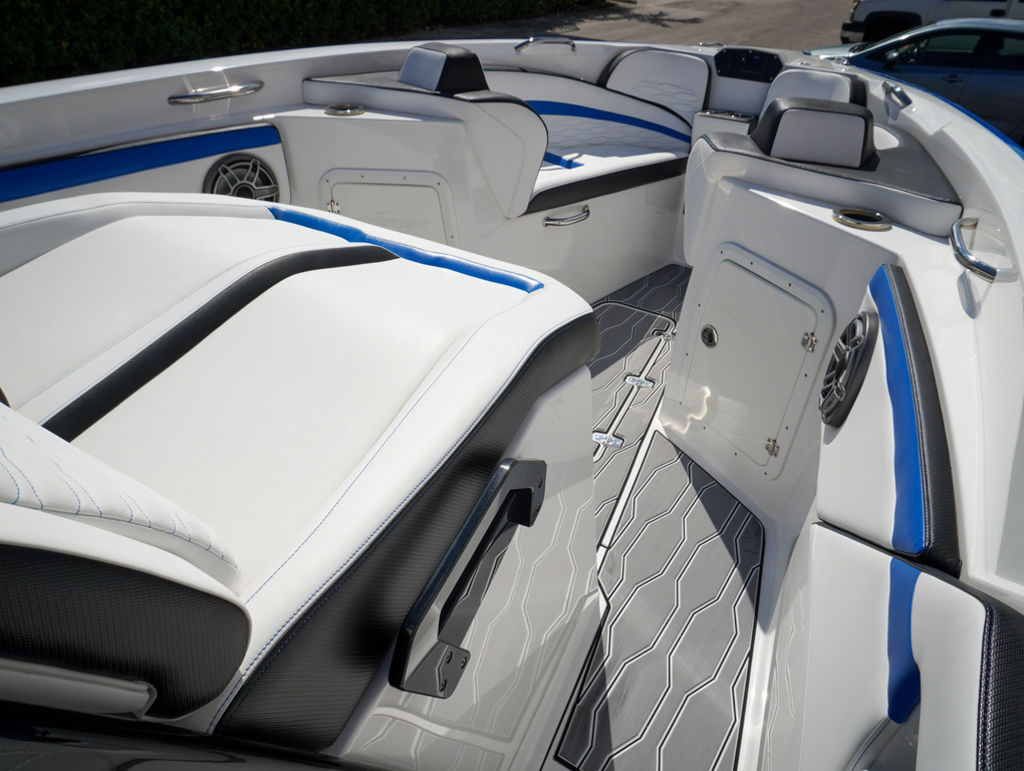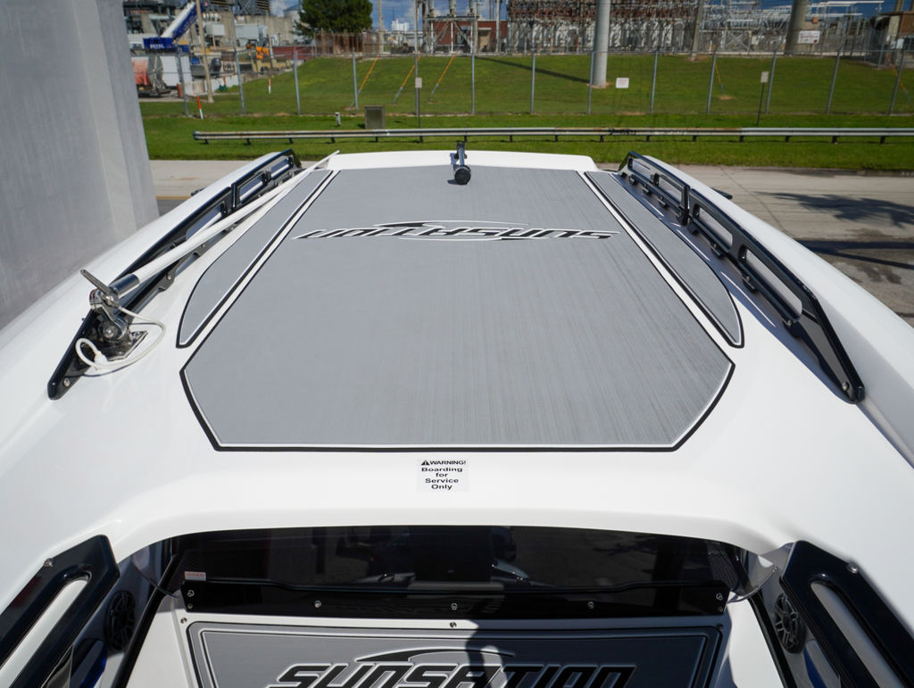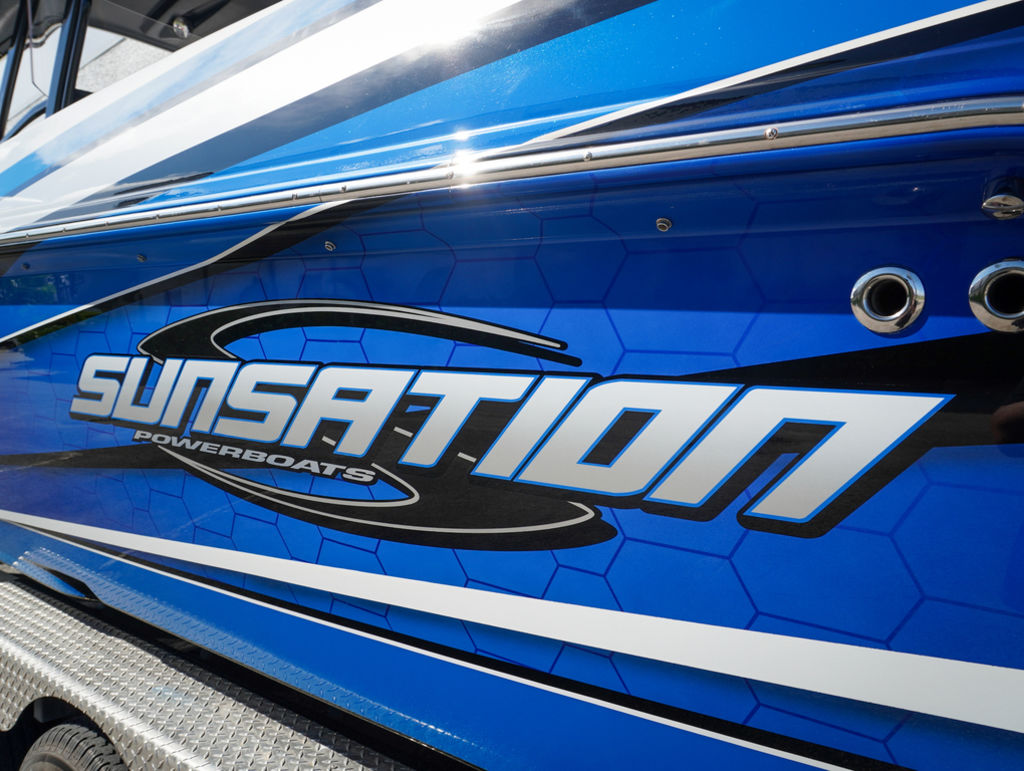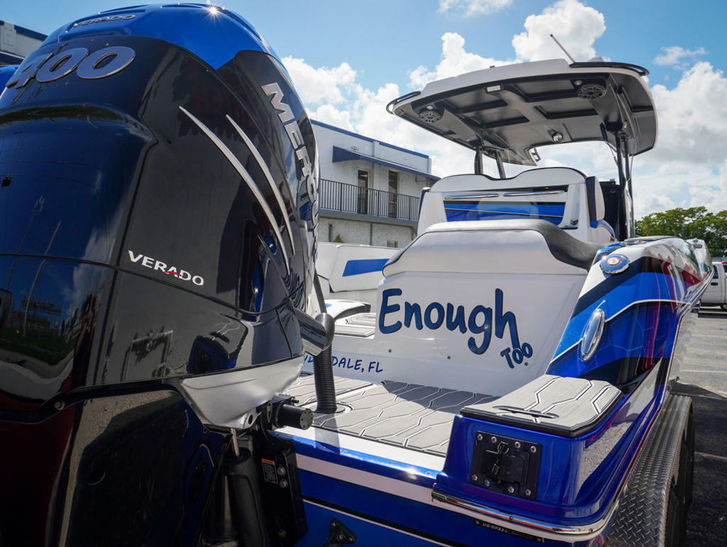 2023 Sunsation 32 CCX with twin Mercury L6 400M outboards with 2 year Mercury extended warranties and painted accents. Sold new by PBC. Optional Equipment: Beautiful detailed full paint by Mitcher T, Black Bottom gelcoat, Bow Thruster, Chill Plate in cooler seat, Electric head with holding tank and overboard discharge, VHF Radio, Full Cover with Hard Top Cover, Under Water Lights, Gunnel Rod Holders, Rear Sunshade, Transom Wash Down System, NO TRAILER. Always Dry Stored and serviced by Mercury Technician. Located in Ft.Lauderdale off site. Call for appointment to inspect.