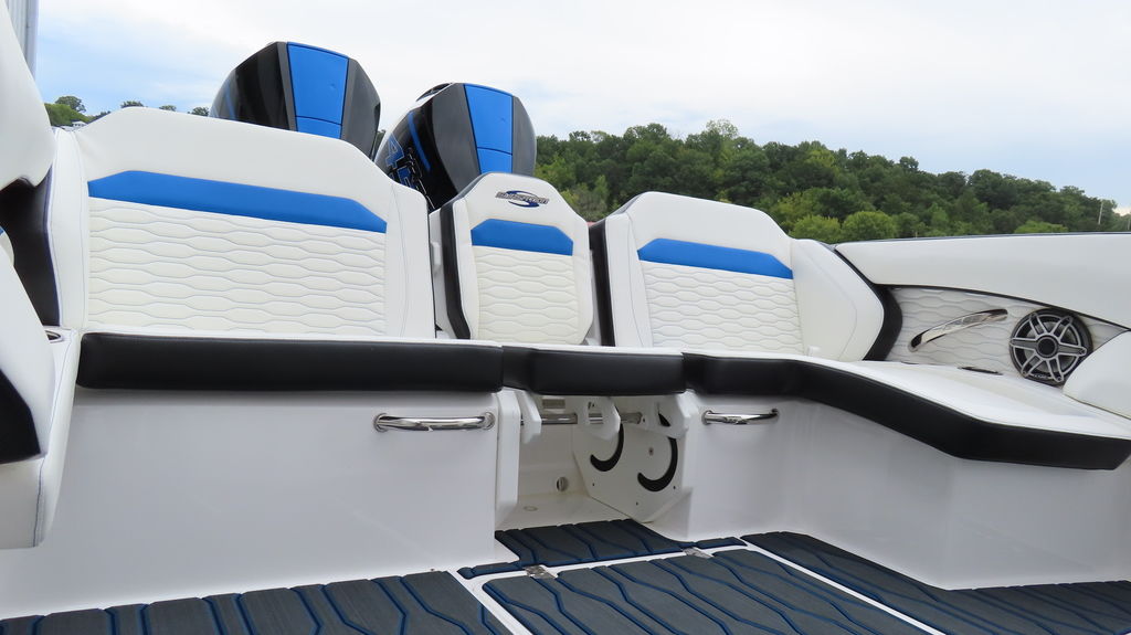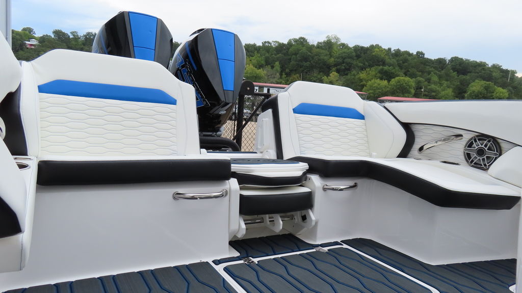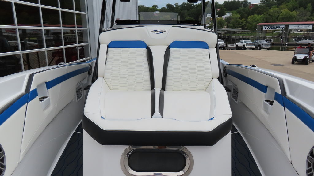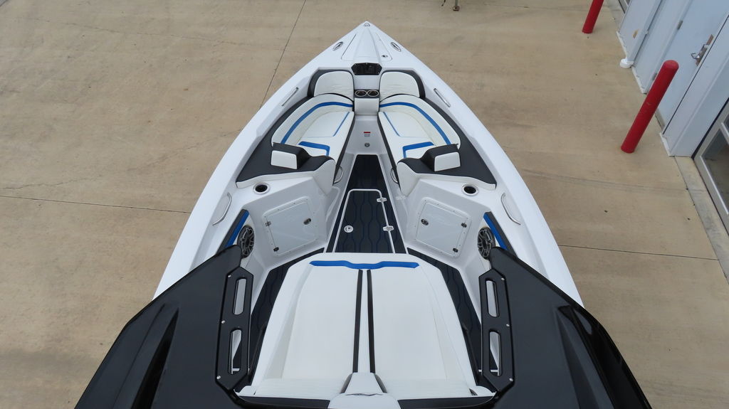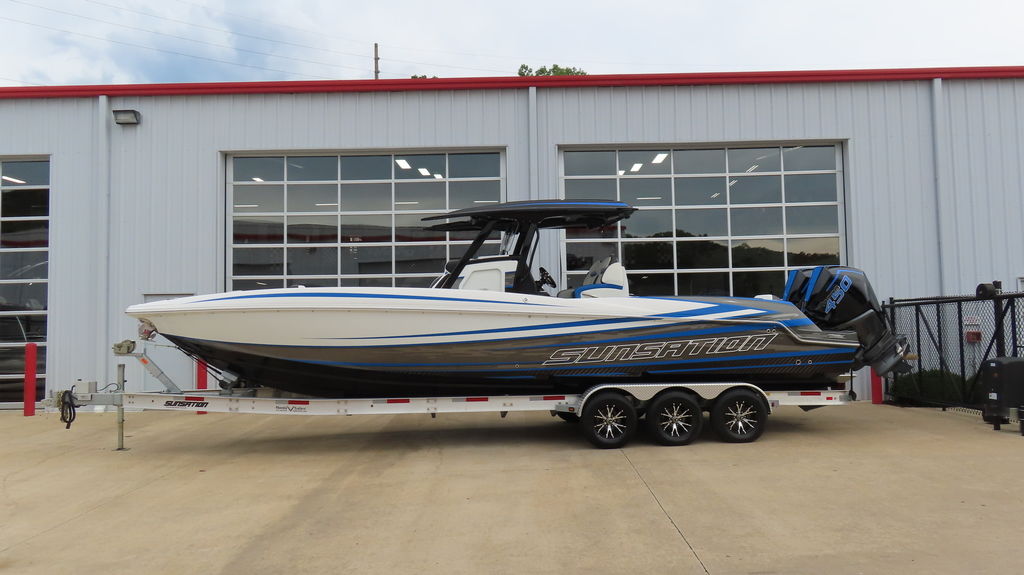 2023 Sunsation 32CCX powered by twin Mercury Racing 450Rs with only 27 hours and original warranties to 4/28/26 that can be extended for up to 5 additional years. LOADED!!, Dual Garmin 8616 GPS, Mercury Vessel View 503, Fusion/JL Audio stereo, LED trim tab indicators, Isotta steering wheel with tilt, Sea Deck flooring, underwater LED lights, Porcelain pump out head with Macerator, Cabin A/C with dash blowers, LED Light bar, windlass anchor, Chill plate in cooler, tow hook, factory two piece full covers including TTop cover. TRAILER INCLUDED!