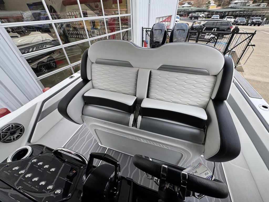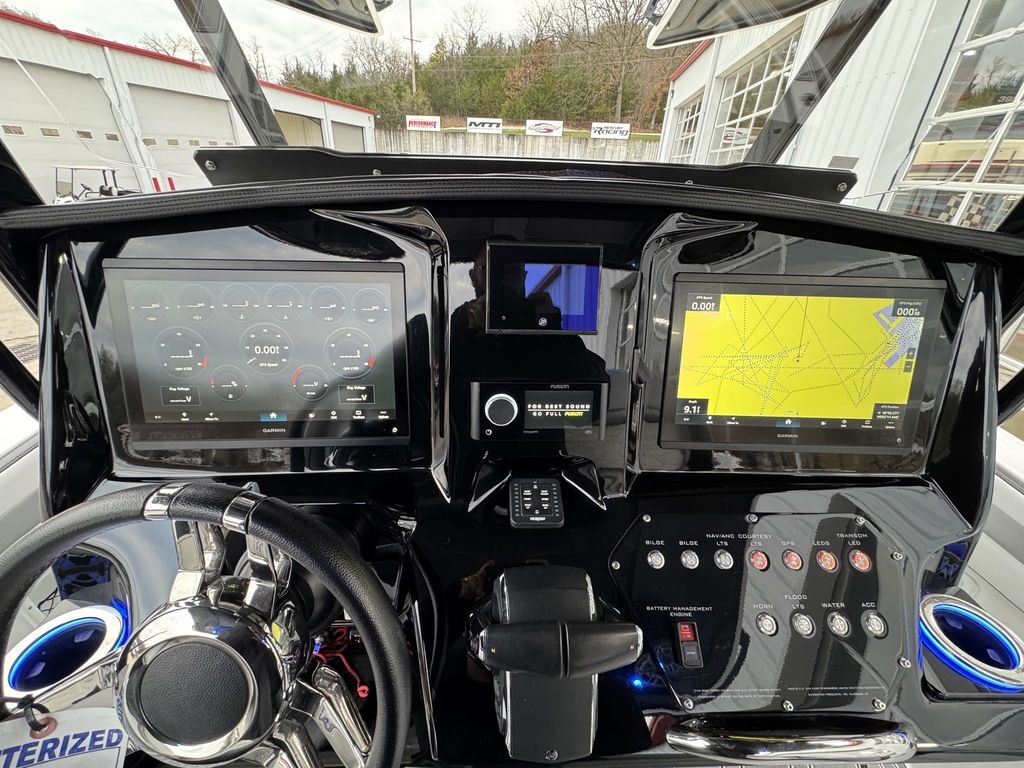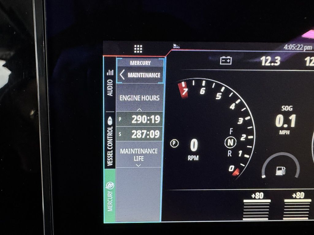 Loaded with options, stage 2 JL Audio sound system with bow remote, , additional battery with onboard charger and electric switch on dash, dual Garmin 8616s. Mercury Vessel View, depth sounder, LED RGB color changing cockpit lights, Seadek flooring, Isotta steering wheel with tilt, LED trim tab indicators, pump out porta potty, windlass anchor, custom paint, and much more!