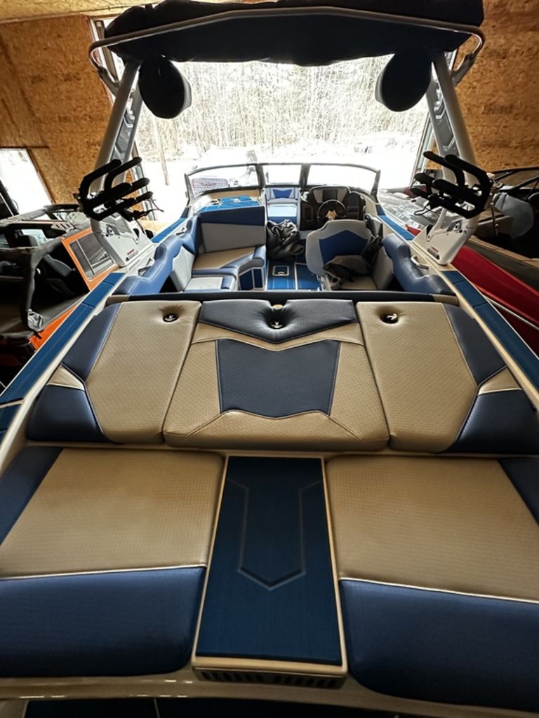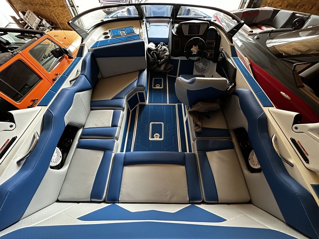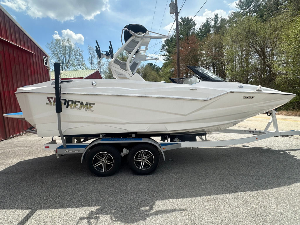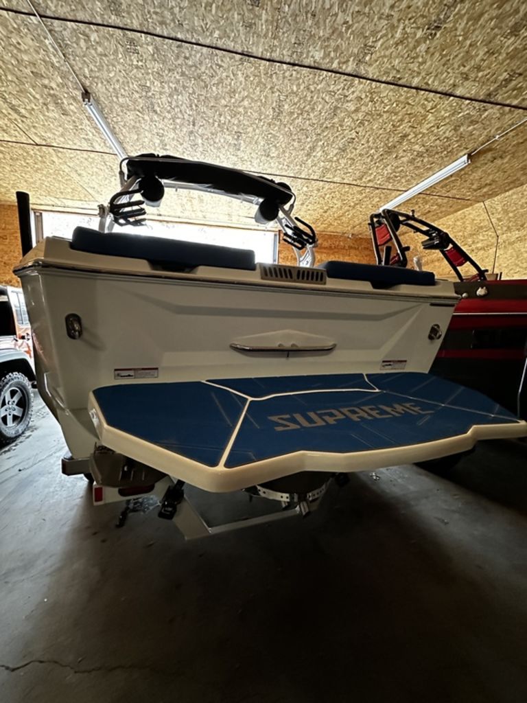 THIS WHITE HULL SUPREME ZS 212 REALLY STANDS OUT WITH THE BLUE ACCENTED INTERIOR. SOME FEATURES OF THIS BOAT INCLUDE 4,500 POUNDS OF BALLAST WEIGHT, F SERIES TOWER BY ROSWELL, REV 10 TOWER SPEAKERS WITH 12' SUBWOOFER, AND BOATMATE TRAILER!