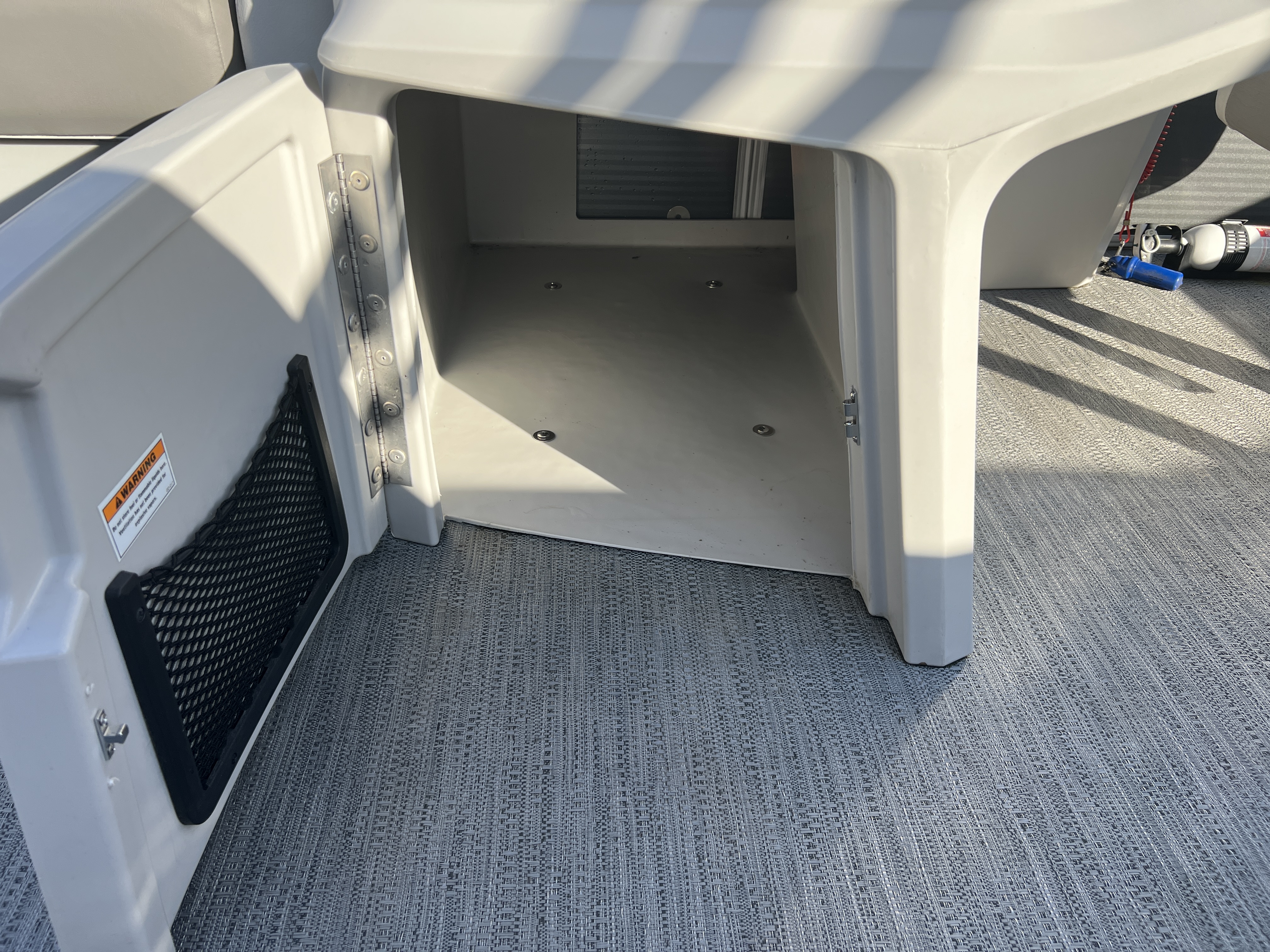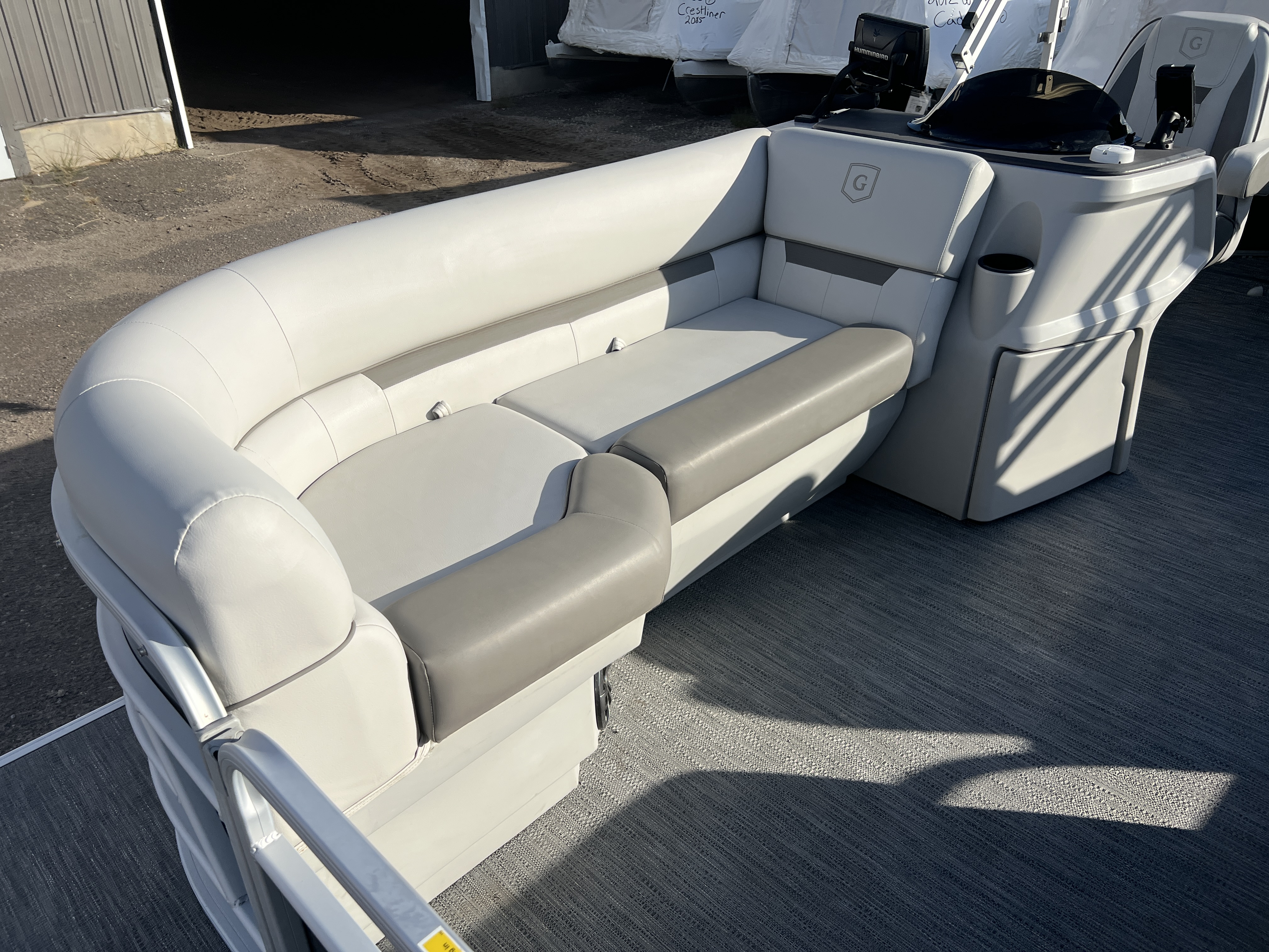 This cruise model pontoon features 2 couches up front along with an L-shaped