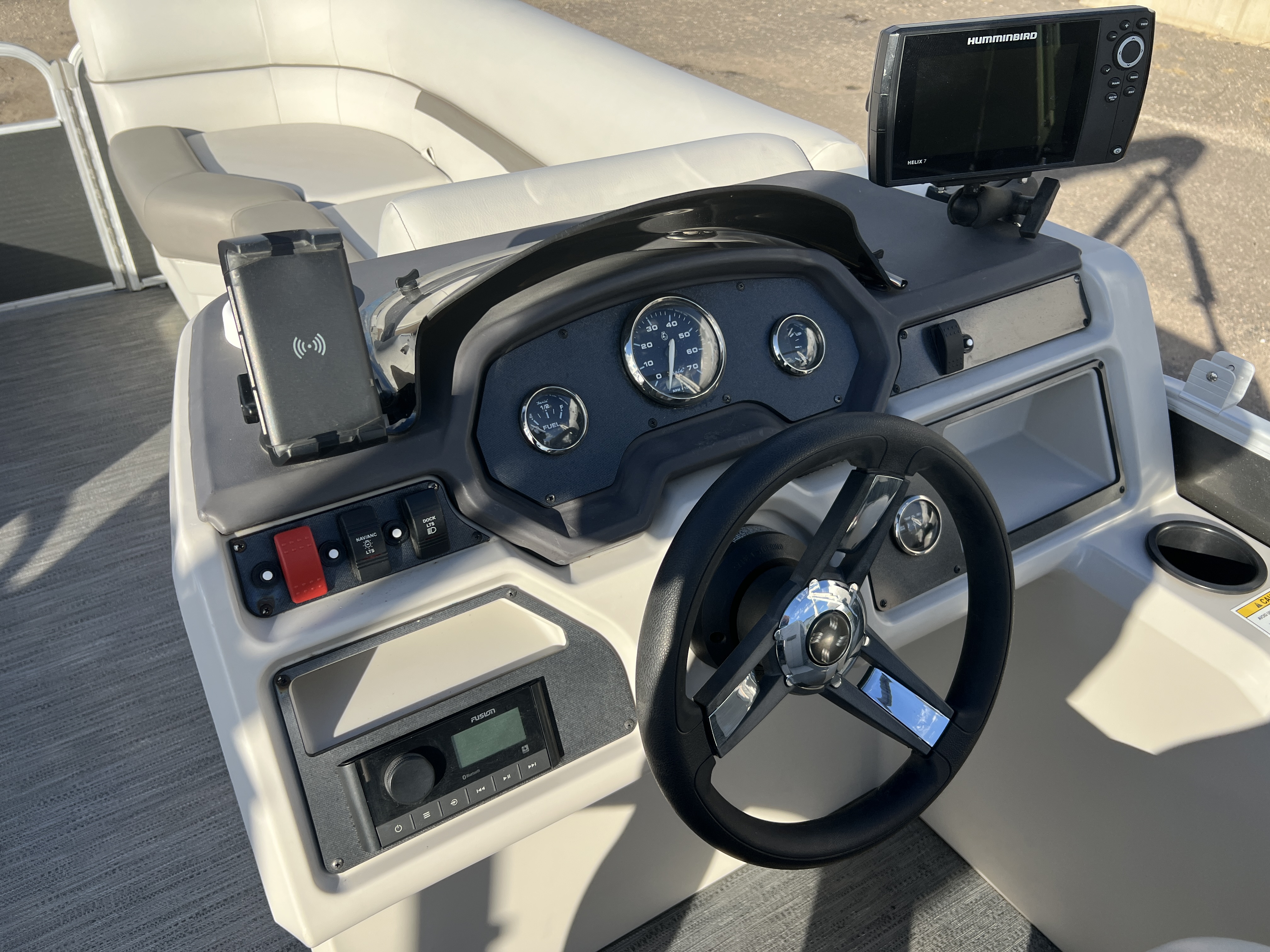 finder mounted on the helm as well as a wireless charger/phone holder. There is