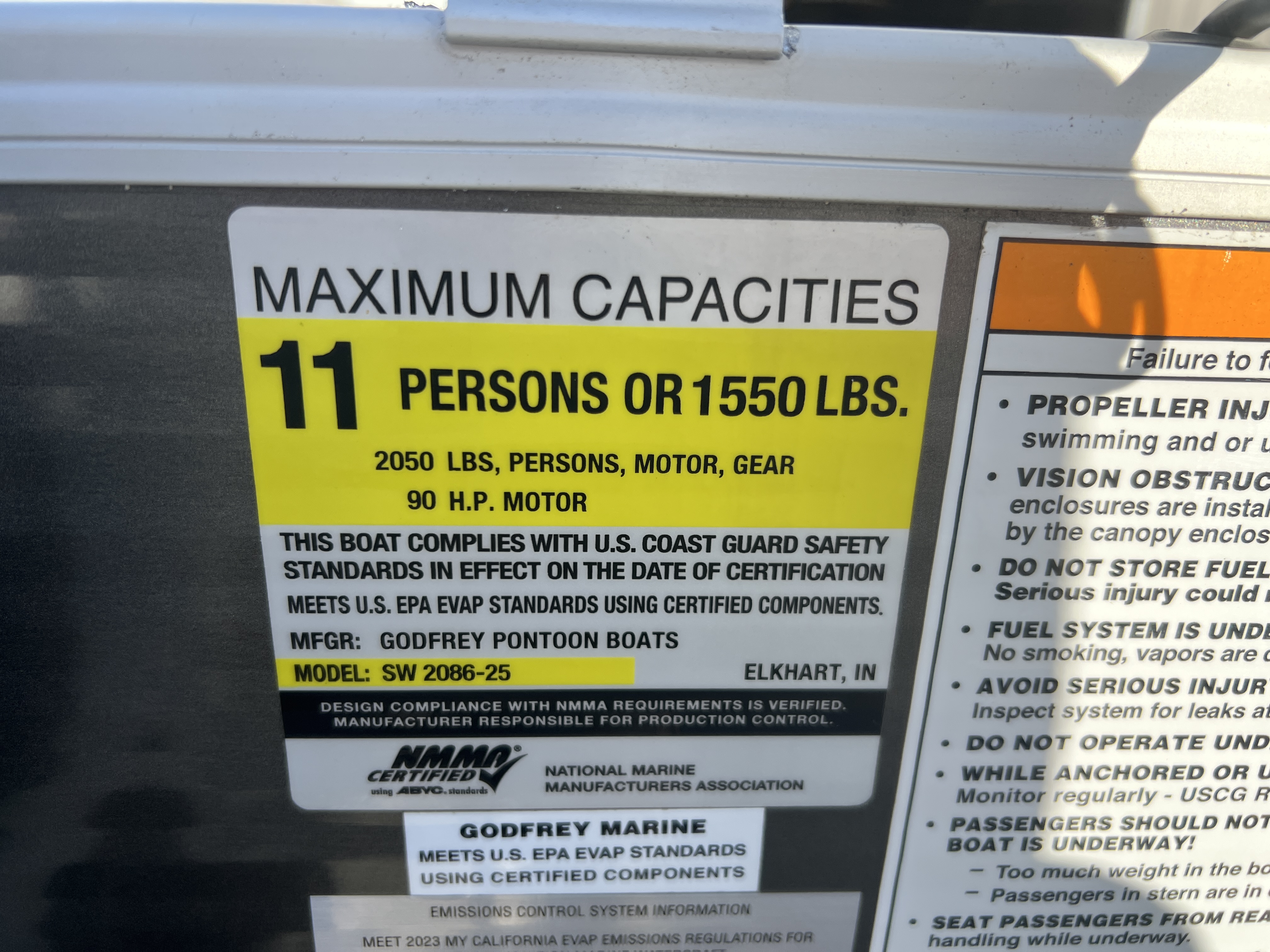 2023 Sweetwater 2086 Cruise Pontoon with 60HP Mercury Fourstroke EFI Outboard.