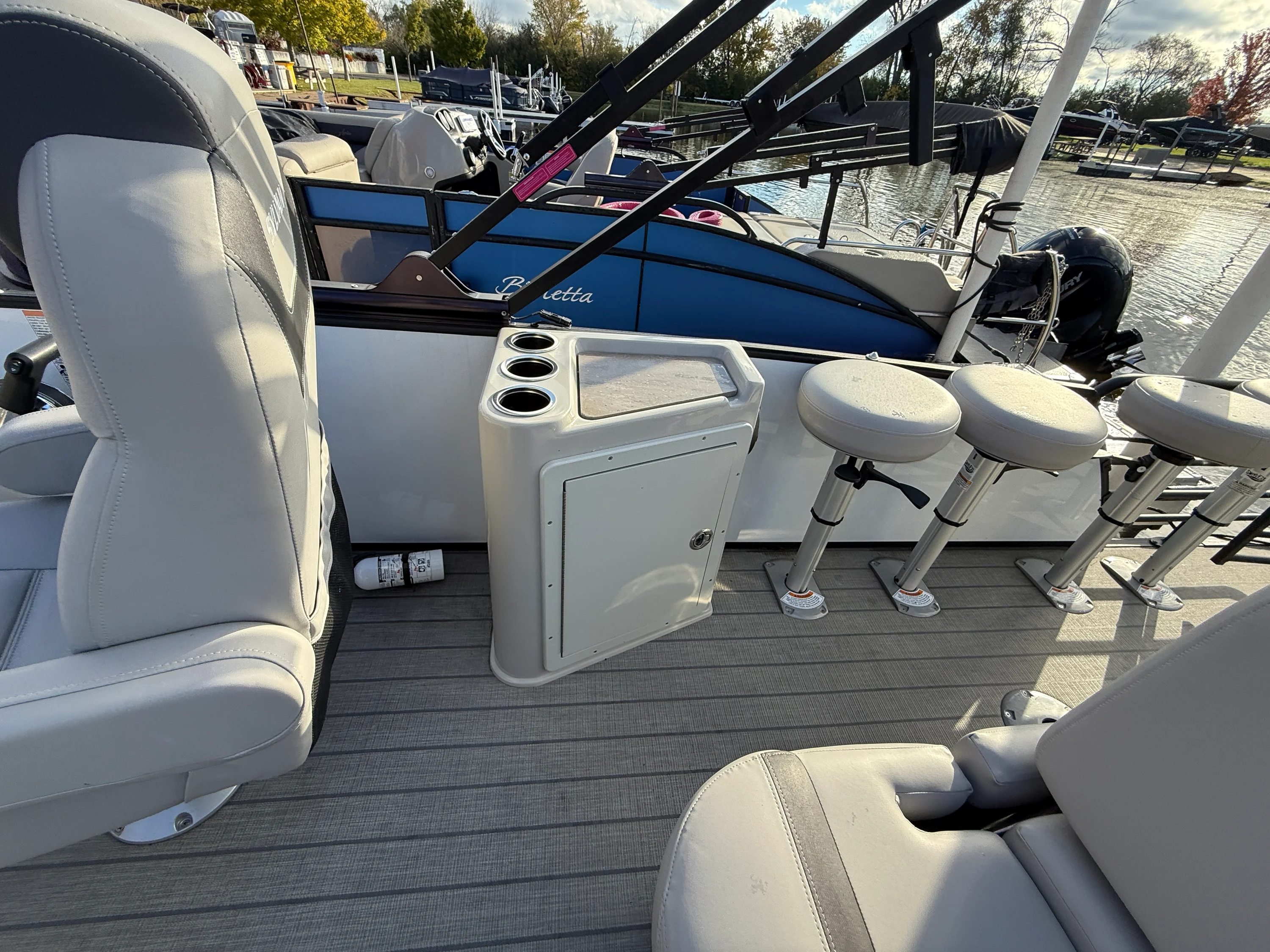 Check out this 2023 Sylvan L3 DLZBAR Tritoon powered by a Mercury 200HP with just under 70 hours! This one delivers the perfrect mix of luxury, performance, and comfort-complete with the Performance Package for a smooth, powerful ride and a power bimini for effortless shade at the touch of a button. Whether you're cruising, entertaining, or just relaxing on the water, this Sylvan is ready to impress. Financing available-stop in an see how easy it is to gert on the water today! The Mercury motor has an extended warranty until June 3, 2028 (buyer pays to transfer & you can also pay to transfer the Sylvan warranty)