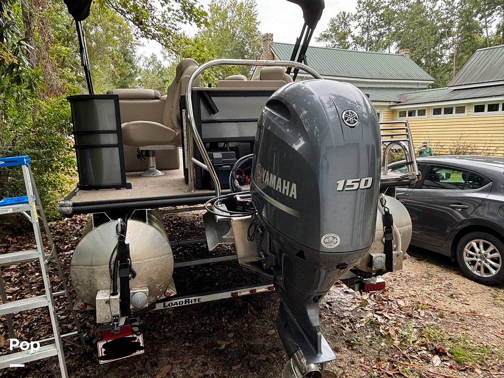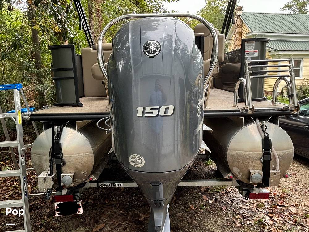 This pontoon boat is powered with the max horsepower engine, a Yamaha 150 HP four-stroke.