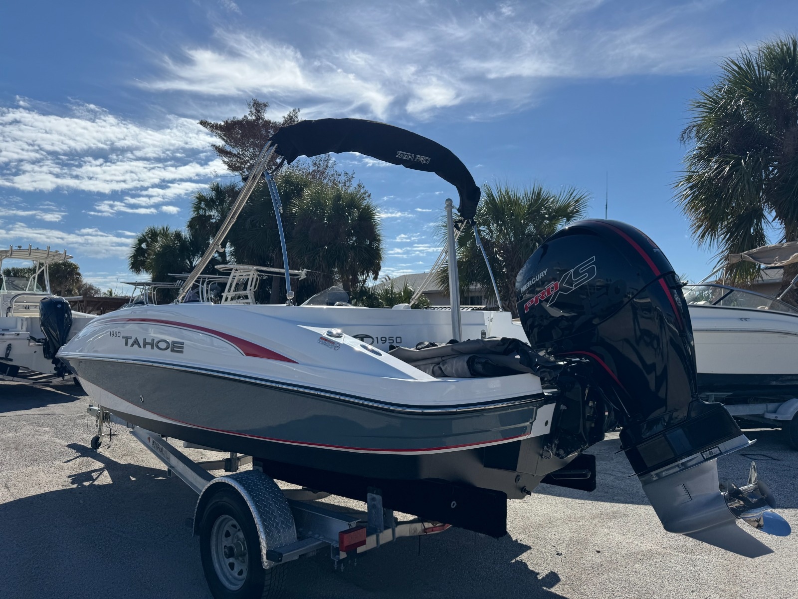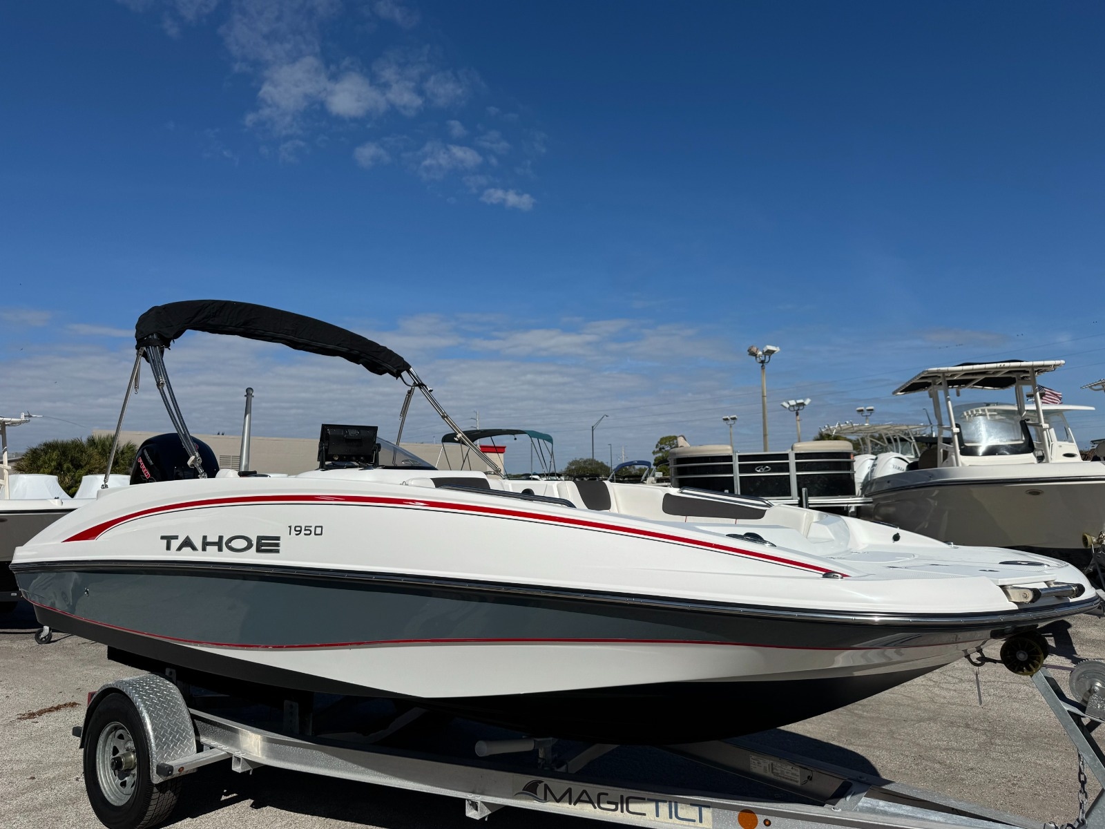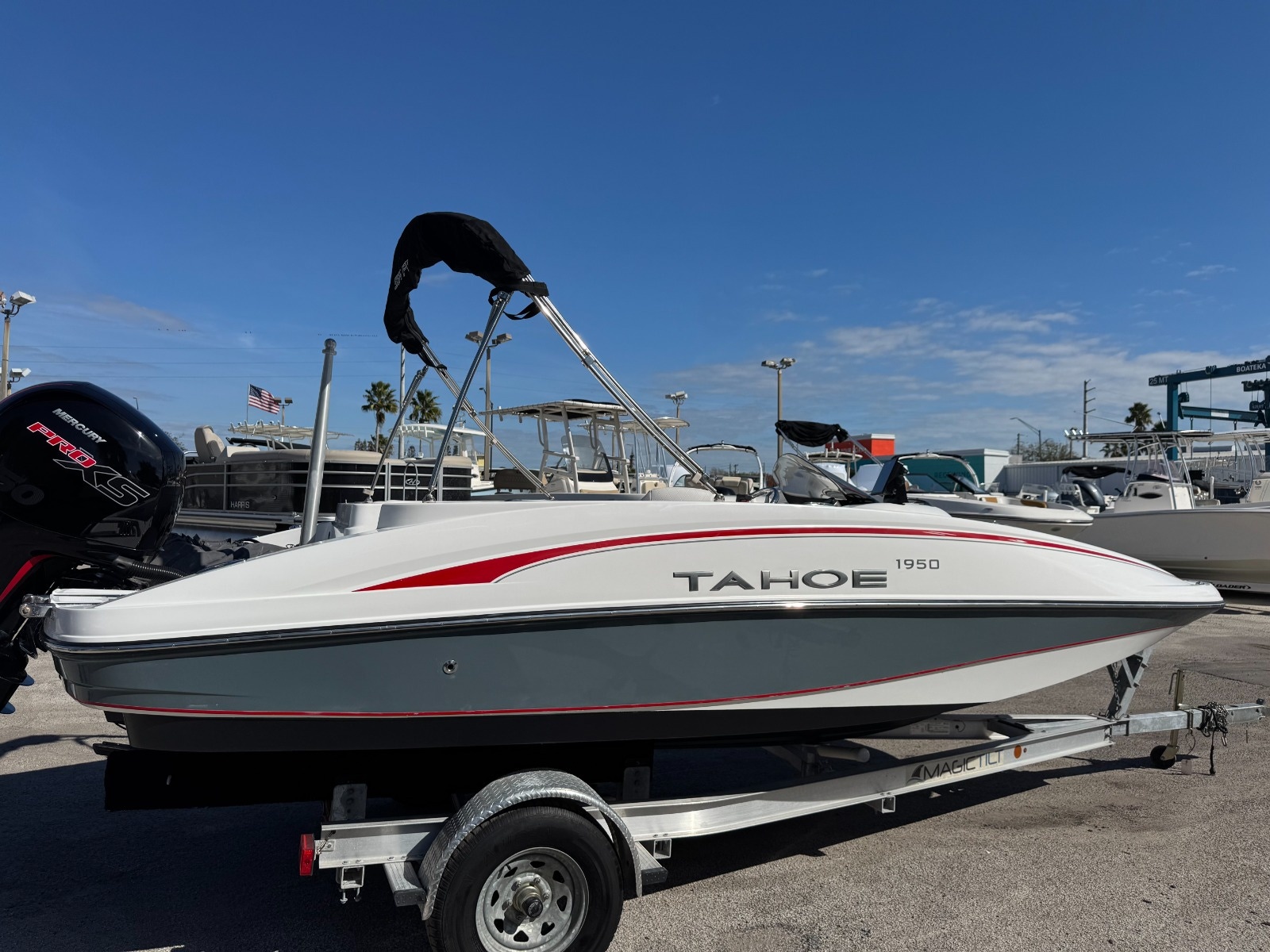 Prepare yourself for life on the water with the 2023 Tahoe 1950 deck boat. Whether you're here for the fishing, relaxing with friends, or exploring the coastline, this 1950 TAHOE is your ideal aquatic headquarters. Powered by an upgraded Mercury 150 Pro XS and with touch screen Simrad navigation, this boat is ready for all your water adventures!