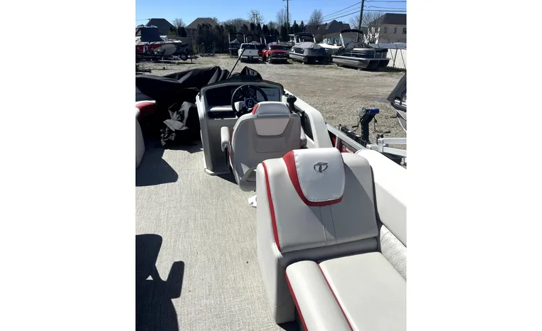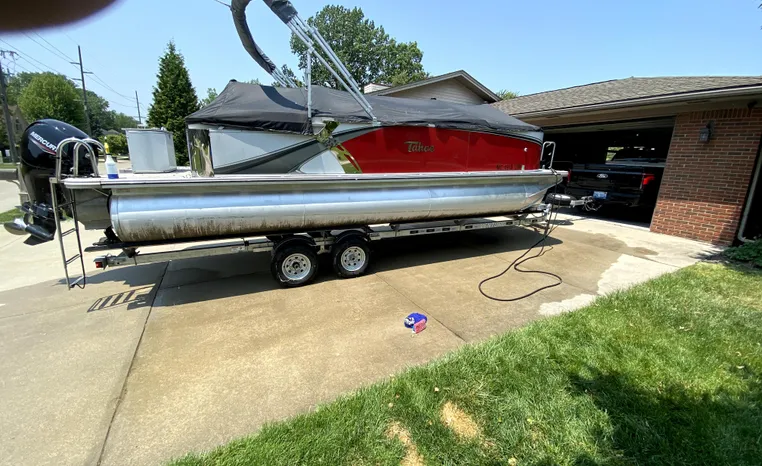 The 2023 Tahoe LTZ 2385 Quad Lounger with a 150 Mercury is a luxurious, high-performance tritoon featuring four spacious, reversible loungers, premium matrix vinyl, and a 10-year warranty. It excels in comfort, versatile seating, and smooth handling, with a 150HP engine providing ample power for cruising and water-sports.