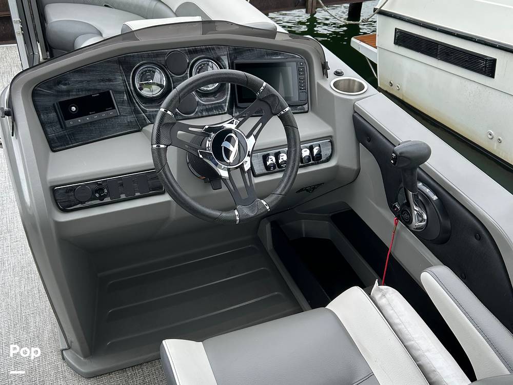 This model is equipped with a fishing package making it perfect for every family water activity! It has Garmin electronics, a full stereo system with speakers, tons of seating area, and a Bimini top!