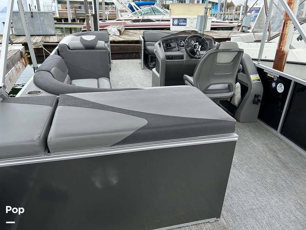 This beautiful 2023 Tahoe LTZ Rear Fish model 2385 Tritoon comes with a 2023 Mercury 150hp 4-stroke outboard engine with low hours!