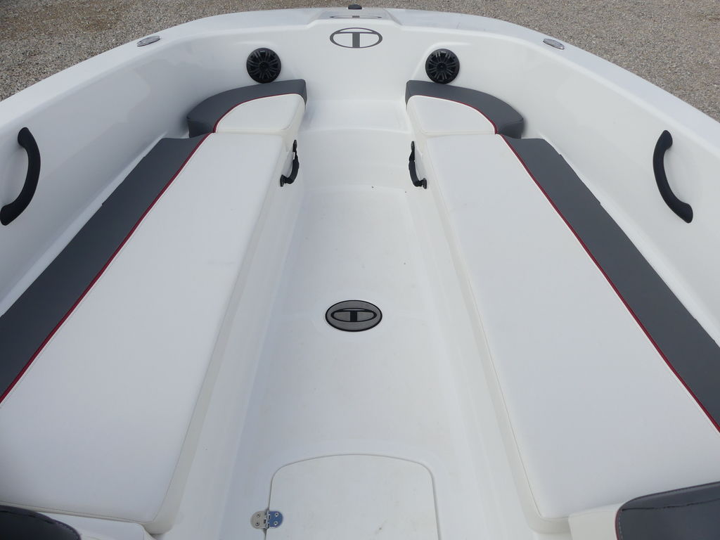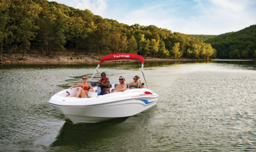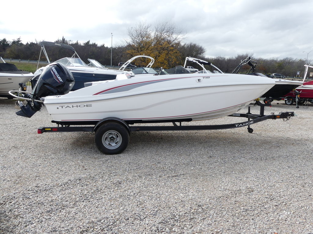 The TAHOE® T18 is a midsize runabout that boasts exciting performance, standout-style, and all-day comfort. From the handcrafted composite construction to the custom seating, the T18 is designed to be a family-fun machine that’s ready for cruising sandbar picnic or watersports action. A standard Kicker® stereo and four speakers crank up the tunes while a new 7” touchscreen multifunction display keeps tabs on your outboard, speed and the water depth. Premium accents, ample amenities and guaranteed fun will have you looking for reasons to get to the lake.