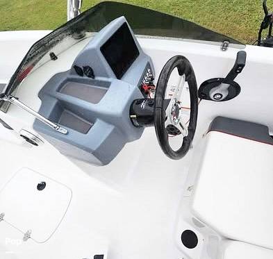This T18 is powered by a Mercury 115 HP engine, which is the maximum HP for the hull. It reaches speeds between 40 and 50 MPH, depending on the load. Put the throttle down and hang on because this boat will get you there in a hurry!
