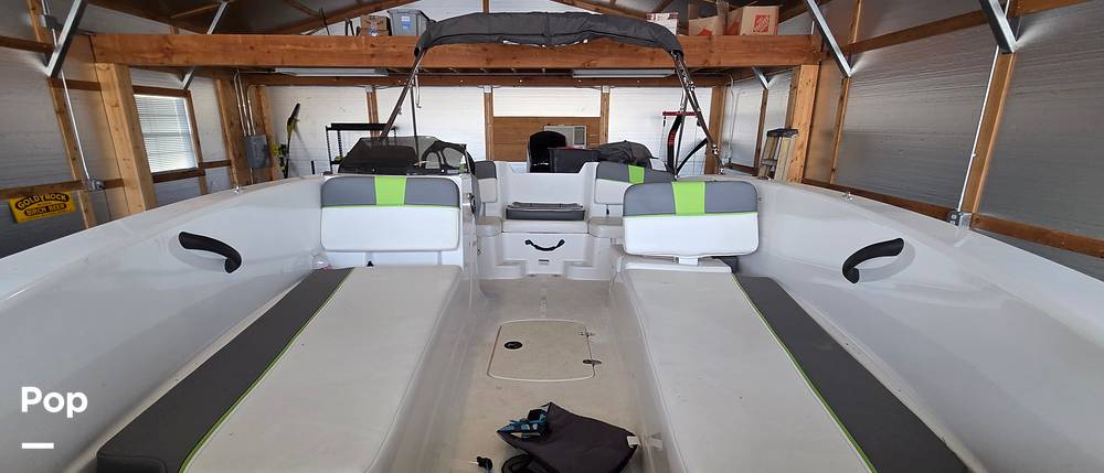This is a comfortable boat for cruising, water sports, or hanging out at the sandbar. There is a Kicker stereo to enjoy your music. The bimini top provides ample shade.