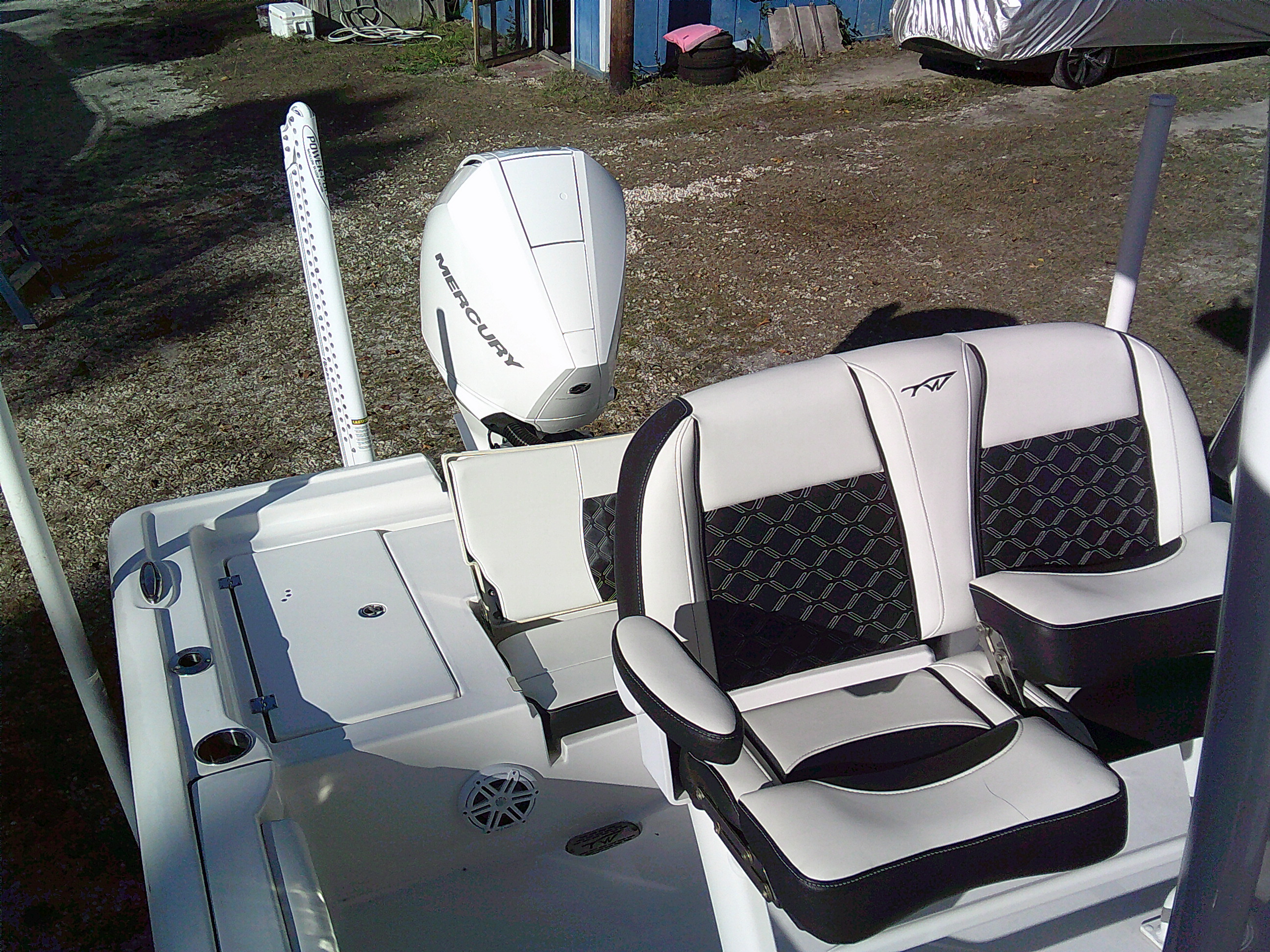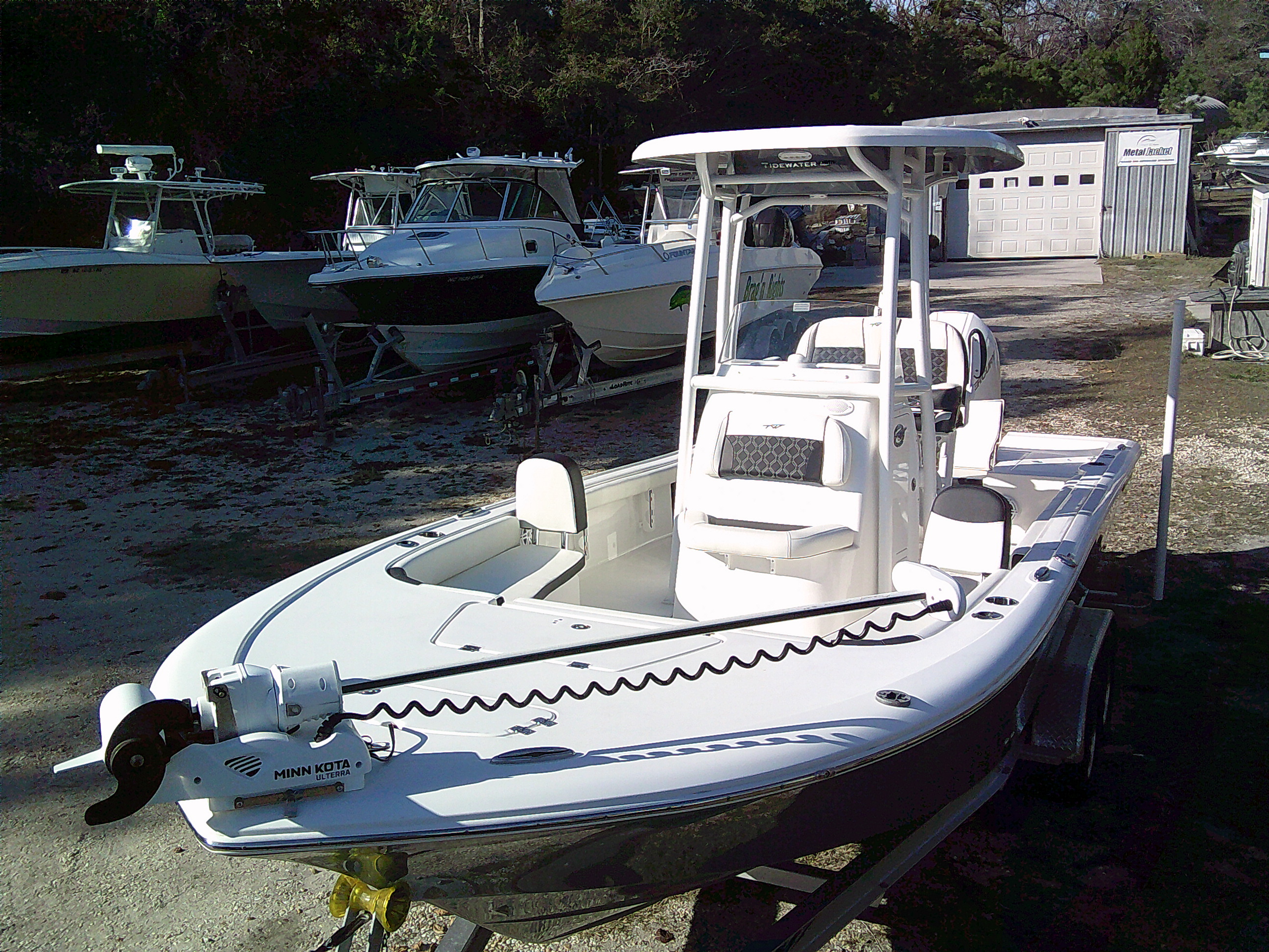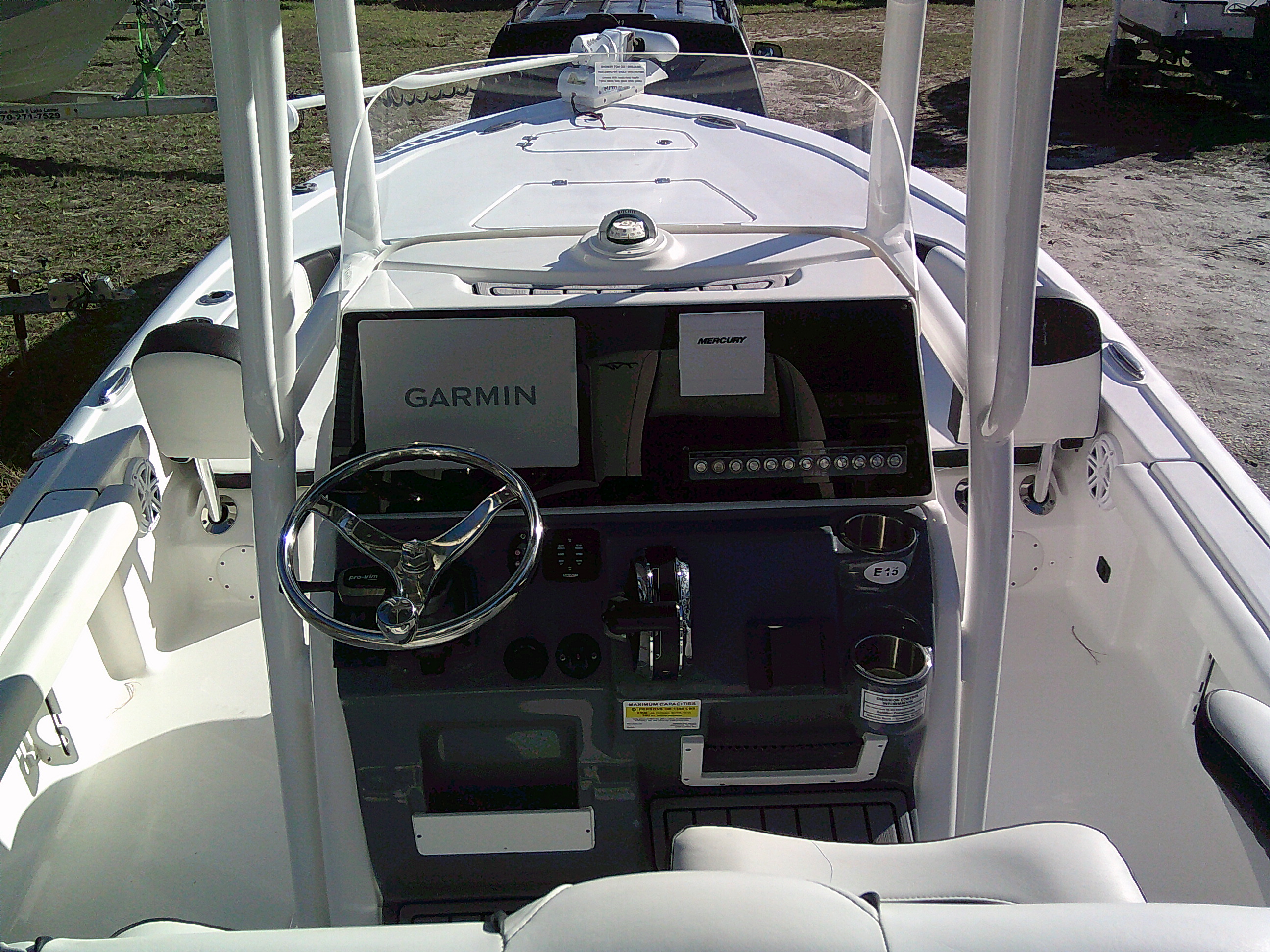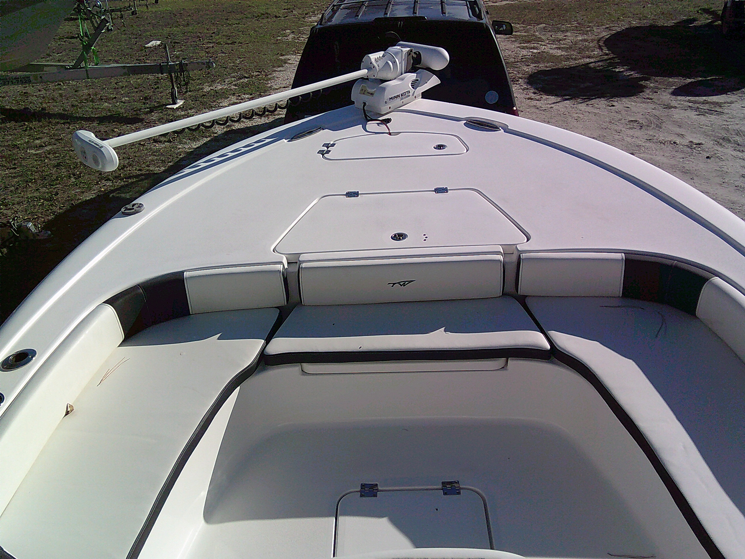 Vessel Info:Large Forward Platform, Perfect for Throwing a Cast Net, Fishing or Sunning w/Minn Kota Ulterra 36 Volt, 112 Lbs. Thrust, Self Deploying Trolling Motor, Anchor Locker, Pop-Up Cleats, Storage Box / Cushioned Forward Seating w/Back Rest, 2 Removable Back Rest, 3 Storage Boxes-2 w/Rod Storage / 2 Cup Holders, 4 Rod Holders / Foward In Deck Cast Net Storage Box / Forward of Console Cushioned Seat w/Back Rest / Power Coated Hard Top w/Electrical Box, Grab Rails, Forward and Aft LED Spreader Lights, Hard Top Lighting, 2 JL Audio Speakers, 4 Rod Holders / Large Console w/Wind Screen, Grab Rails, Gauges, Controls, Switch Panel, Stainless Steel Tilt Helm w/Hydraulic Steering and Knob, Compass, JL Audio Woofer Speaker, Foot Rest, Large Console Cabin Large enough of a Porty Potty / Power Coated Leaning Post w/Folding Bolsters, Arm Rest, Foot Rest, 4 Rod Holders / Coaming Cushions / Under Gunnel Rod Storage / Self Bailing Deck / Large Aft Platform w/ 2 Large Live Wells, Cushioned Folding Bench Seat w/Back Rest / EZ Access to Bilge and Pumps / 2 Start Batteries w/Switch / 2 JL Audio Speakers / Raw Water Wash Down / 2 Cup Holders / 2 Rod Holders / Swim Platform w/Folding Ladder / Trim Tabs / Blade Anchor Pole / Atlas Jack Plate