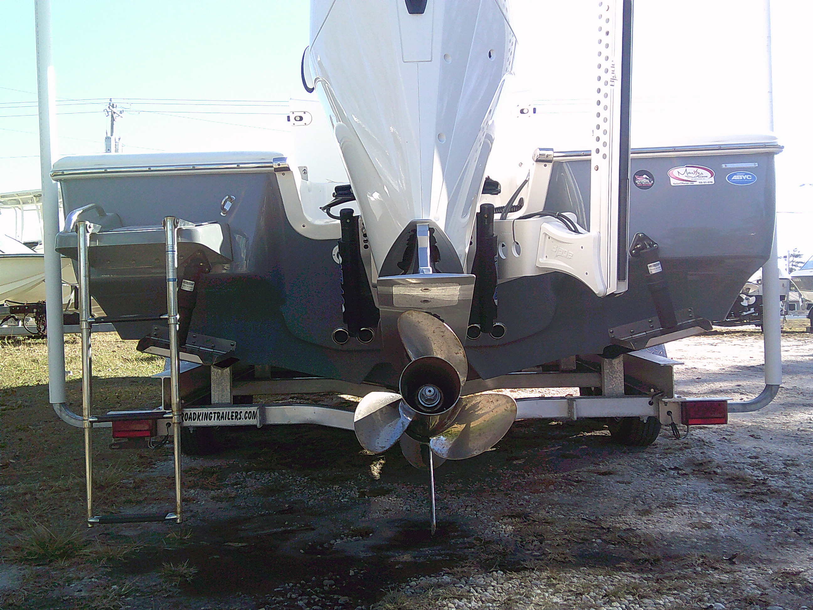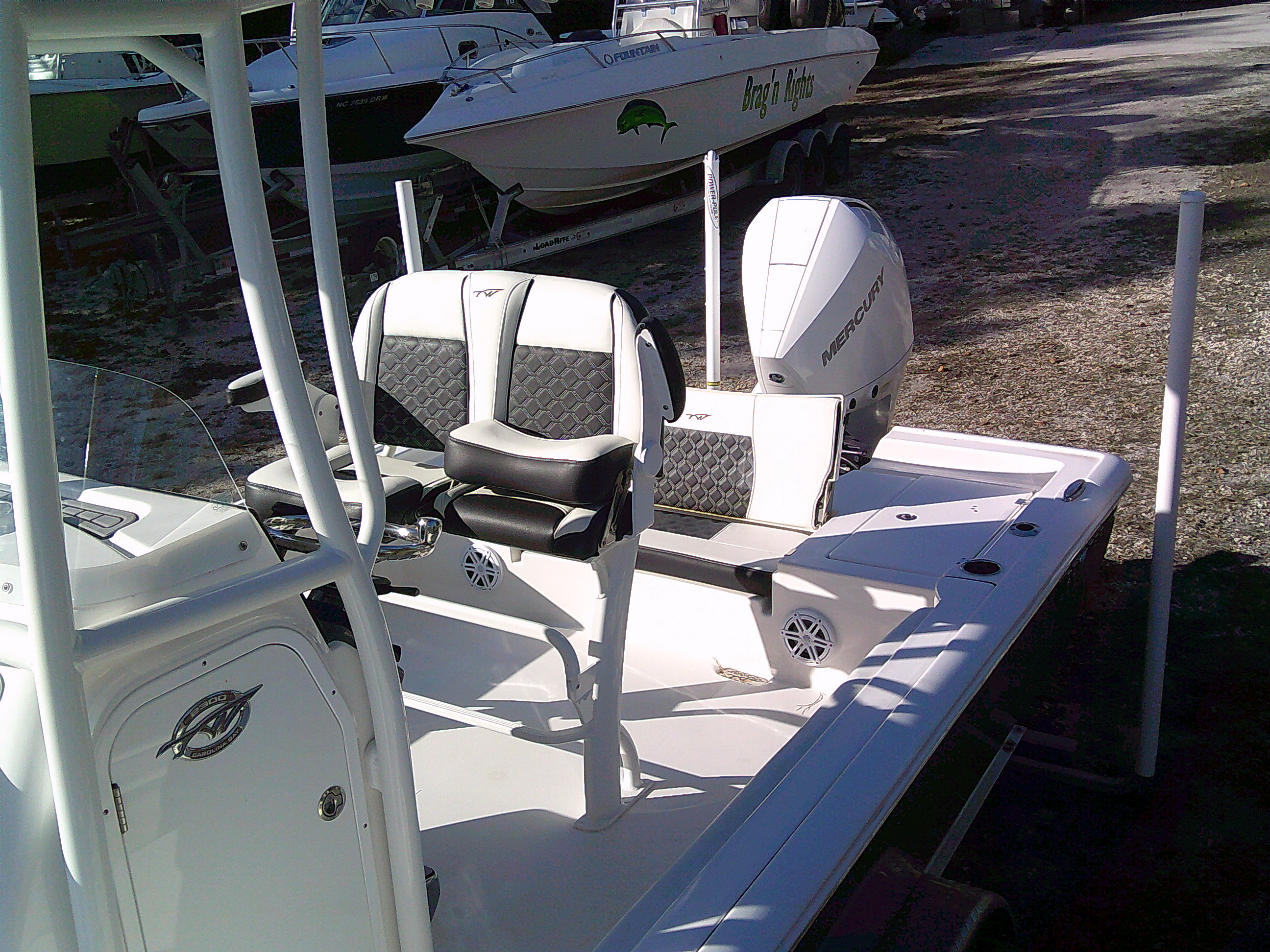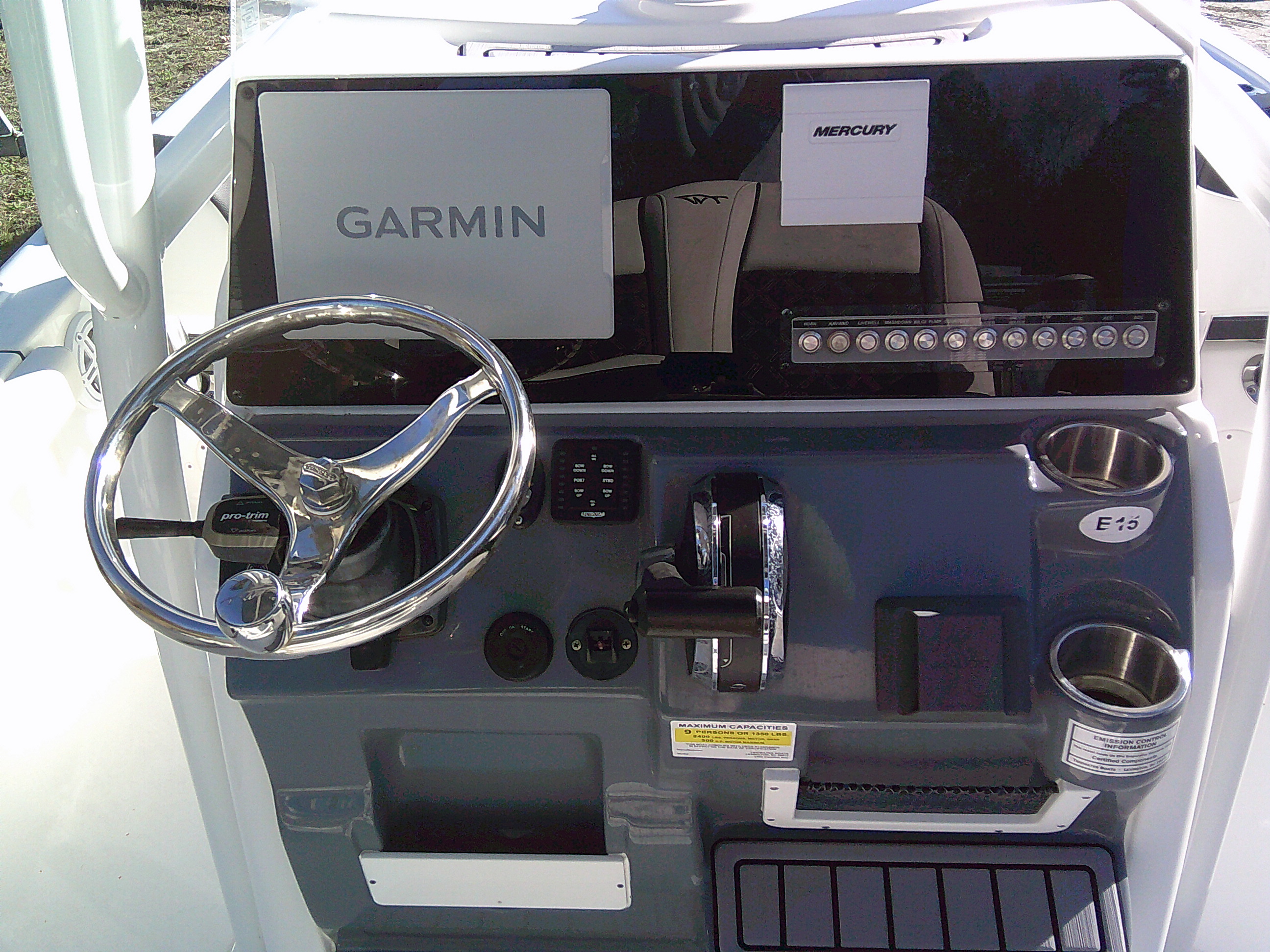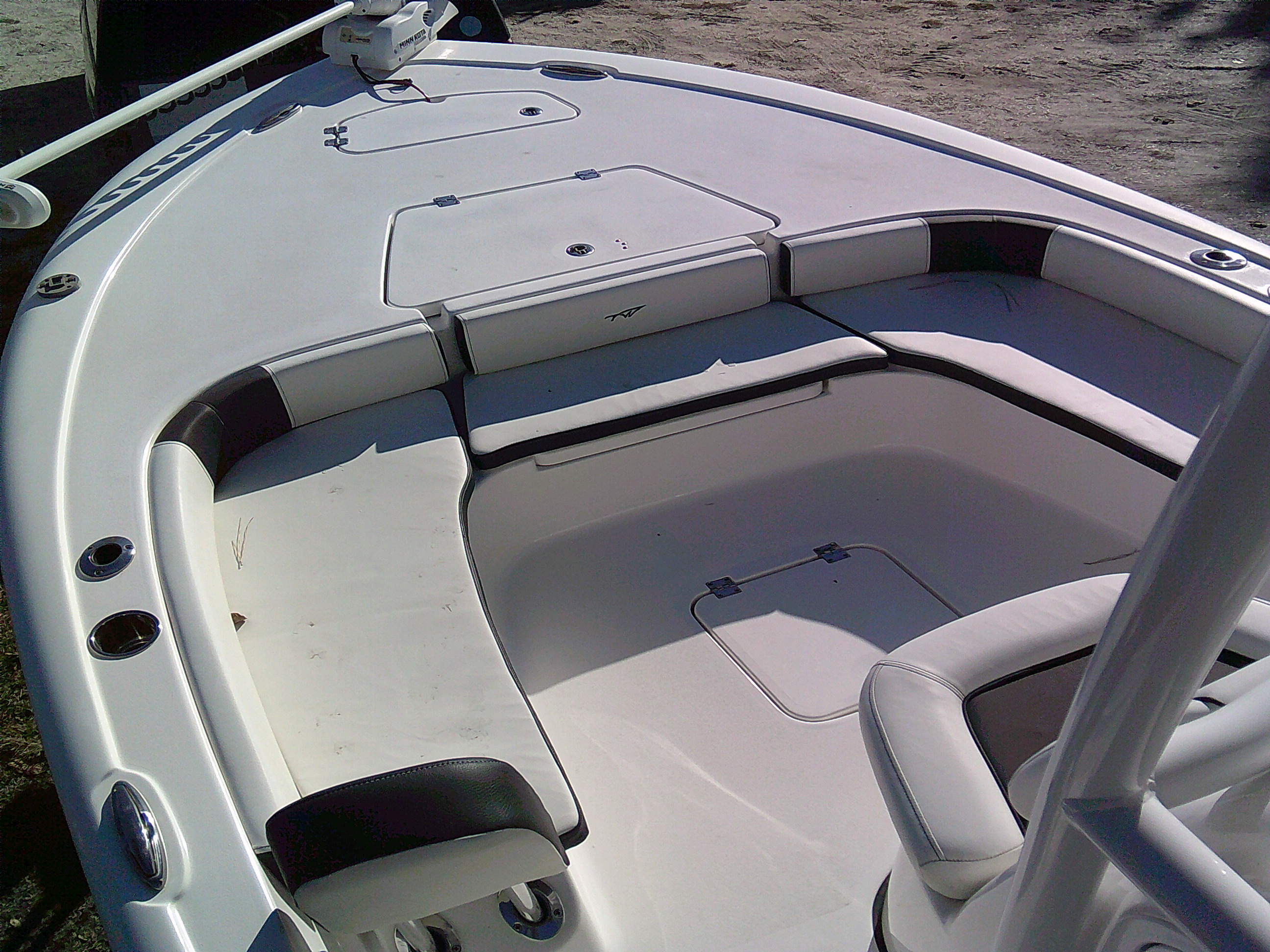 Vessel Info:Large Forward Platform, Perfect for Throwing a Cast Net, Fishing or Sunning w/Minn Kota Ulterra 36 Volt, 112 Lbs. Thrust, Self Deploying Trolling Motor, Anchor Locker, Pop-Up Cleats, Storage Box / Cushioned Forward Seating w/Back Rest, 2 Removable Back Rest, 3 Storage Boxes-2 w/Rod Storage / 2 Cup Holders, 4 Rod Holders / Foward In Deck Cast Net Storage Box / Forward of Console Cushioned Seat w/Back Rest / Power Coated Hard Top w/Electrical Box, Grab Rails, Forward and Aft LED Spreader Lights, Hard Top Lighting, 2 JL Audio Speakers, 4 Rod Holders / Large Console w/Wind Screen, Grab Rails, Gauges, Controls, Switch Panel, Stainless Steel Tilt Helm w/Hydraulic Steering and Knob, Compass, JL Audio Woofer Speaker, Foot Rest, Large Console Cabin Large enough of a Porty Potty / Power Coated Leaning Post w/Folding Bolsters, Arm Rest, Foot Rest, 4 Rod Holders / Coaming Cushions / Under Gunnel Rod Storage / Self Bailing Deck / Large Aft Platform w/ 2 Large Live Wells, Cushioned Folding Bench Seat w/Back Rest / EZ Access to Bilge and Pumps / 2 Start Batteries w/Switch / 2 JL Audio Speakers / Raw Water Wash Down / 2 Cup Holders / 2 Rod Holders / Swim Platform w/Folding Ladder / Trim Tabs / Blade Anchor Pole / Atlas Jack Plate