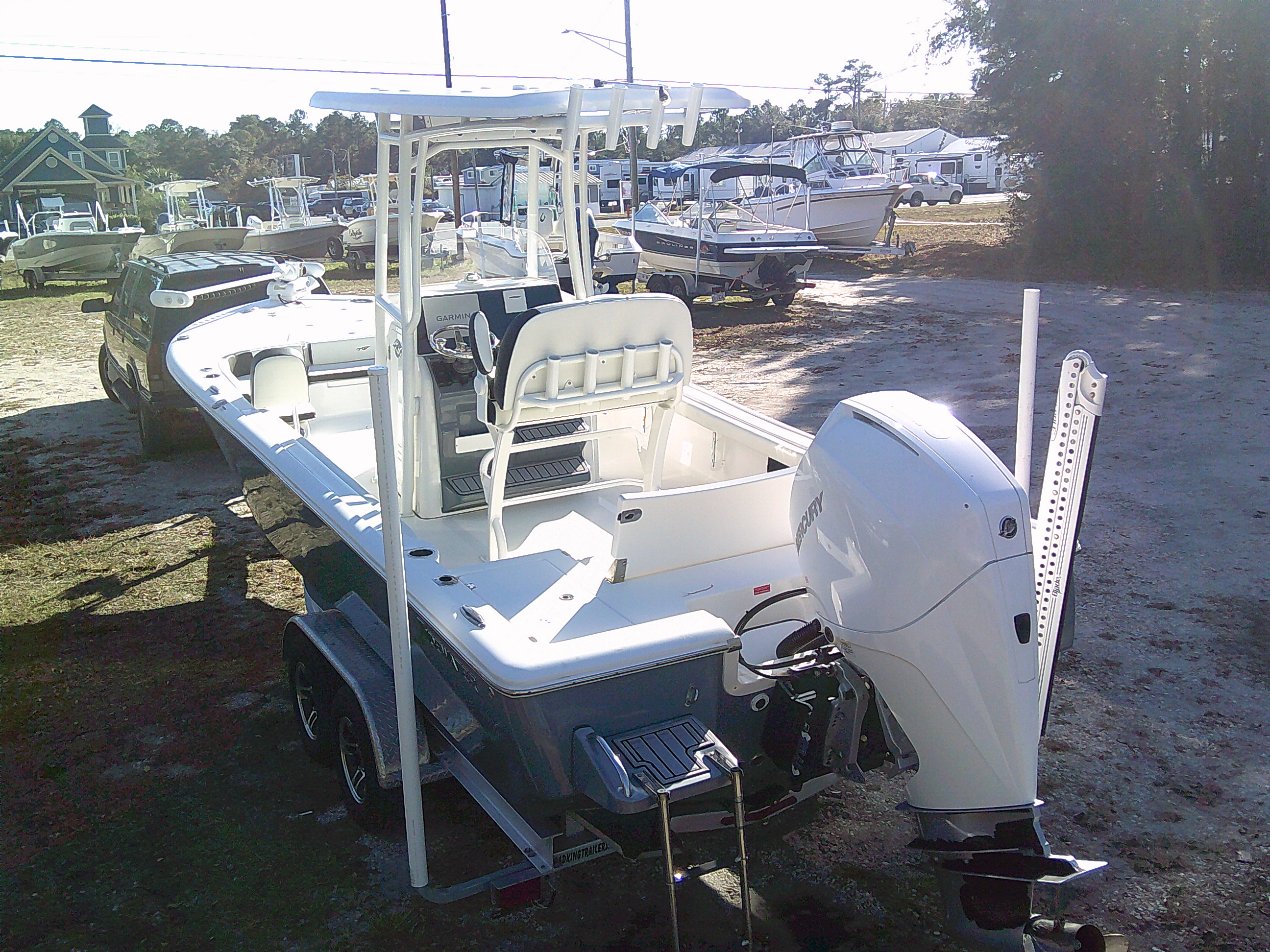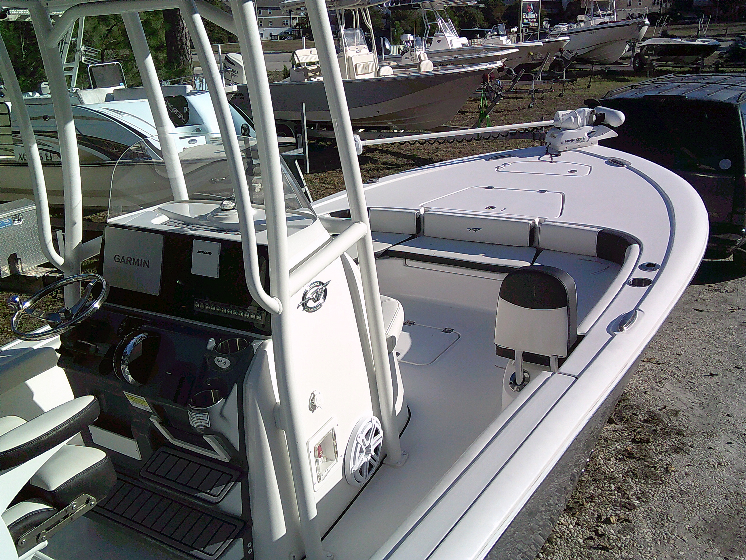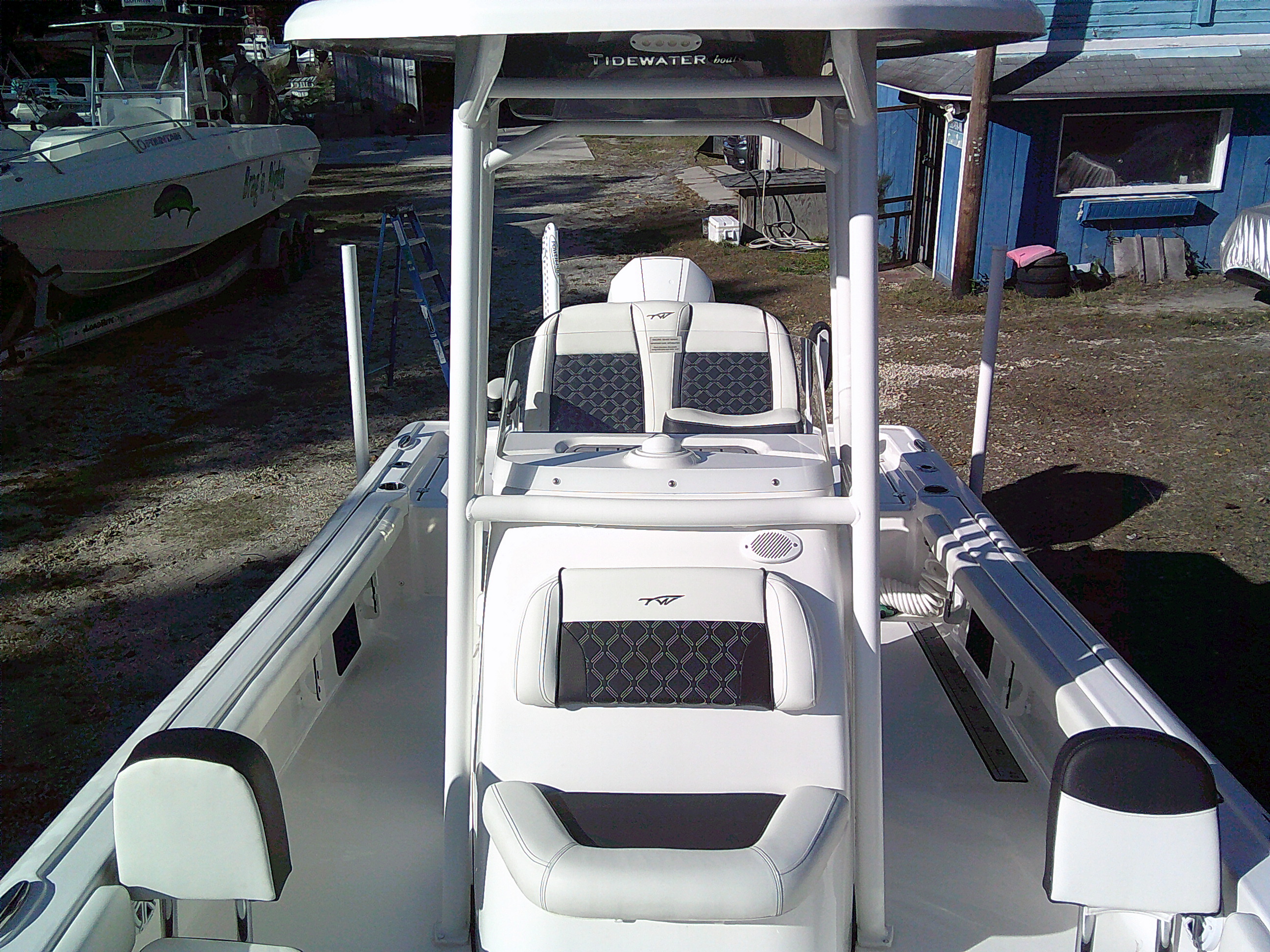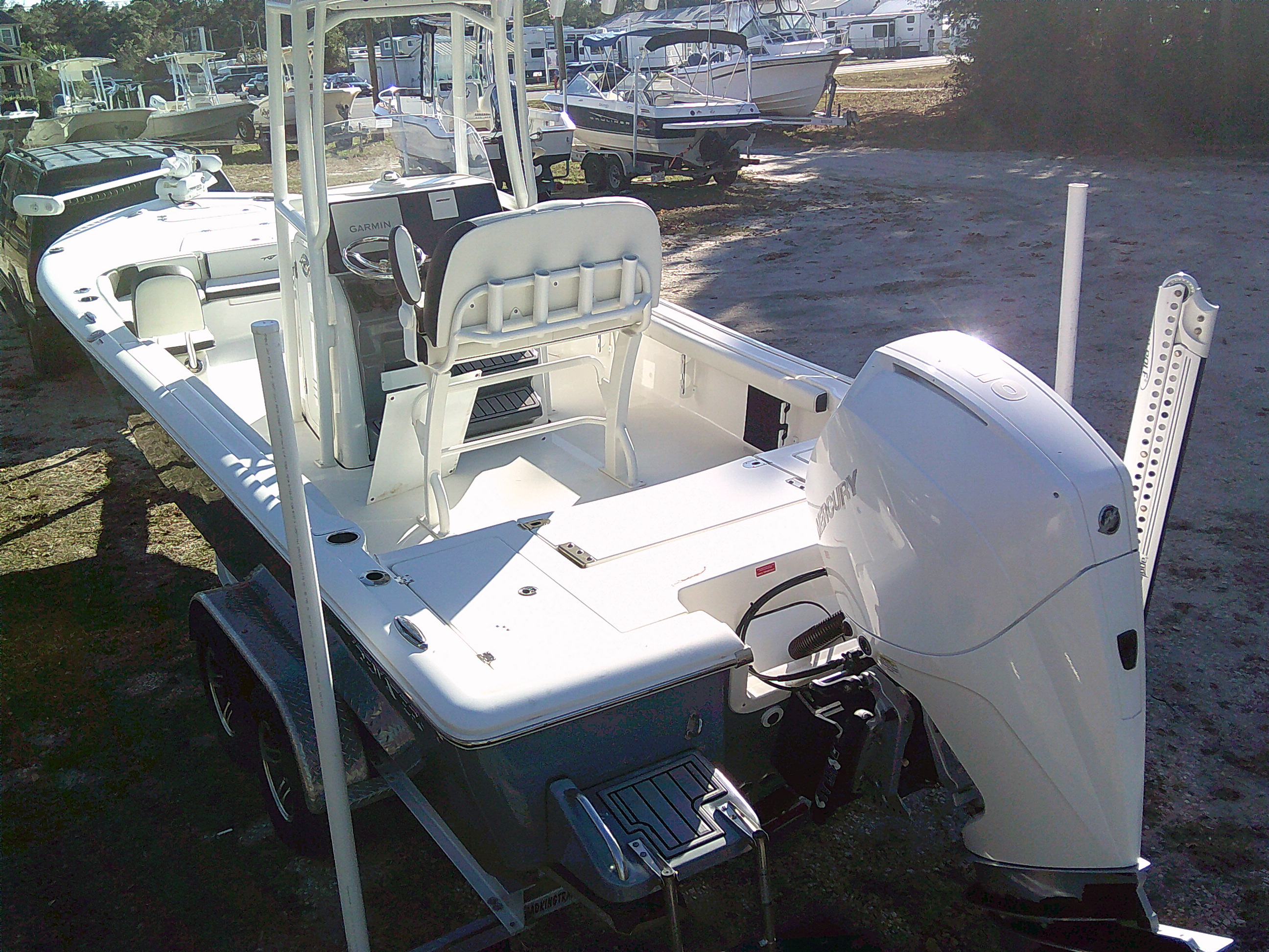 Vessel Info:Large Forward Platform, Perfect for Throwing a Cast Net, Fishing or Sunning w/Minn Kota Ulterra 36 Volt, 112 Lbs. Thrust, Self Deploying Trolling Motor, Anchor Locker, Pop-Up Cleats, Storage Box / Cushioned Forward Seating w/Back Rest, 2 Removable Back Rest, 3 Storage Boxes-2 w/Rod Storage / 2 Cup Holders, 4 Rod Holders / Foward In Deck Cast Net Storage Box / Forward of Console Cushioned Seat w/Back Rest / Power Coated Hard Top w/Electrical Box, Grab Rails, Forward and Aft LED Spreader Lights, Hard Top Lighting, 2 JL Audio Speakers, 4 Rod Holders / Large Console w/Wind Screen, Grab Rails, Gauges, Controls, Switch Panel, Stainless Steel Tilt Helm w/Hydraulic Steering and Knob, Compass, JL Audio Woofer Speaker, Foot Rest, Large Console Cabin Large enough of a Porty Potty / Power Coated Leaning Post w/Folding Bolsters, Arm Rest, Foot Rest, 4 Rod Holders / Coaming Cushions / Under Gunnel Rod Storage / Self Bailing Deck / Large Aft Platform w/ 2 Large Live Wells, Cushioned Folding Bench Seat w/Back Rest / EZ Access to Bilge and Pumps / 2 Start Batteries w/Switch / 2 JL Audio Speakers / Raw Water Wash Down / 2 Cup Holders / 2 Rod Holders / Swim Platform w/Folding Ladder / Trim Tabs / Blade Anchor Pole / Atlas Jack Plate