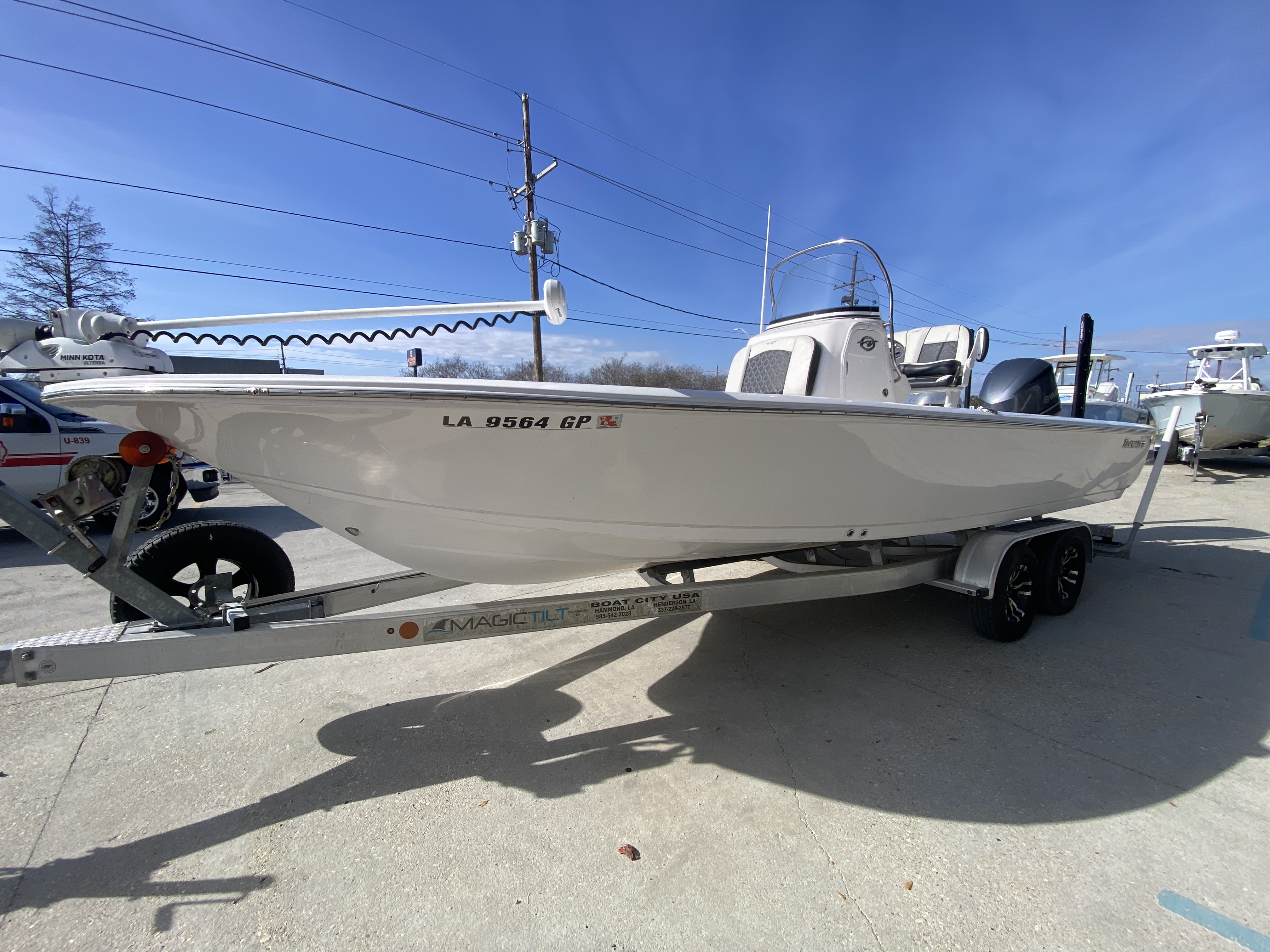 Includes dual-axle aluminum trailer (almost new – boat stored mostly on a lift)