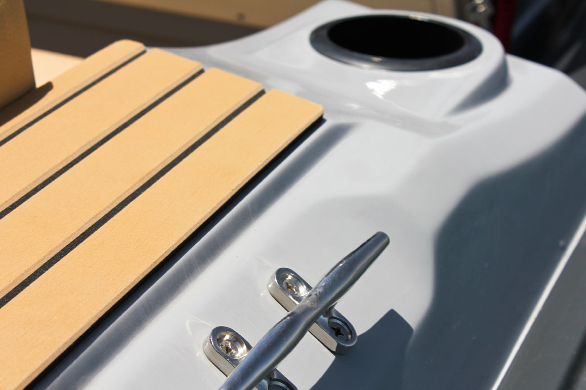 The Tiger Marine 480 SL is stocked with hypalon tube. SeaDeck faux teak, Silvertex cushion set, ski-pole, Nav lights, Bilge Pump, Battery system with cutoff switch, Stainless Steel Bimini Top