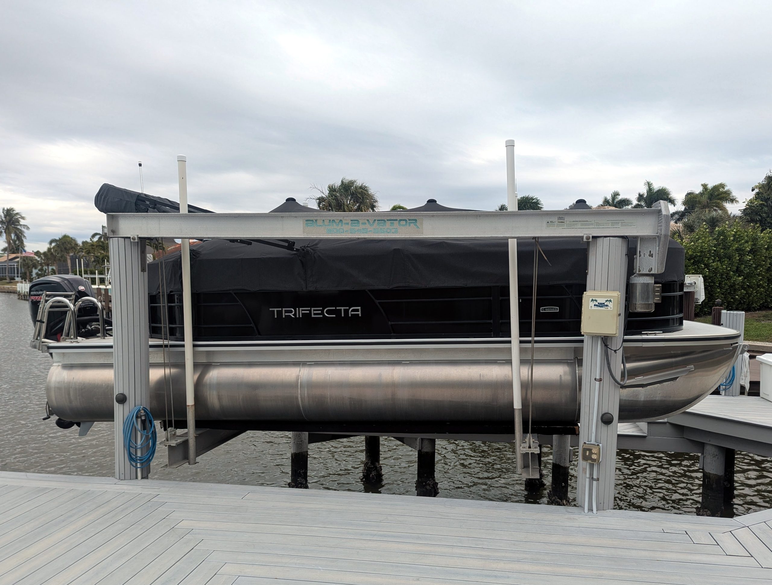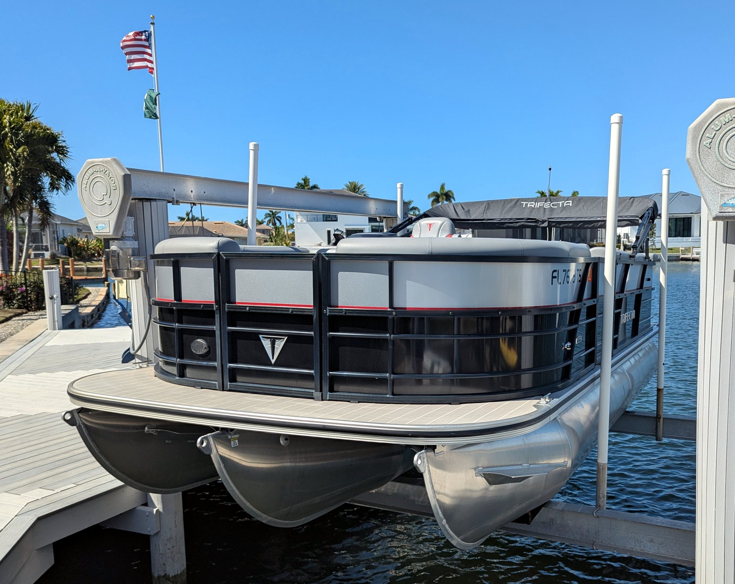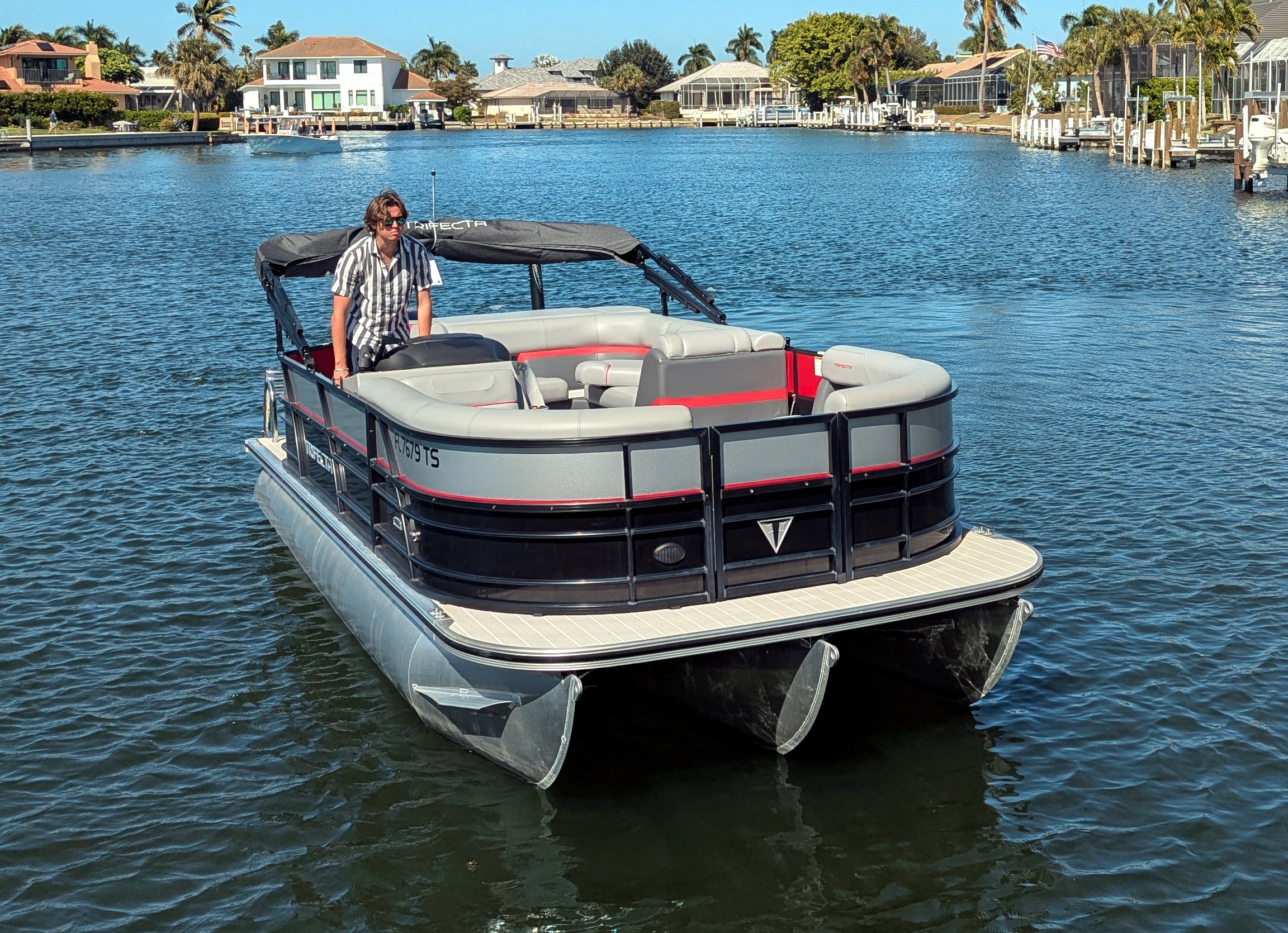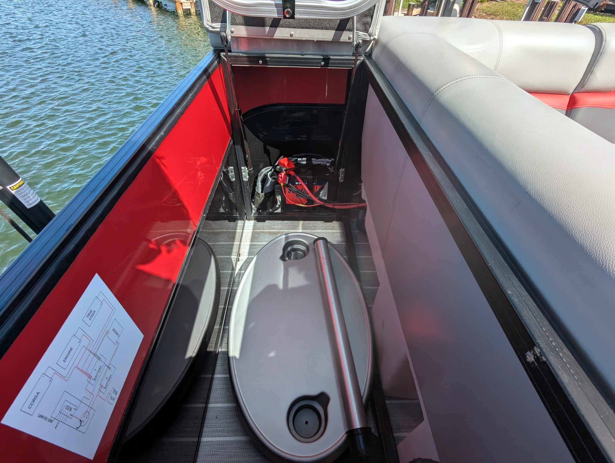 Standard Features: (4) Speakers w/ Protective Inside Covers, 37 Gallon, Direct Fill, Fuel Tank in Motor Pod w/ Fuel / Water Separator, 3/4" One Piece V-Lite Performance Deck, Bimini Top, Trailering Brackets Bow Reinforcement Bumper & Continuous Extruded Aluminum Riser Brackets, Deutsch Waterproof Electrical Wiring Harness, Extended Stern Platform w/ SS Telescoping Ladder,TOval Shaped Silver Matte Table, Port Side Cup Holder, Port Stern Gate, Quick Release Nylon Bimini Brackets, Radius Deck w/ Integrated Deck Trim and Vinyl Rub Rail, Raised Logos, Reinforced Splash Fins, Stainless Steel Cleats, Stainless Steel Cup Holders, Framed/Coated Mid Back Helm Chair w/ Arms & Seat Slider, Stainless Steel Corners Surlast 10' Color Matched Bimini Top w/ Push Pin Quick Release, Surlast Color Matched Playpen Cover Tachometer, Voltmeter, Fuel Gauge, Trim Gauge, 12 Volt Receptacle Transducer Bracket on Starboard Tube Vinyl Wrapped Furniture Bases.