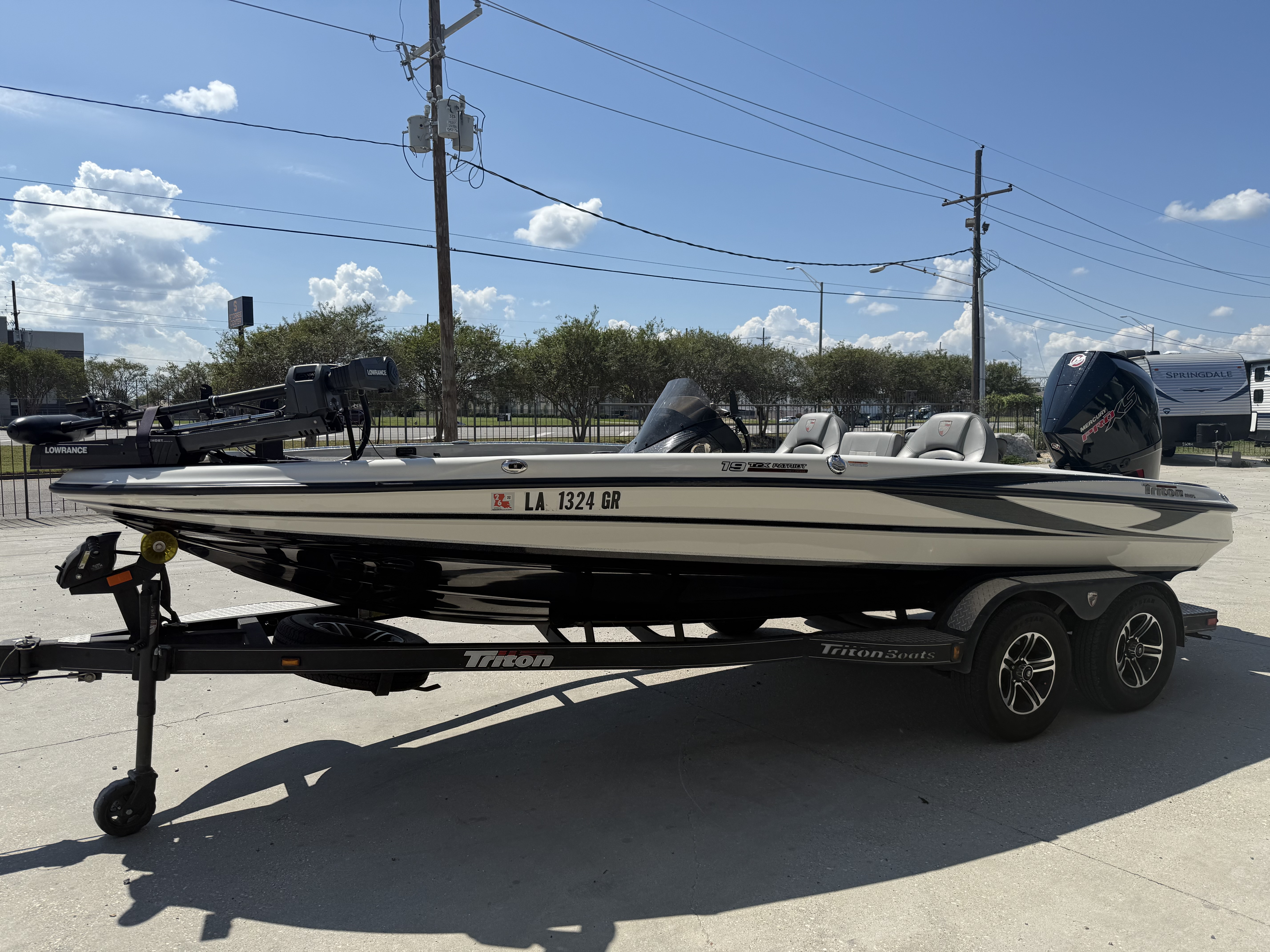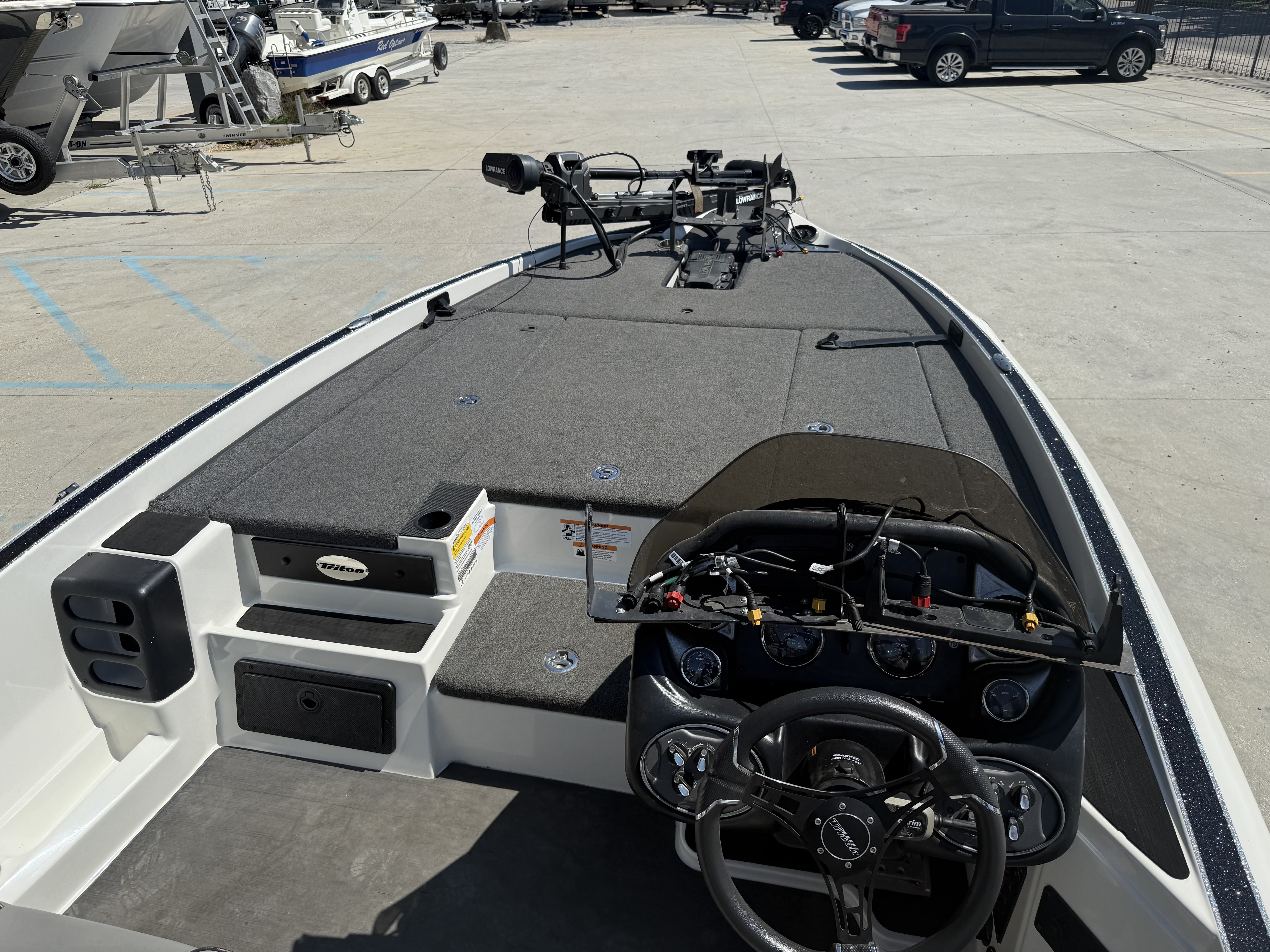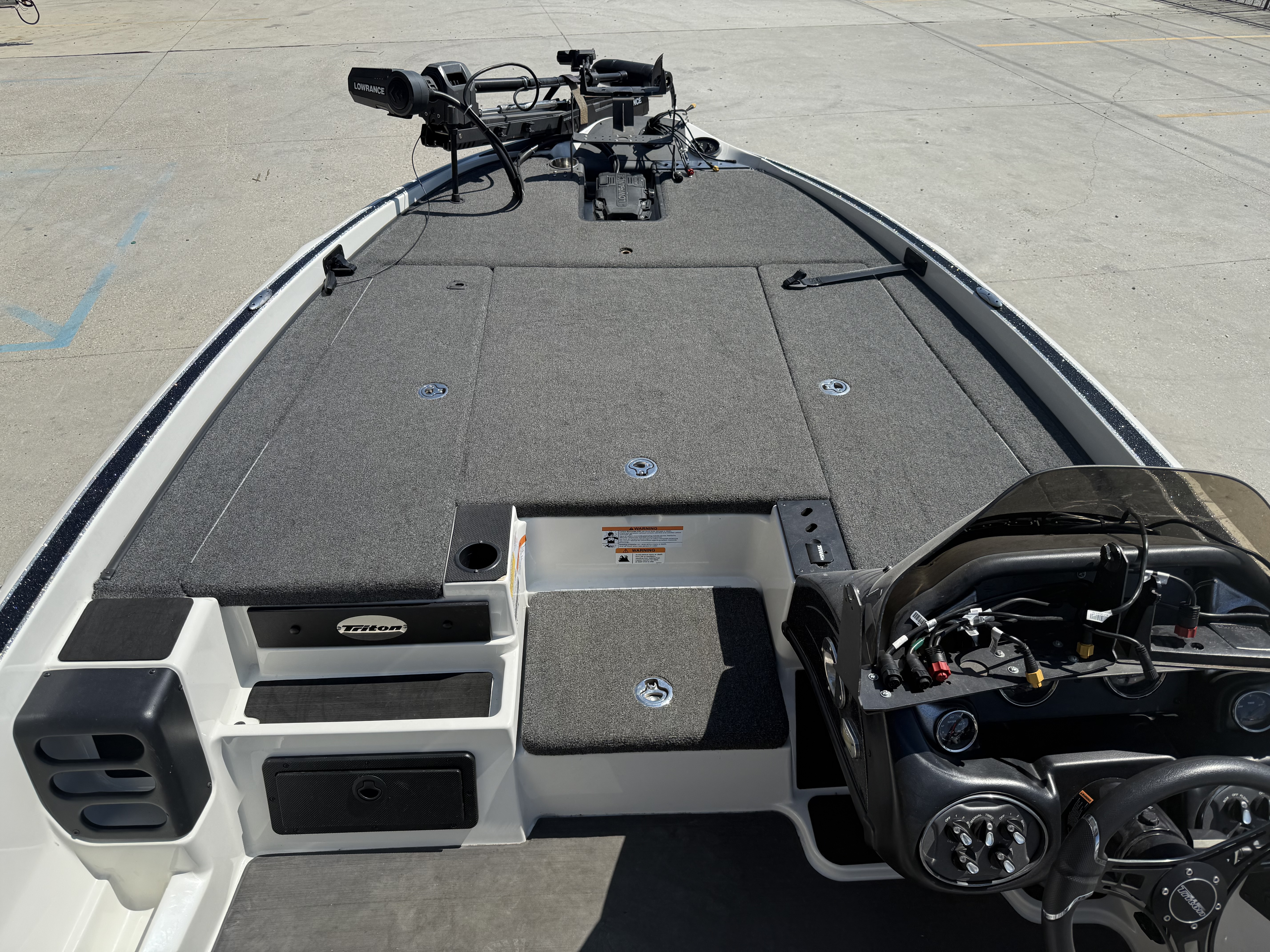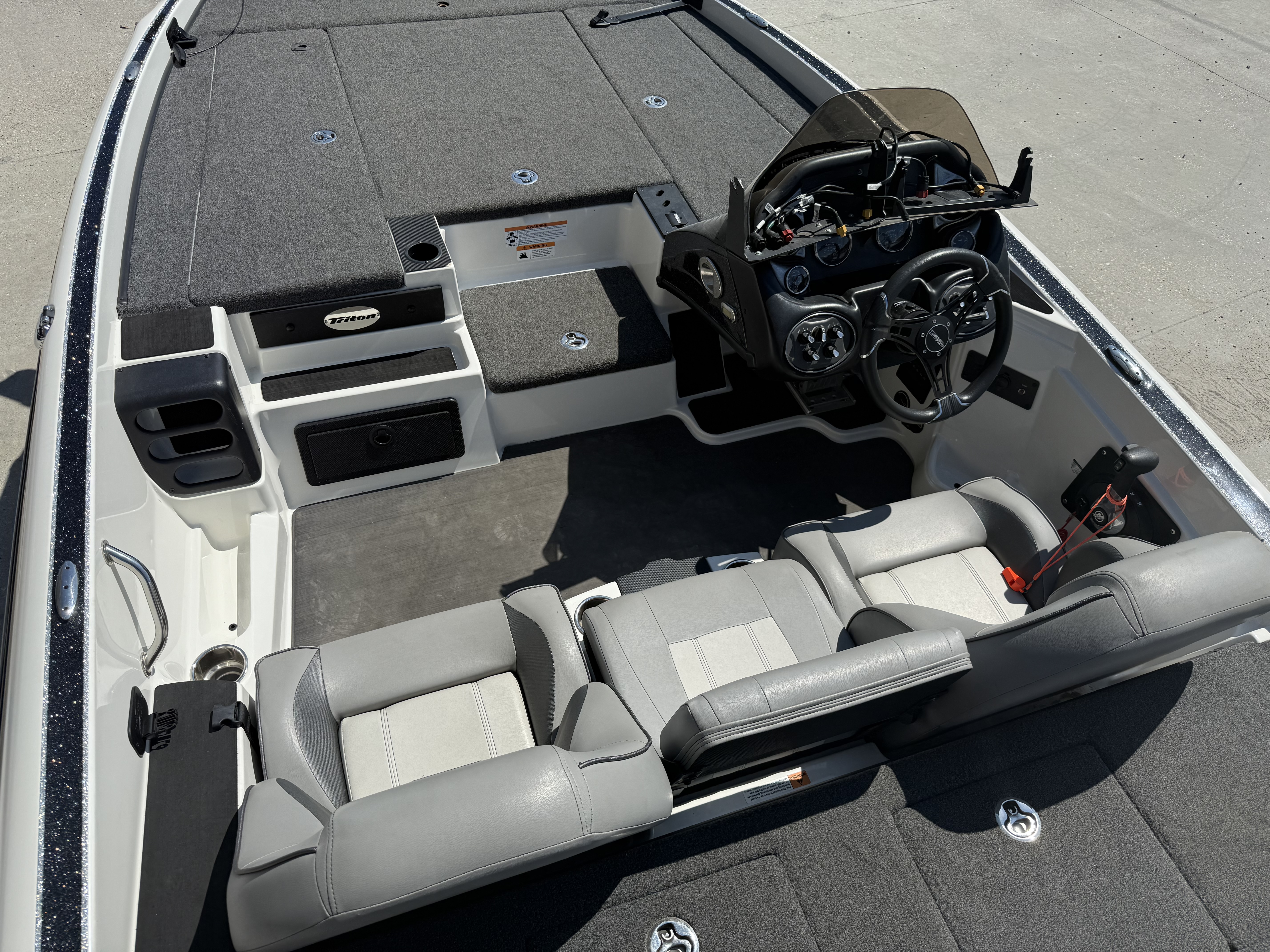 The 19 TrX Patriot is loaded with features and high-performance stealth in a value package that is ideal for the hardcore weekend tournament angler. You get big-rig amenities inspired by championship results in a tournament-ready 19' class package. Armed with 225 horses, the 19 TrX Patriot is factory rigged with a Mercury® outboard, Lowrance® electronics, and Lowrance® trolling motor. There is no wasted space in a Triton—an 8' rod rack with 12-rod capacity, center storage box tackle organizing system and oversized storage compartments throughout mean you never leave anything behind. With a custom designed, road-trip ready trailer, the 19 TrX Patriot is ready to roll.