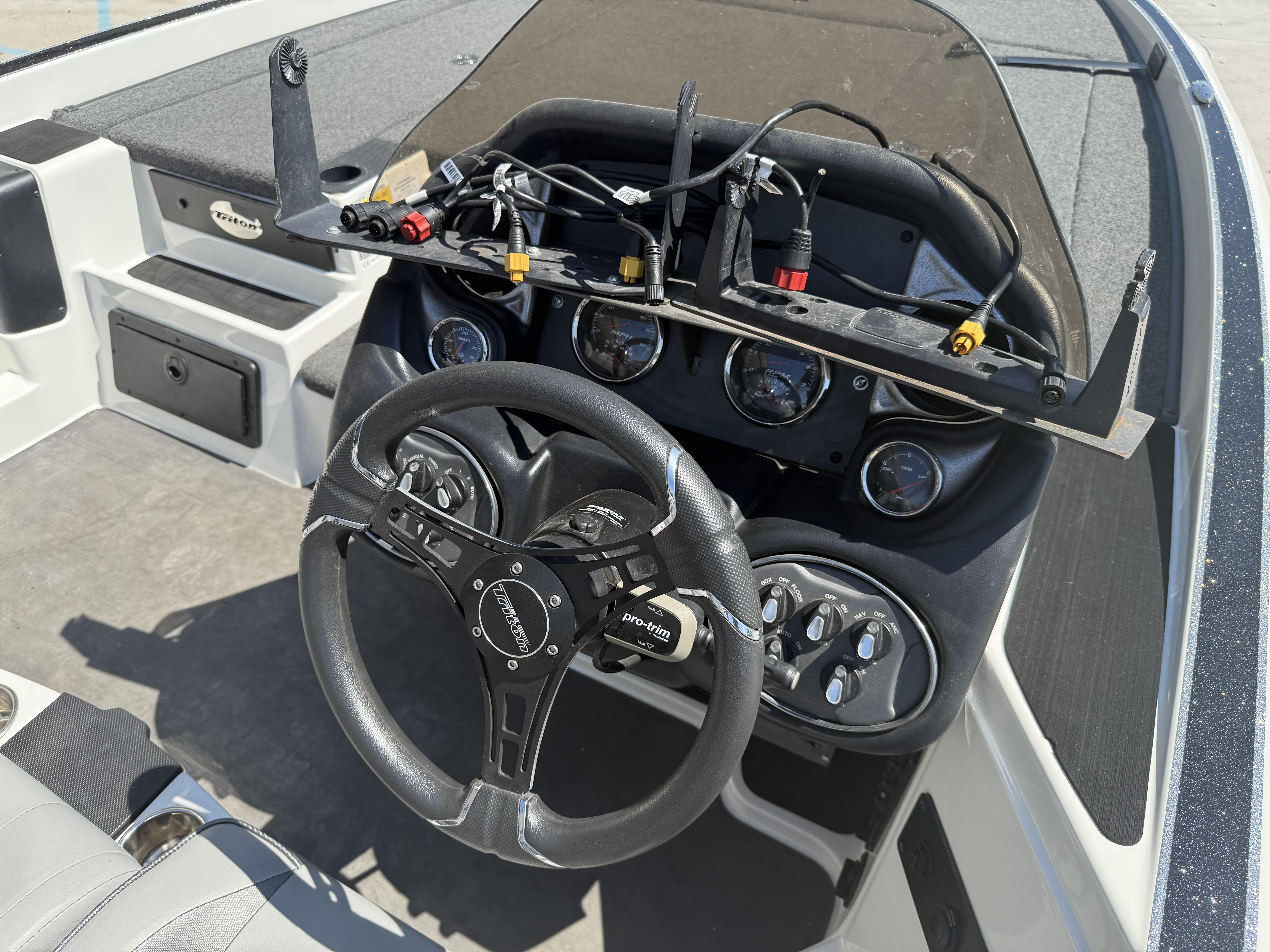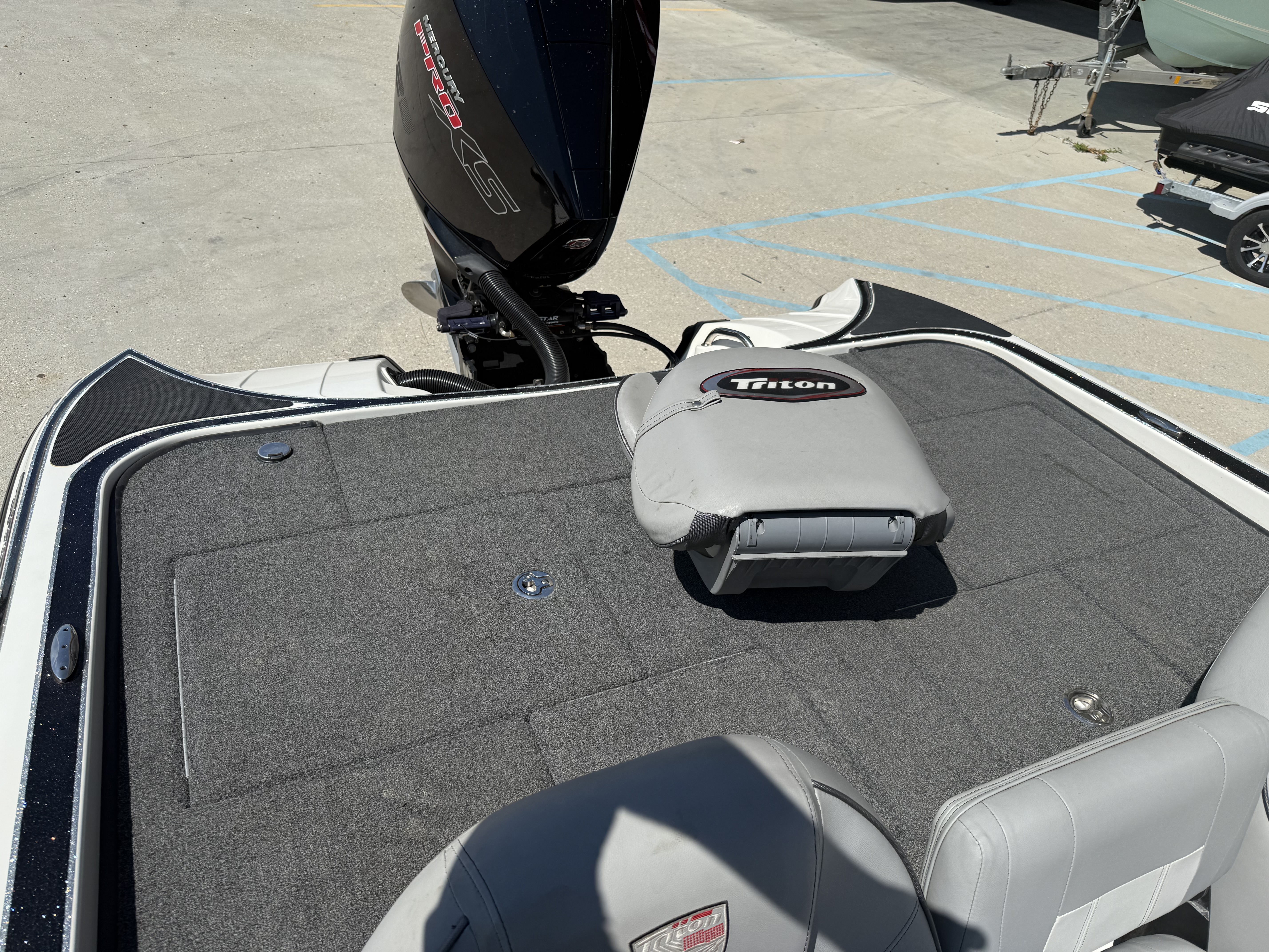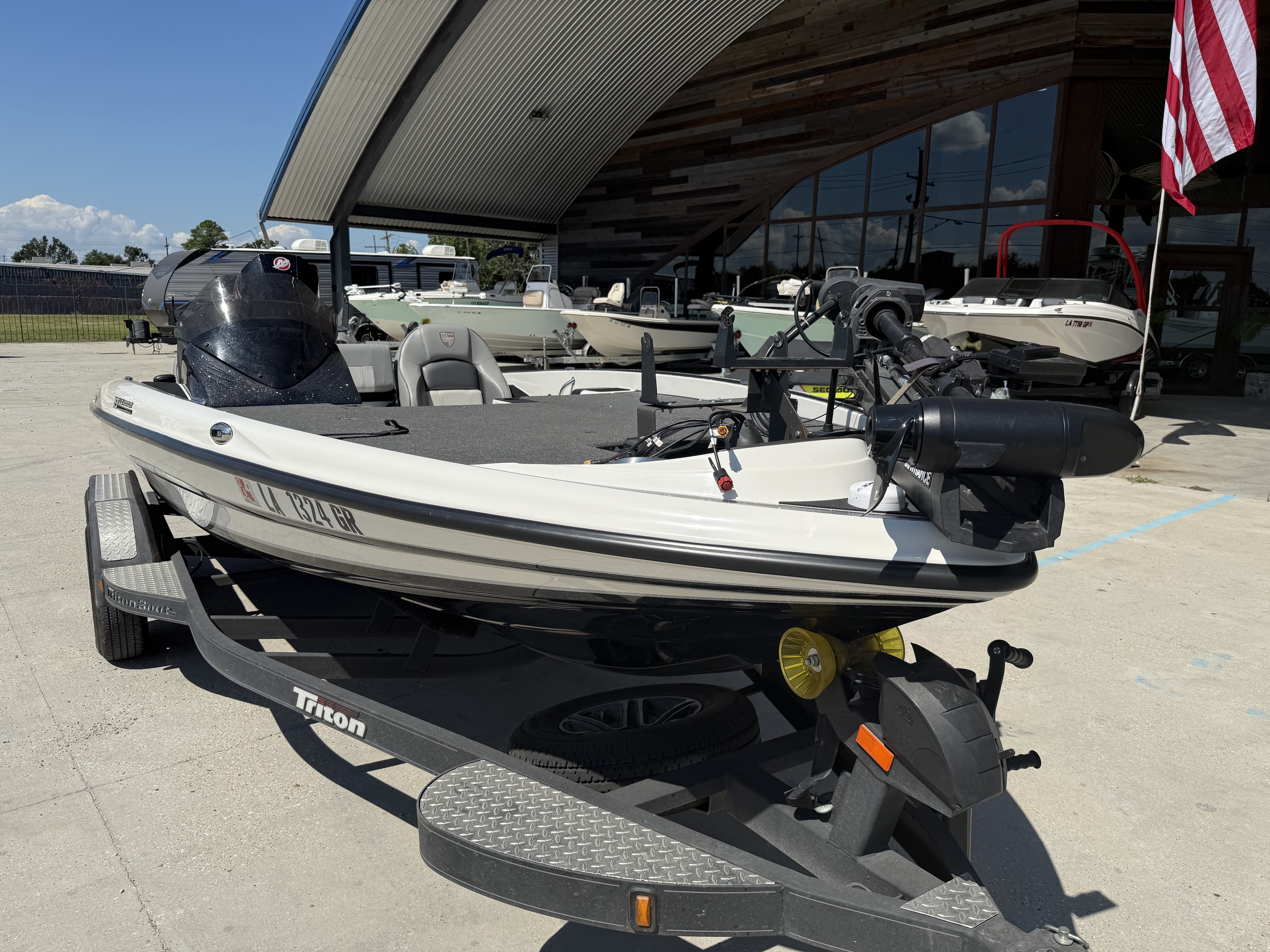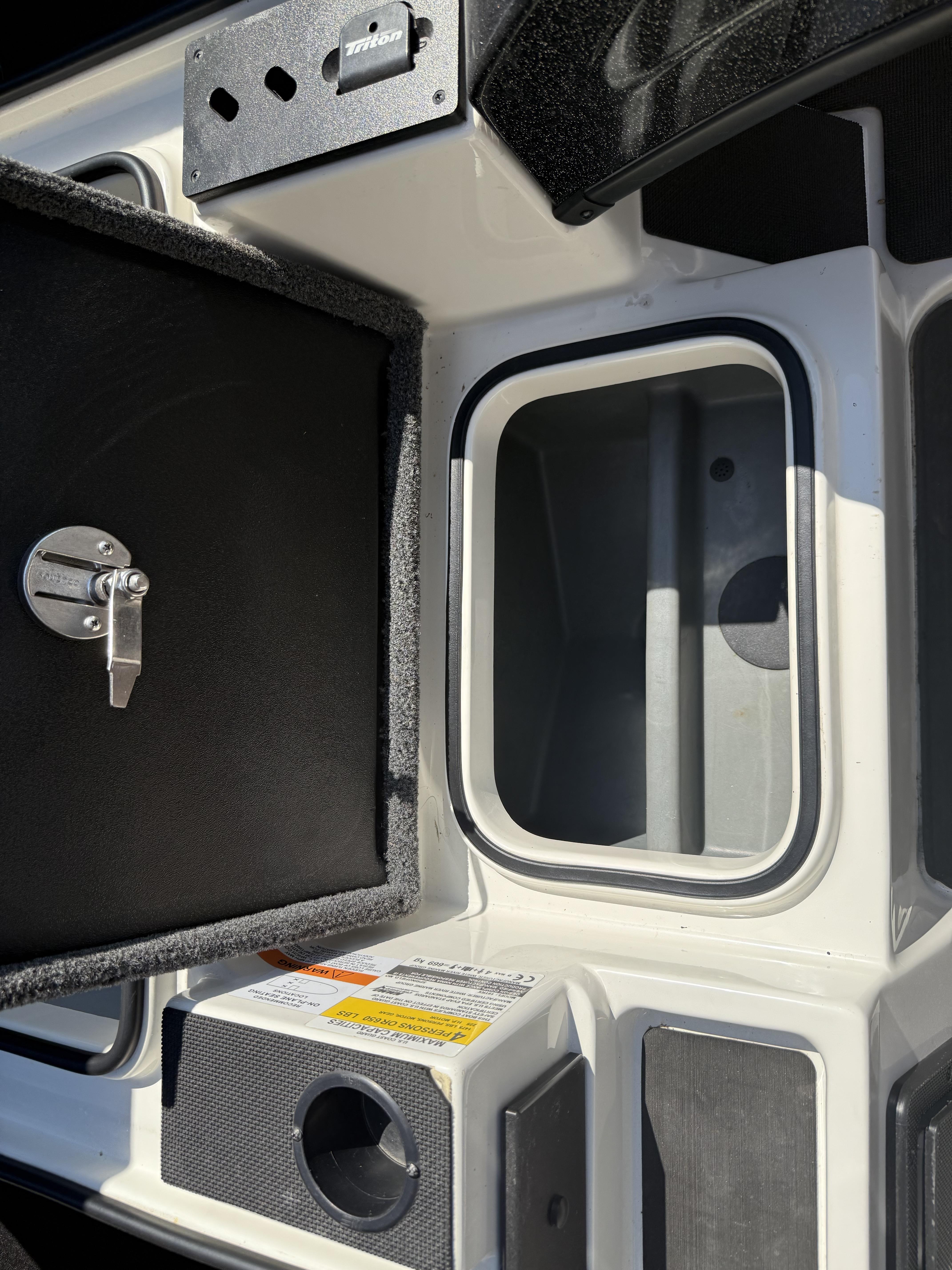 The 19 TrX Patriot is loaded with features and high-performance stealth in a value package that is ideal for the hardcore weekend tournament angler. You get big-rig amenities inspired by championship results in a tournament-ready 19' class package. Armed with 225 horses, the 19 TrX Patriot is factory rigged with a Mercury® outboard, Lowrance® electronics, and Lowrance® trolling motor. There is no wasted space in a Triton—an 8' rod rack with 12-rod capacity, center storage box tackle organizing system and oversized storage compartments throughout mean you never leave anything behind. With a custom designed, road-trip ready trailer, the 19 TrX Patriot is ready to roll.