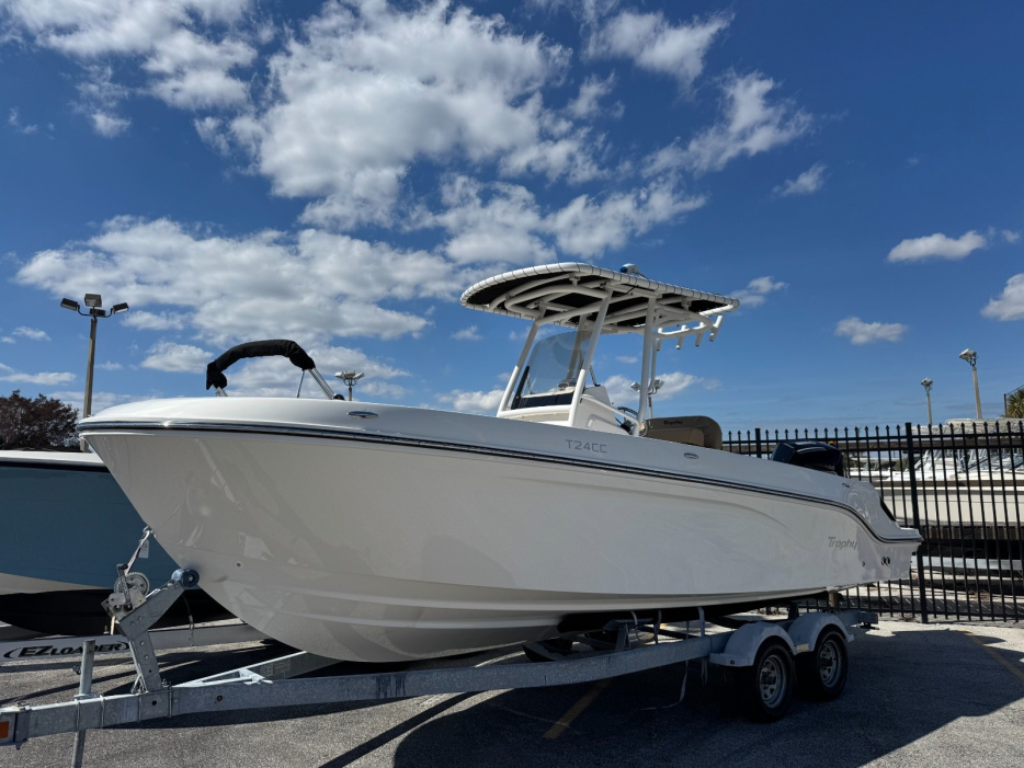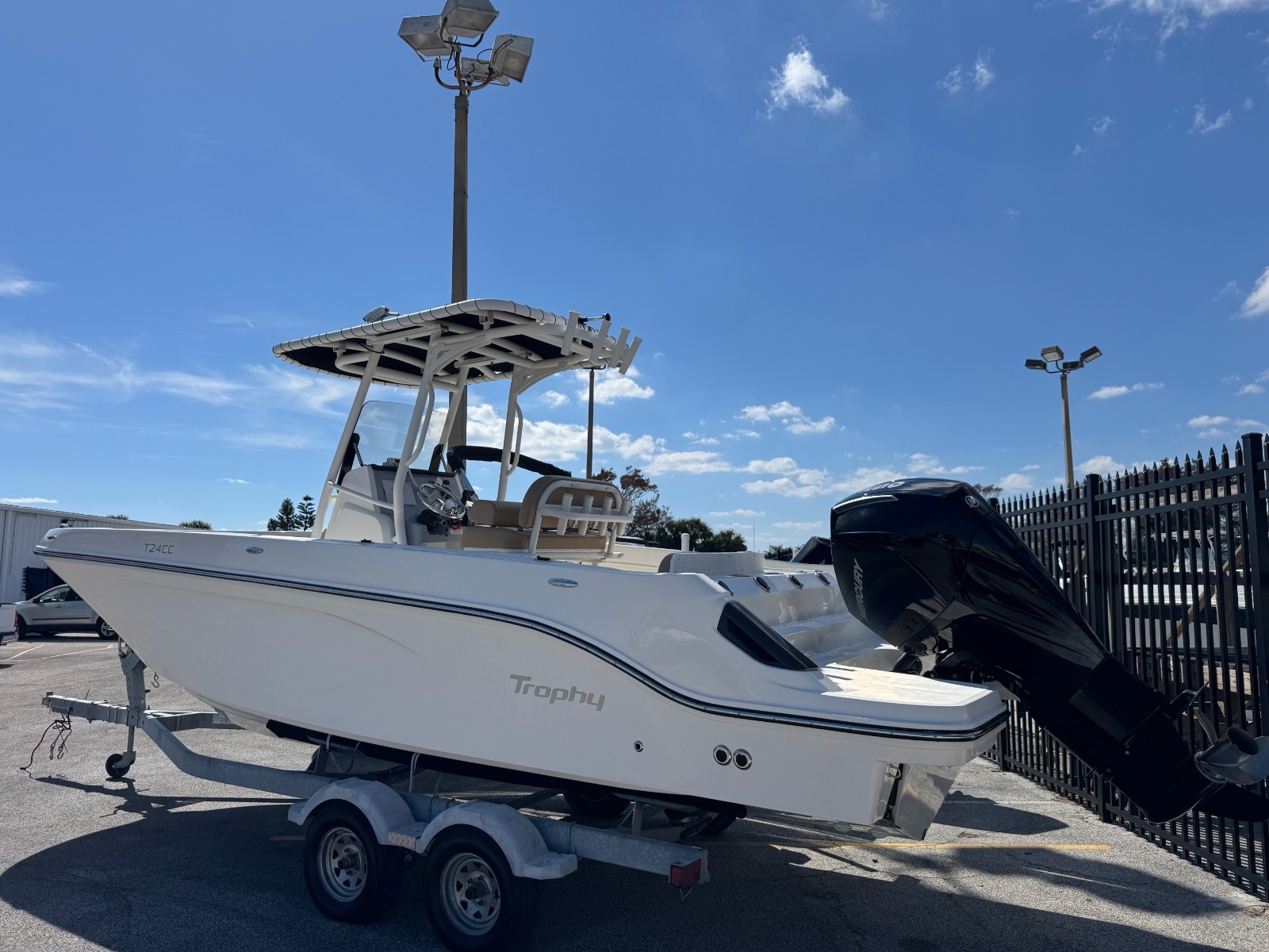 The newest addition to the Trophy series innovation expands our center console capabilities with increased fuel capacity, rugged fishability, increased storage and amplified cruising comfort adding up to incredible value. Built on a deep V-hull foundation, the T24CC accommodates up to 12 people on board, making this the perfect family fishing boat for inshore and coastal angling as well as entertaining. Discover the same user-friendliness and convenience features found in other Bayliner models in addition to new options designed to give you greater confidence in all your pursuits. We have several options available. Schedule a Sea trail and Take home your Trophy today!