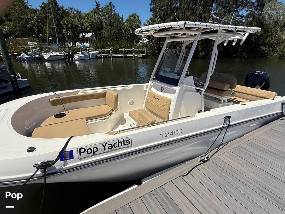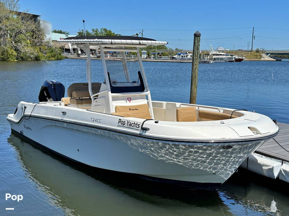 For sale is a 2023 Trophy T24CC Center Console, a sleek and versatile vessel located in the beautiful city of Tarpon Springs, on the coast of the Tampa Bay area in Florida. Powered by a robust 250 HP Mercury V8 engine, this boat offers the ideal blend of performance, comfort, and fishability.