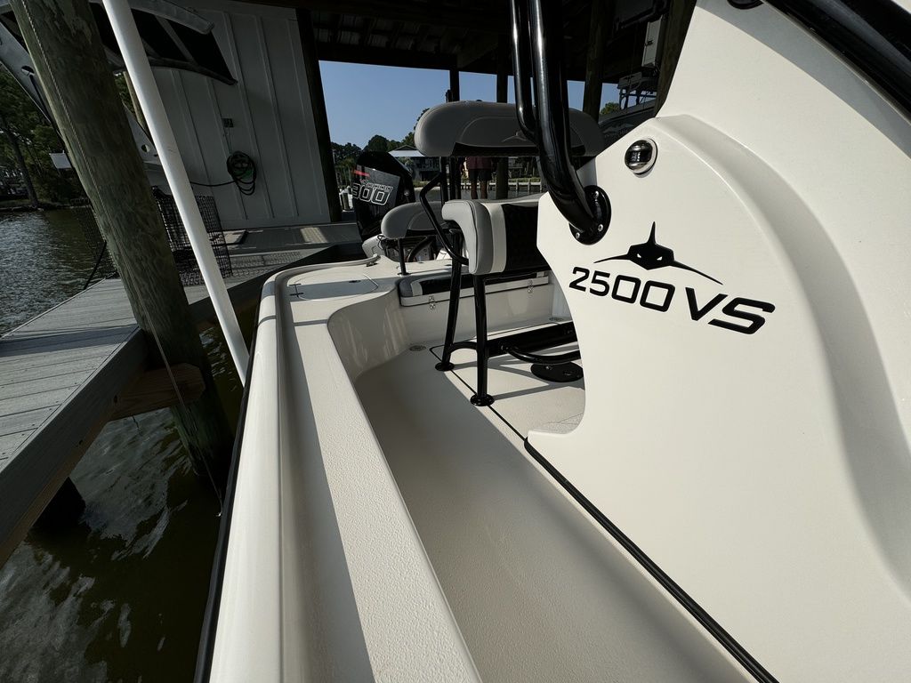 Designed and built better, because the serious fisherman deserves the best.From the design, to the quality of materials, to the craftsmanship, we have made every effort to design our boats for excellence. Model 2500 VS has an overall length of 24’10” and beam of 8’6" and a shallow draft of +/- 12 inches. It is fully finished molded cap design for maximum deck space and under-deck storage, sound-fitting hatch lids, enormous finished and lined compartments, and customizable underdeck rod storage. This model offers a modified, step, pad V hull for improved speed and fuel efficiency and the bow design incorporates a Carolina flare with a sweeping sheerline.