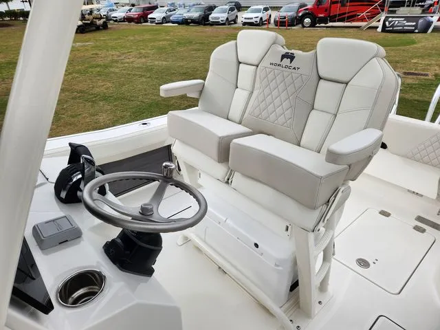 Contact us to findĀ out ALL available savings! Take advantage of limited-time savings on in-stock boats!All Sale and/or Clearance Prices include all rebates and incentives. The All-New 260CC-X is now available! Featuring a standard wrap around U-lounge in the bow, ample rod storage and a full transom fold-down 50" bench seat that is convertible to a flush, aft casting deck. The 260CC-X showcases the dramatic styling, smooth ride and innovation World Cat is known for. Whether you're casting a line or cruising with the crew, this is the perfect Cat for you!