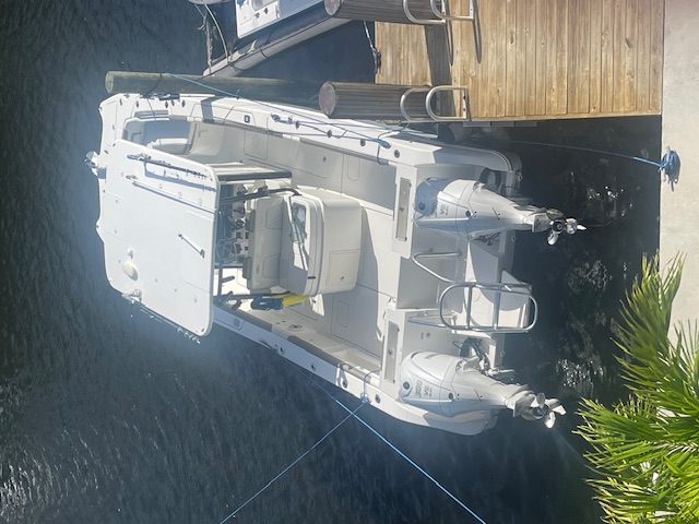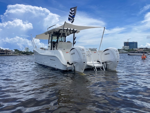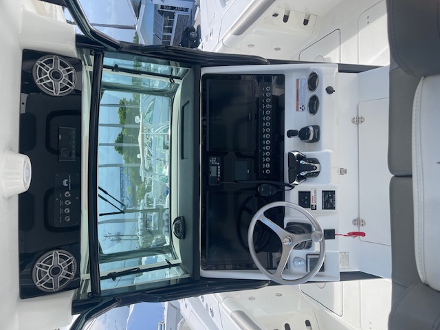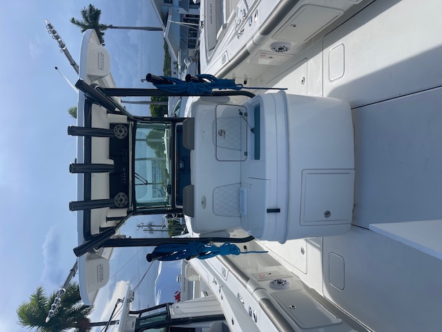 The 325CC showcases numerous enhancements and improved aesthetics, multiple exciting elements, removable port and starboard YETI coolers with seat cushion in cockpit, coaming pad bolster and transom storage tubs with acrylic lid. A USB charger and two additional cup holders both port and starboard on the gunwale cap can be found in the bow. This model provides unmatched performance with offshore range all on a stable, proven catamaran platform.