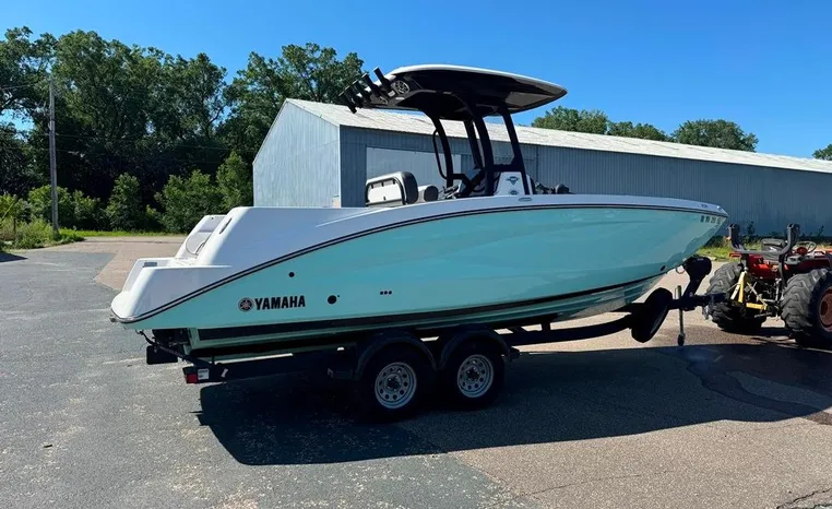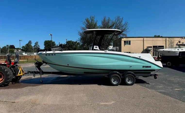 Introducing the stunning 2023 Yamaha Boats 255 FSH Sport E, a remarkable jet boat that combines performance and style. With an overall length of 25 feet, this vessel features a sleek modified vee hull made from durable fiberglass, ensuring stability and agility on the water. Powered by dual inboard 1.8L High Output engines with a jet drive configuration, it promises exhilarating speed and responsiveness, perfect for both leisurely cruises and thrilling adventures. The boat's design is enhanced by thoughtful features, including advanced equipment for a seamless boating experience. Whether you're fishing, cruising, or enjoying water sports, the 255 FSH Sport E is designed to accommodate your needs with comfort and flair. Experience the joy of boating with this exceptional model that showcases Yamaha's commitment to quality and innovation.