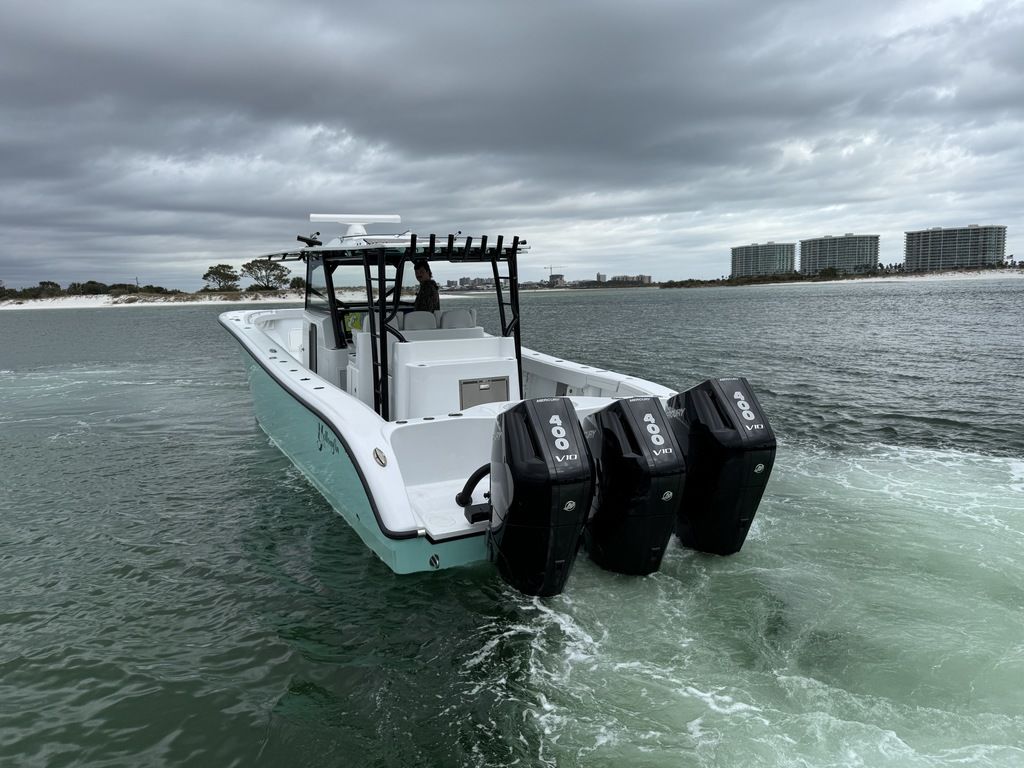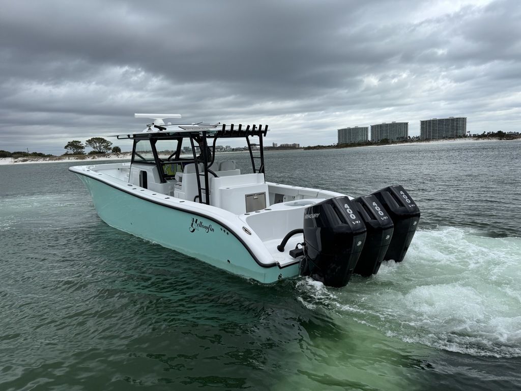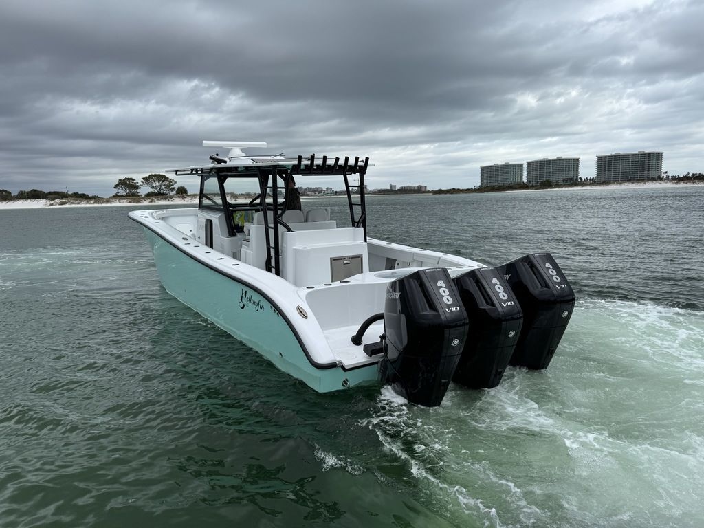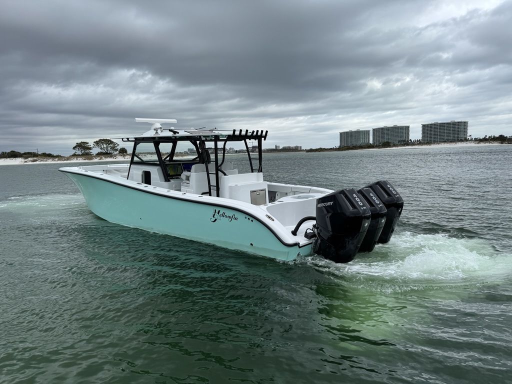 Like New 2023 Yellowfin 42 Offshore powered by New Triple Mercury 400 V10s with ONLY 35 Hours! 7 Years of Warranty Left on the Motors! Located in Orange Beach, AL. Like New 2023 Yellowfin 42 Offshore powered by New Triple Mercury 400 V10’s with ONLY 35 Hours! 7 years of Warranty left on the Motors, gets 1 mpg at 35-40 mph, Low to Mid 60s Top Speed. Planes easily on 2 engines! This boat is loaded with tons of incredible features! A few highlighted features include: