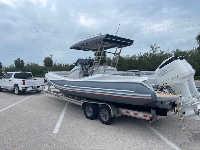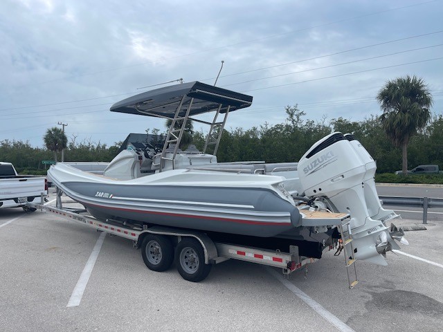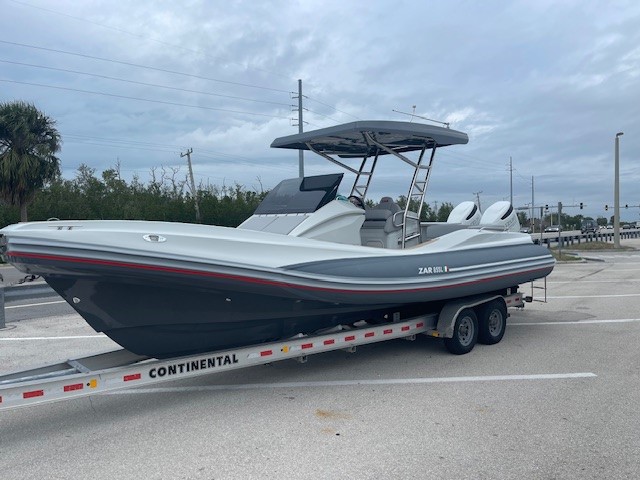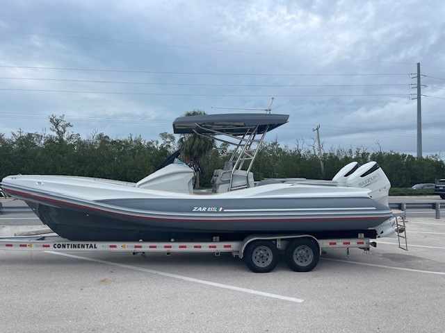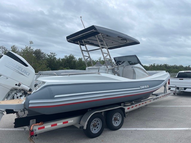 This 2023 ZAR 85 SL is lightly used rigged with twin Suzuki 250's, t-top, Garmin GPS, Fusion stereo, Electric anchor windlass, cushion set for cabin bed, electric head with holding tank, refrigerator, gas grill. the boat is ready to go!
