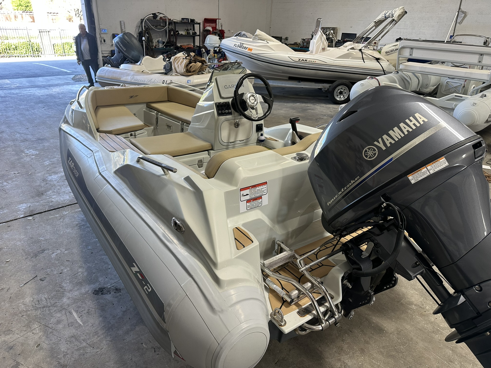 This Pre-owned 2023 ZAR ZF-2 is in nearly like new condition. Rigged with a Yamaha F60 High Thrust with tons of upgraded and custom colors. 9" Garmin, fusion stereo with upgraded JL Audio speakers and amp, Ski-pole, Swim ladder, LED lighting, Underwater lights, Cover, and more. This boat is ready to go today and is in truly excellent condition. Having double the storage of comparable boats, the ZF-2 has more than enough room for all of your gear. The ZAR ZF-2 Tender with it's ZAR hull is the best running, best performing, driest, most comfortable ride with more seating and double the storage of any competing boat of the same size.