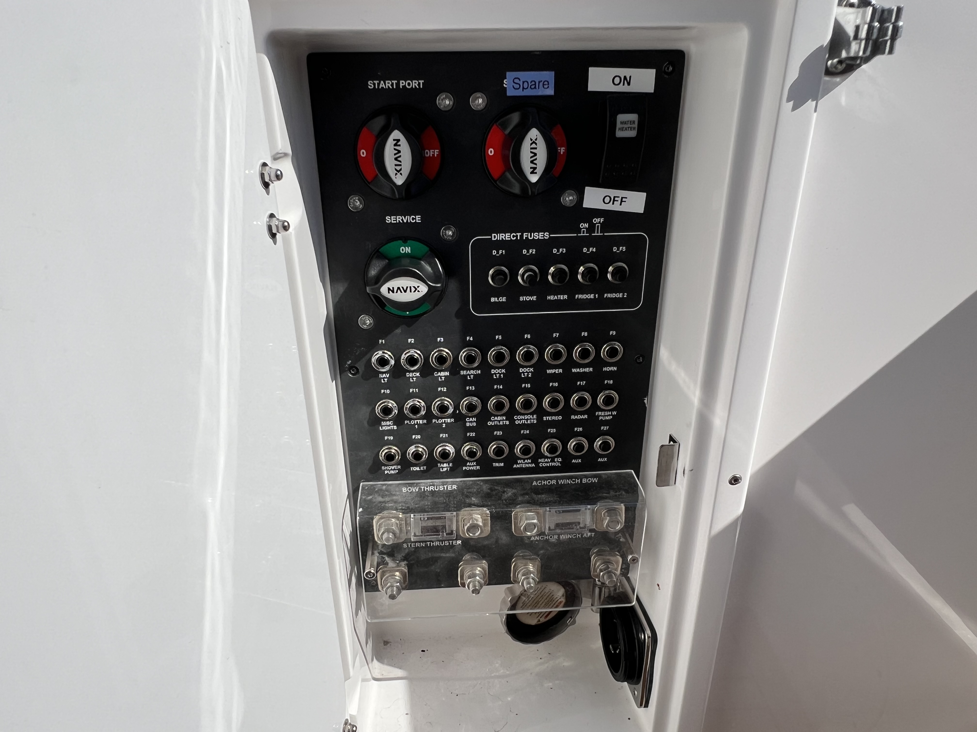 Shore power 25 Ah. plugs; warm water heater. pantry and toilet.