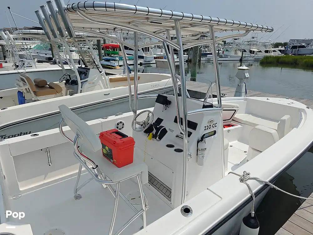 A 200-horsepower Mercury outboard powers this Aquasport 220 CC. Legendary!