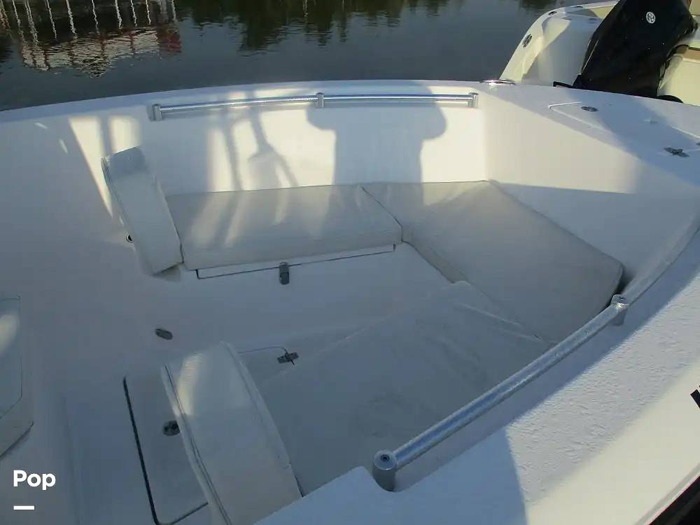 There is a folding transom bench seat. You can fold it up out of the way to make more room in the cockpit for fishing. A 26-gallon live well is to the side of the seating area.
