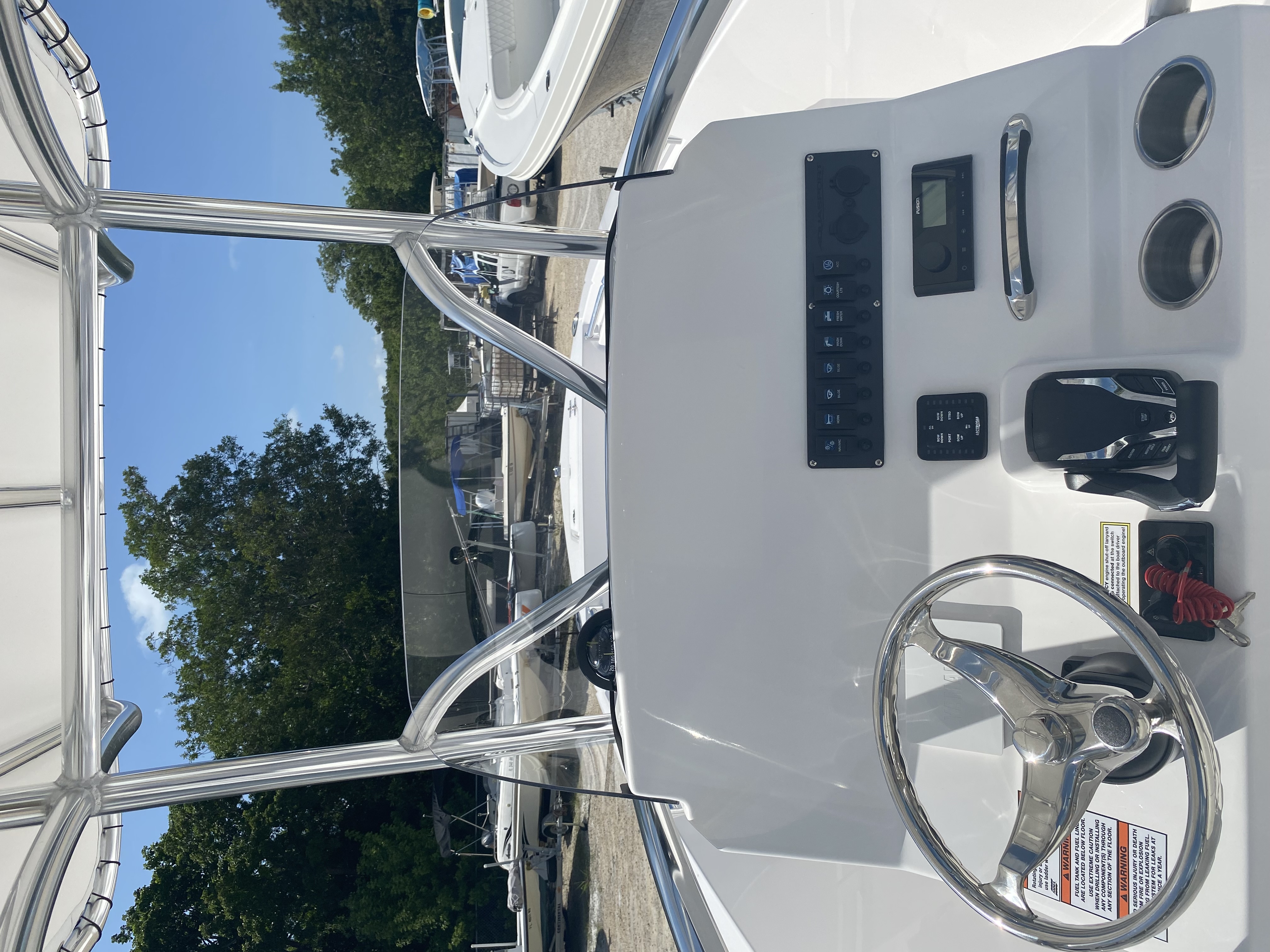 Our clients love the 2024 Aquasport 220 CC!!. It is the perfect all-around boat for fishing, diving/snorkeling, and cruising. The Yamaha 200HP (F200XSA2) and trim tabs handle nicely. Accessories include Fusion stereo, courtesy lighting and we have optional electronics packages.