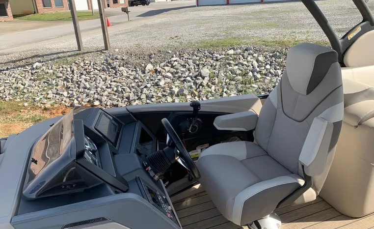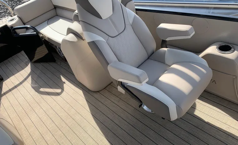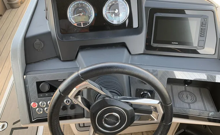 This is a factory demo 2024 model comes with full warranty on the boat, the motor has 2 more years left on warranty but additional warranty can be purchased. the trailer is not included however a new 2025 yacht club trailer can be purchased if needed. This special model has 27 inch pontoons industry standard is 25, and also has power Bimini.