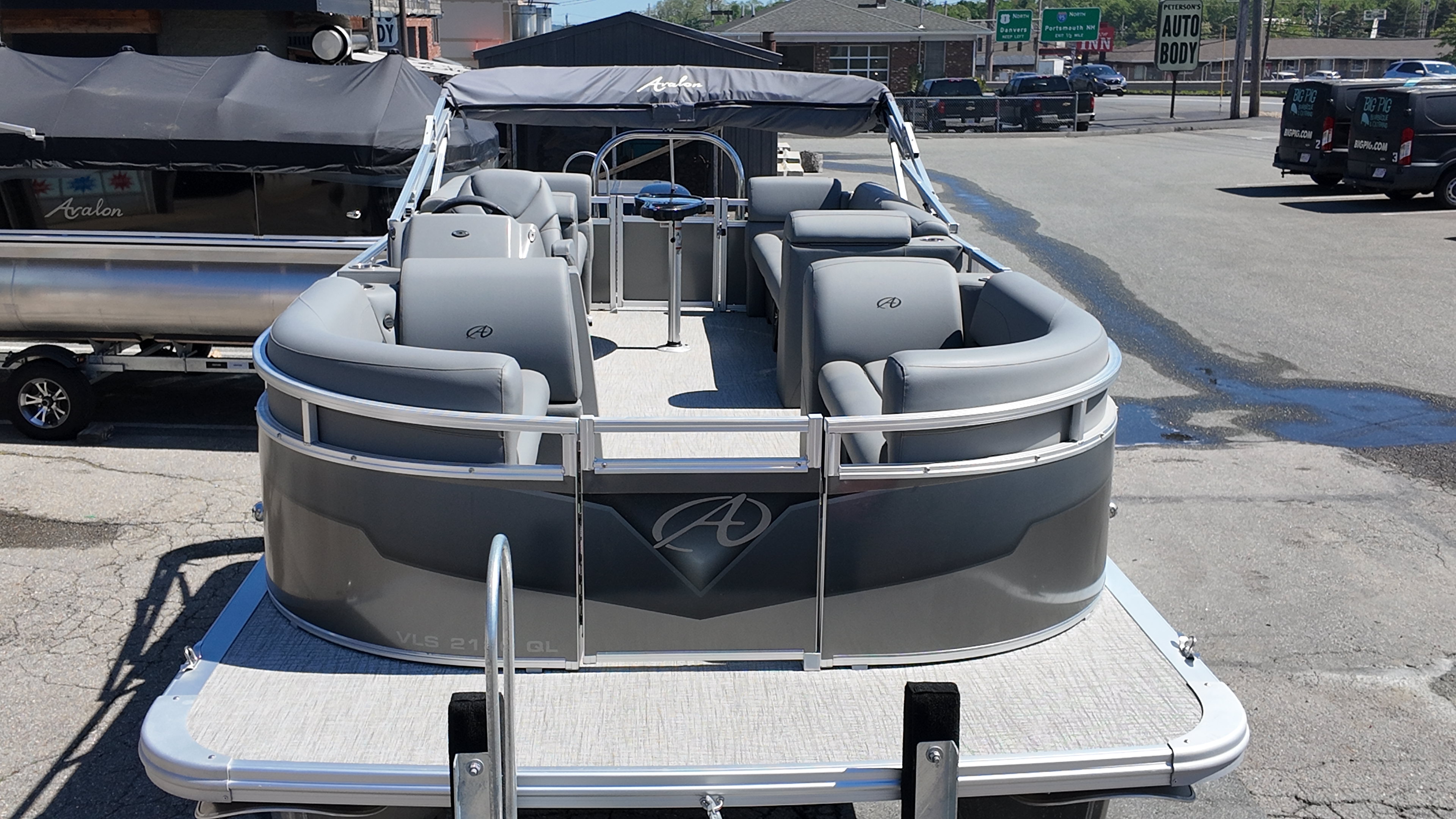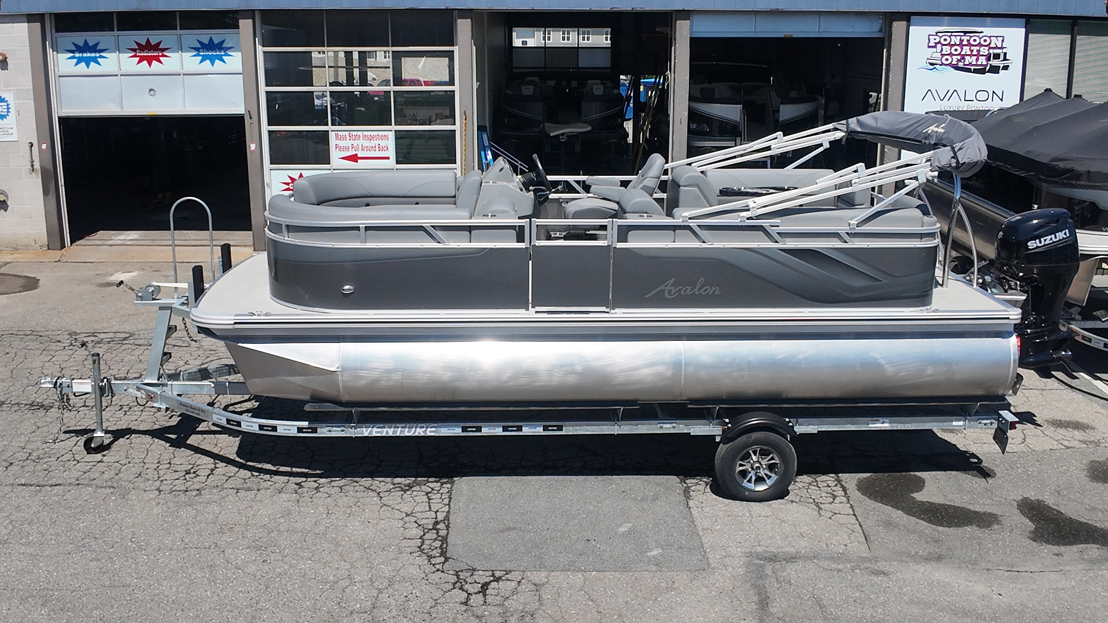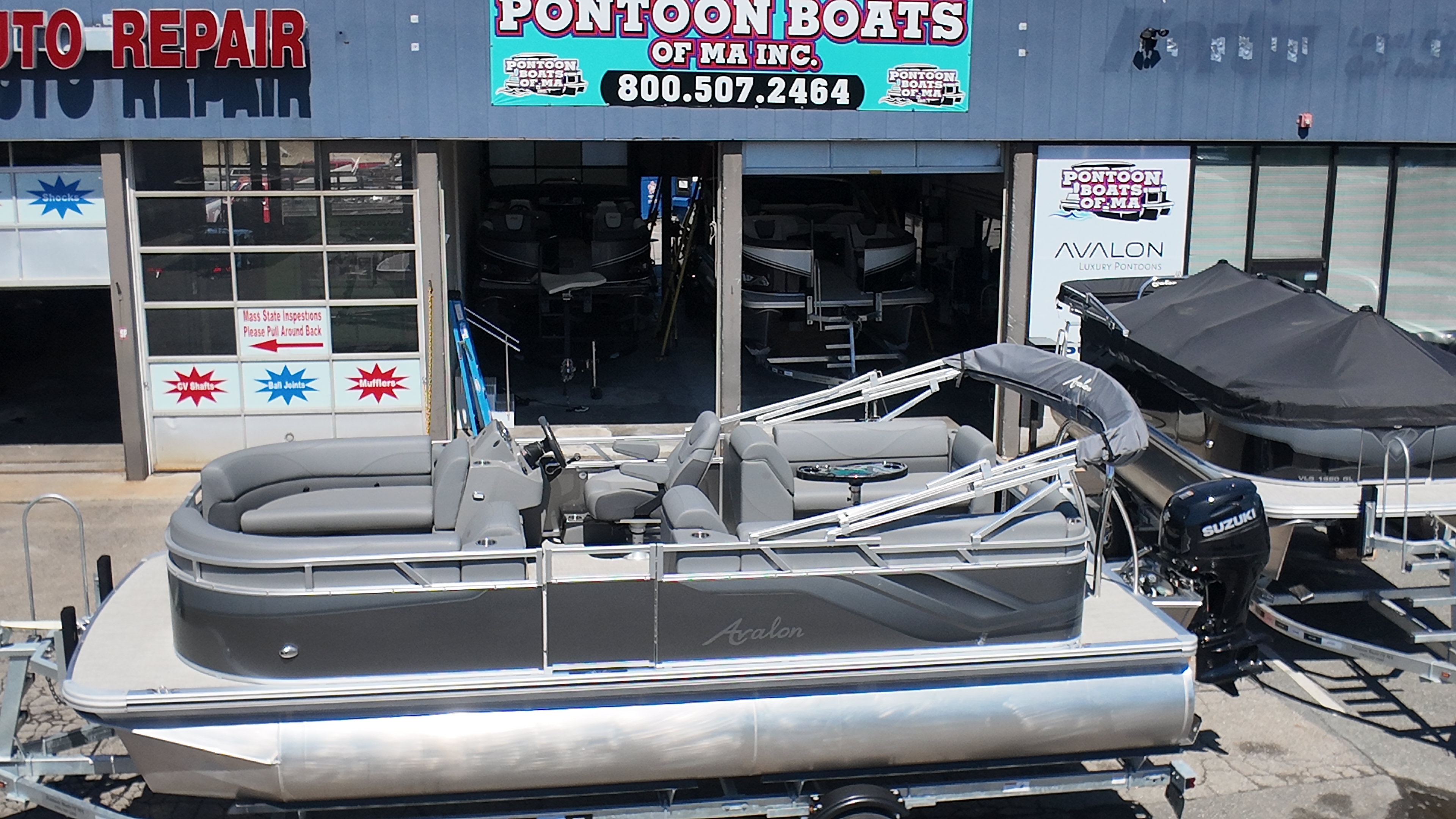 2024 Avalon VLS 21′ x 8′ Quad Lounger Charcoal Metallic walls with Graphite/charcoal interior Powered by Suzuki *DF90ATL4, 90 HP, Charcoal Canvas Bimini Top, Charcoal Playpen cover, 2 Captain’s chairs. 4 lounge seats, Bronze Fusion Sound System w/4 Fusion EL Speakers, 12v Power Plug & bow USB Charging port, Windshield, Erie Tilt Steering Wheel, SS cup holders, Riptide Shadow Vinyl flooring, Exterior NAV/Docking lights, Ski tow bar, fire extinguisher, Aluminum Ladder, 25 Gal built-in fuel tank, kidney shaped Greywood look table with base, trash can in lounge arm Stock # 762741-90 $32,900.00 after All Avalon and Suzuki Authorized Instant Factory Rebates! Trailer is INCLUDED! Factory Warranties 10 years from Avalon and 5 years from Suzuki Pontoon Boats of MA Inc is open by appointment . WE DO NOT KEEP REGULAR HOURS CALL FOR APPOINTMENT 10% down financing is available with your excellent credit