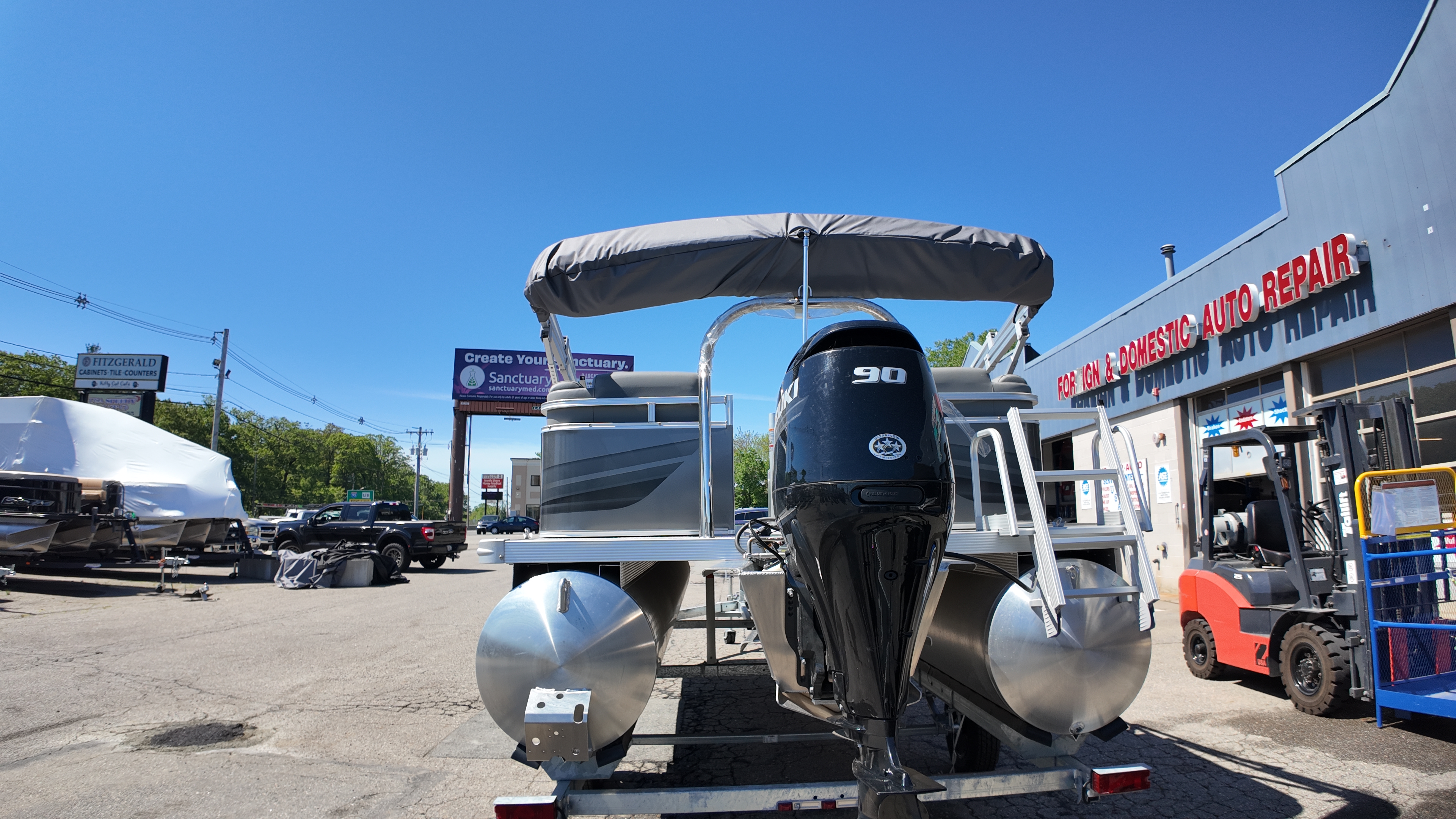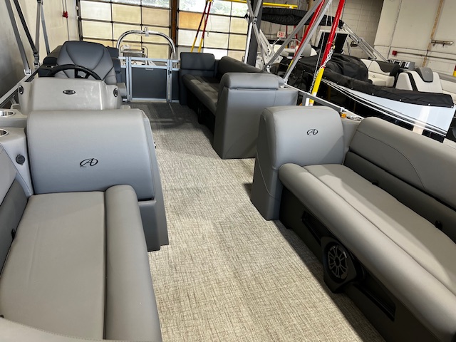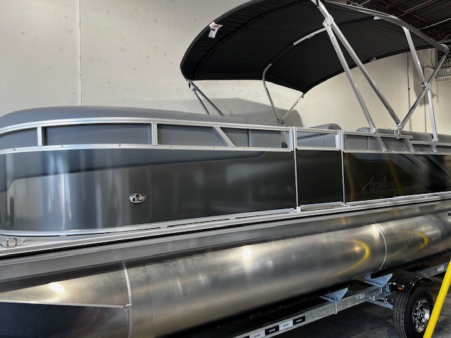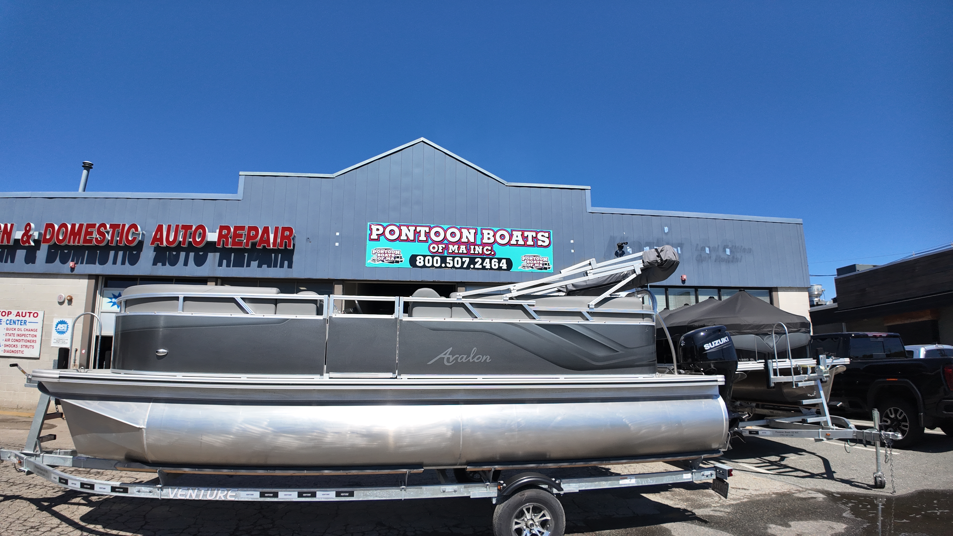 2024 Avalon VLS 21′ x 8′ Quad Lounger Charcoal Metallic walls with Graphite/charcoal interior Powered by Suzuki *DF90ATL4, 90 HP, Charcoal Canvas Bimini Top, Charcoal Playpen cover, 2 Captain’s chairs. 4 lounge seats, Bronze Fusion Sound System w/4 Fusion EL Speakers, 12v Power Plug & bow USB Charging port, Windshield, Erie Tilt Steering Wheel, SS cup holders, Riptide Shadow Vinyl flooring, Exterior NAV/Docking lights, Ski tow bar, fire extinguisher, Aluminum Ladder, 25 Gal built-in fuel tank, kidney shaped Greywood look table with base, trash can in lounge arm Stock # 762741-90 $32,900.00 after All Avalon and Suzuki Authorized Instant Factory Rebates! Trailer is INCLUDED! Factory Warranties 10 years from Avalon and 5 years from Suzuki Pontoon Boats of MA Inc is open by appointment . WE DO NOT KEEP REGULAR HOURS CALL FOR APPOINTMENT 10% down financing is available with your excellent credit