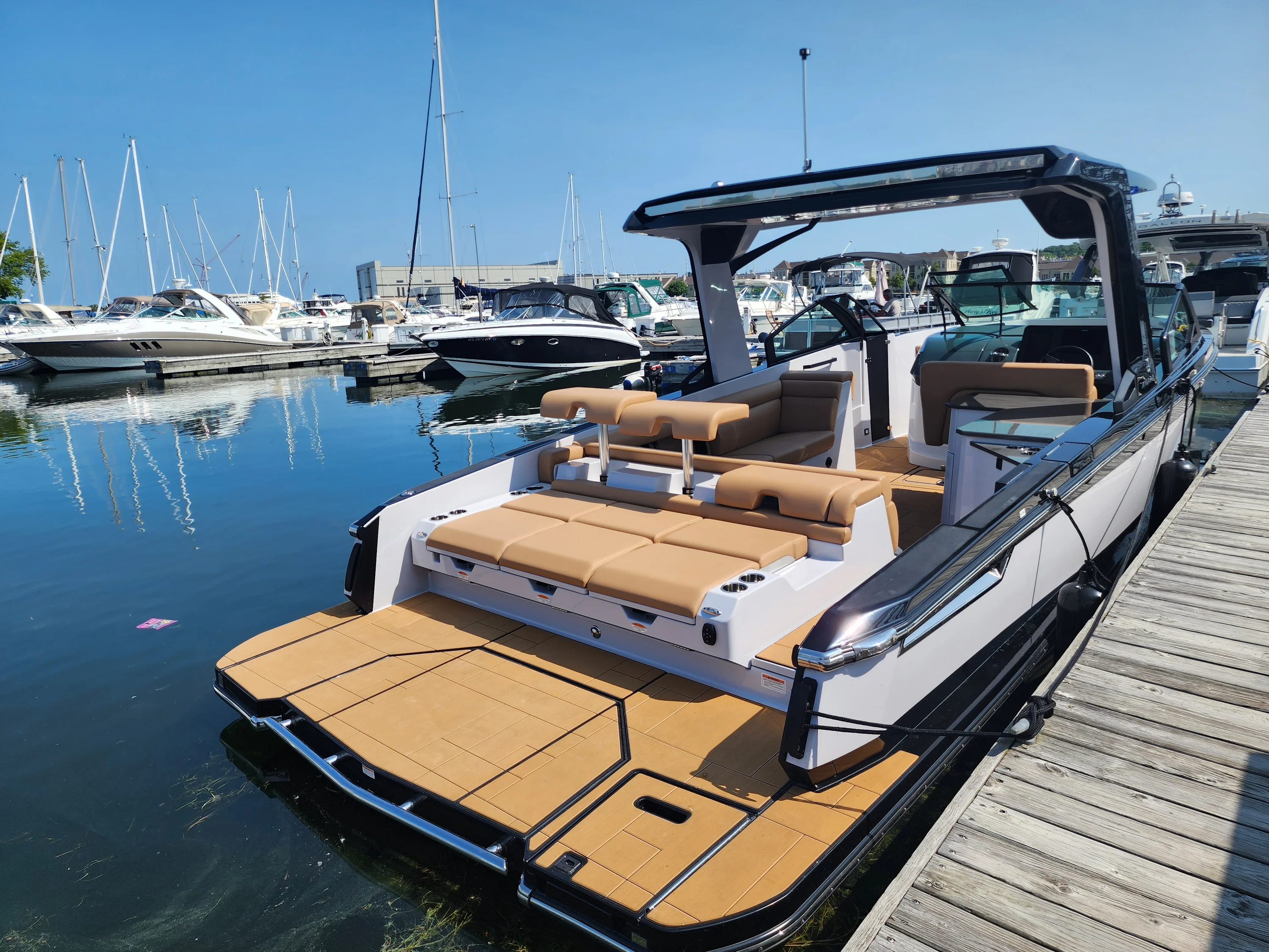 Contact us to findĀ out ALL available savings! Experience the ultimate in modern luxury with the all-new 2024 Aviara AV32. Designed to blend progressive styling with effortless comfort, this 32-foot bowrider delivers a smooth, stable ride and unmatched attention to detail. Powered by twin Ilmor T-6.0L 380HP engines with joystick control, the AV32 provides responsive handling and confident performance on any body of water. The open, thoughtfully designed layout is ideal for entertaining, featuring a fully equipped wet bar with sink and wine chiller, integrated bow cooler, and luxurious seating with heated helm and cockpit chairs. Premium finishes include Seadek flooring, solid surface accents, and richly detailed ebony oak interior trim. Enjoy convenience and modern technology with a 12ā chartplotter, 10.1ā touchscreen, ICE audio system, and powered retractable sunshade. Additional highlights include an electric hydraulic steering system, automatic and manual fire extinguishers, multiple LED lighting zones, and ample storage throughout. Whether cruising, relaxing, or entertaining, the AV32 offers the perfect combination of performance, luxury, and style. Brand-new and ready for your next adventure, this Aviara is meticulously equipped for comfort, convenience, and lasting enjoyment on the water. Call today to schedule your showing and see why the AV32 stands out in its class.