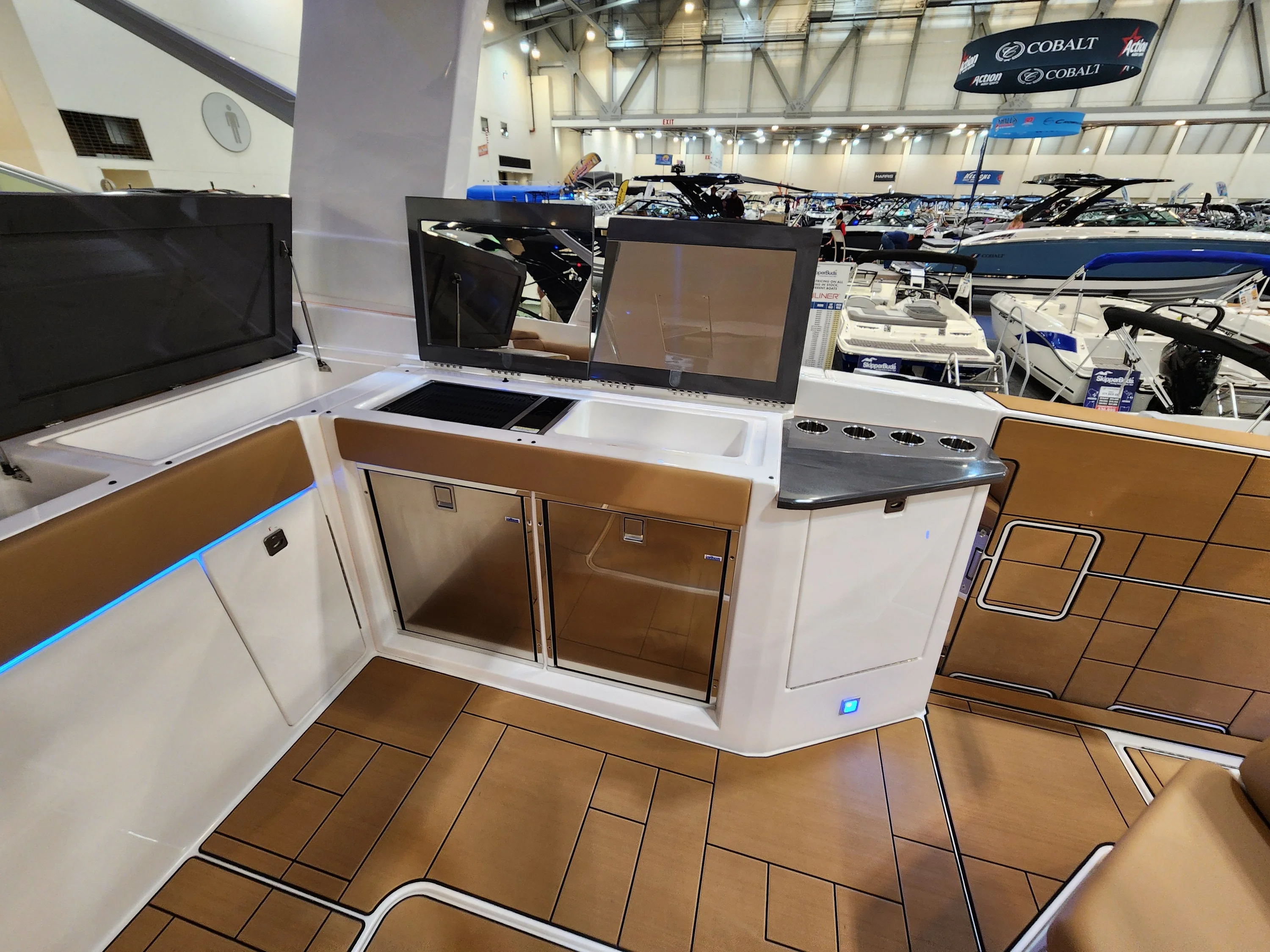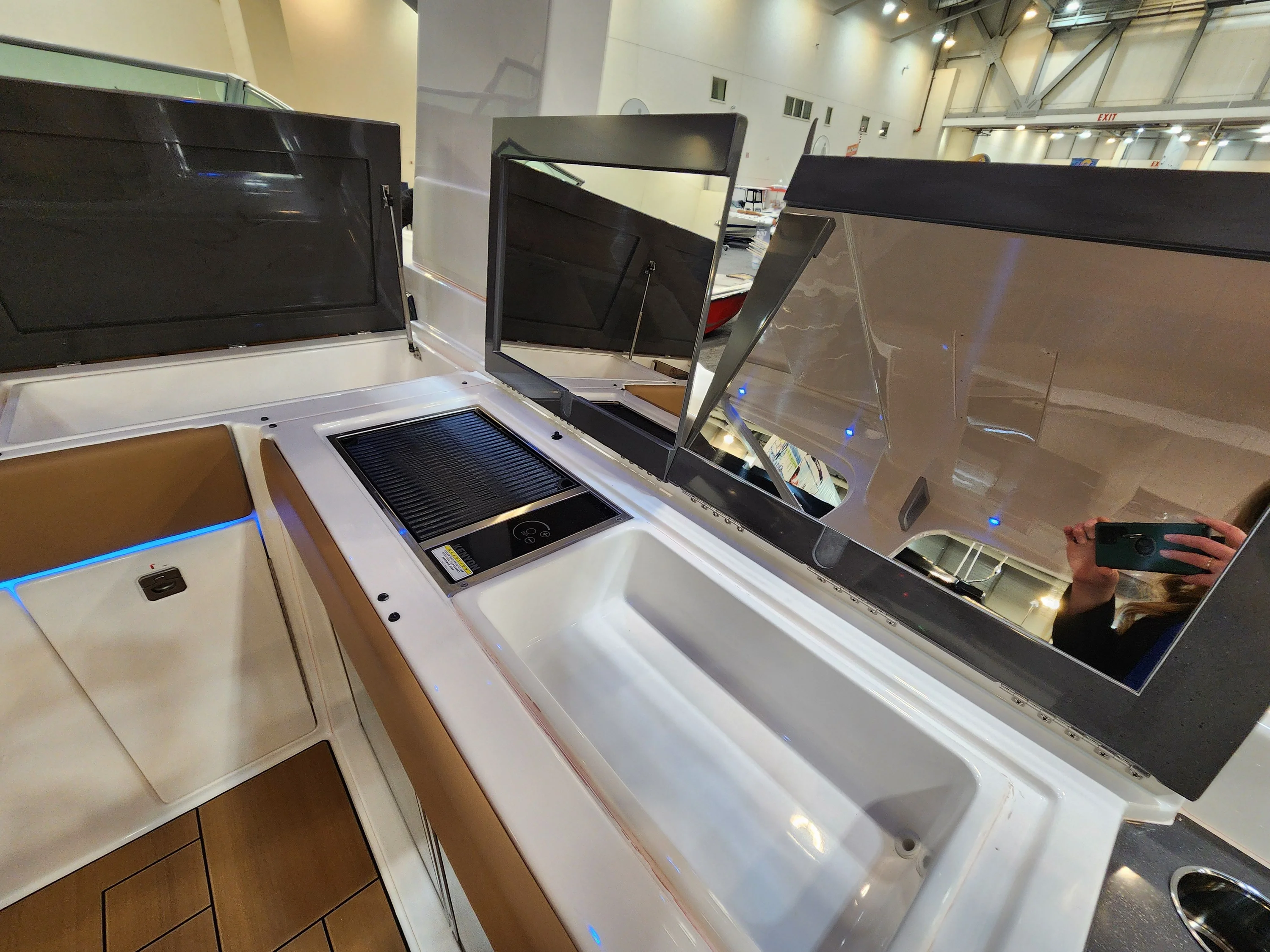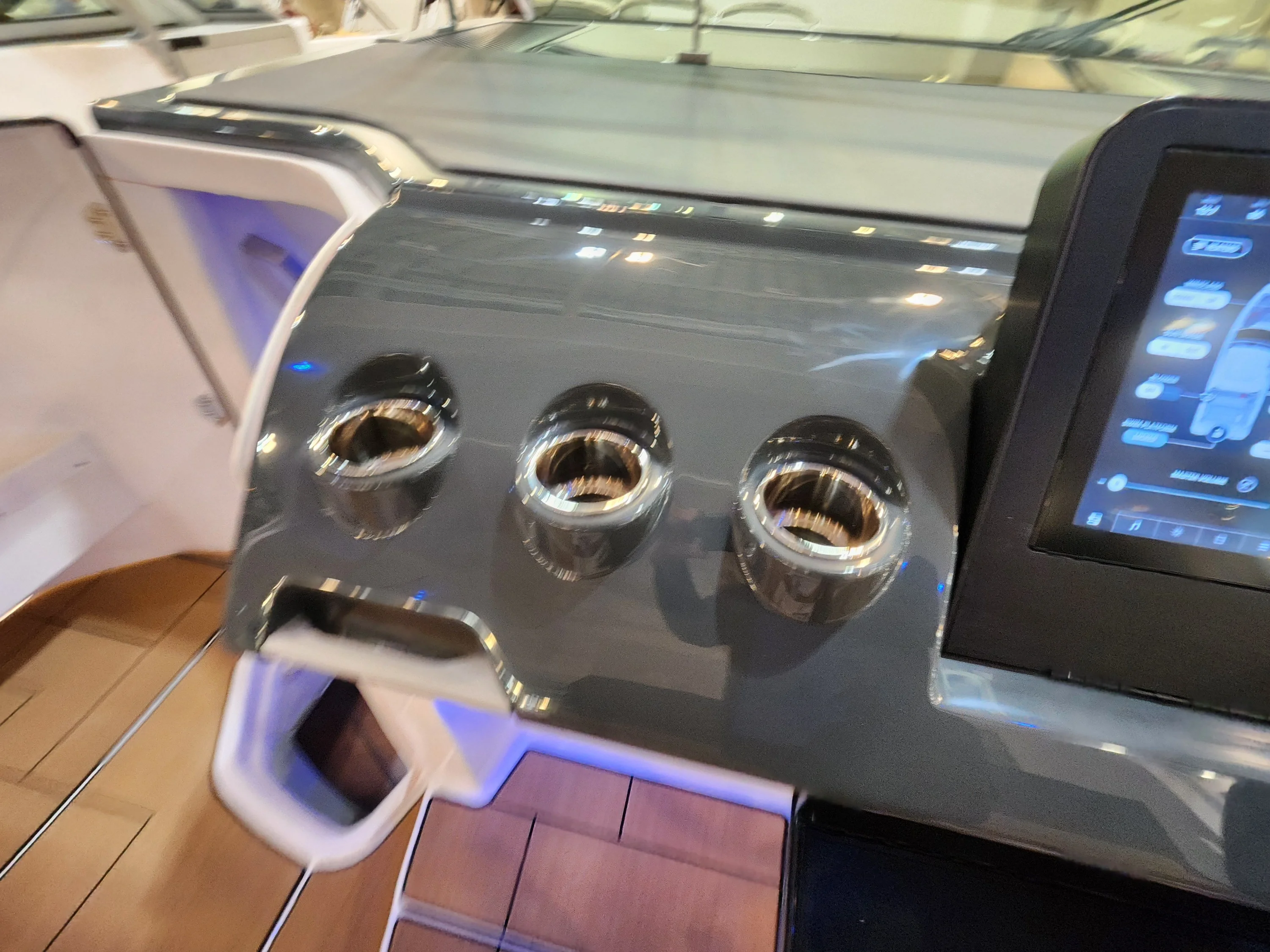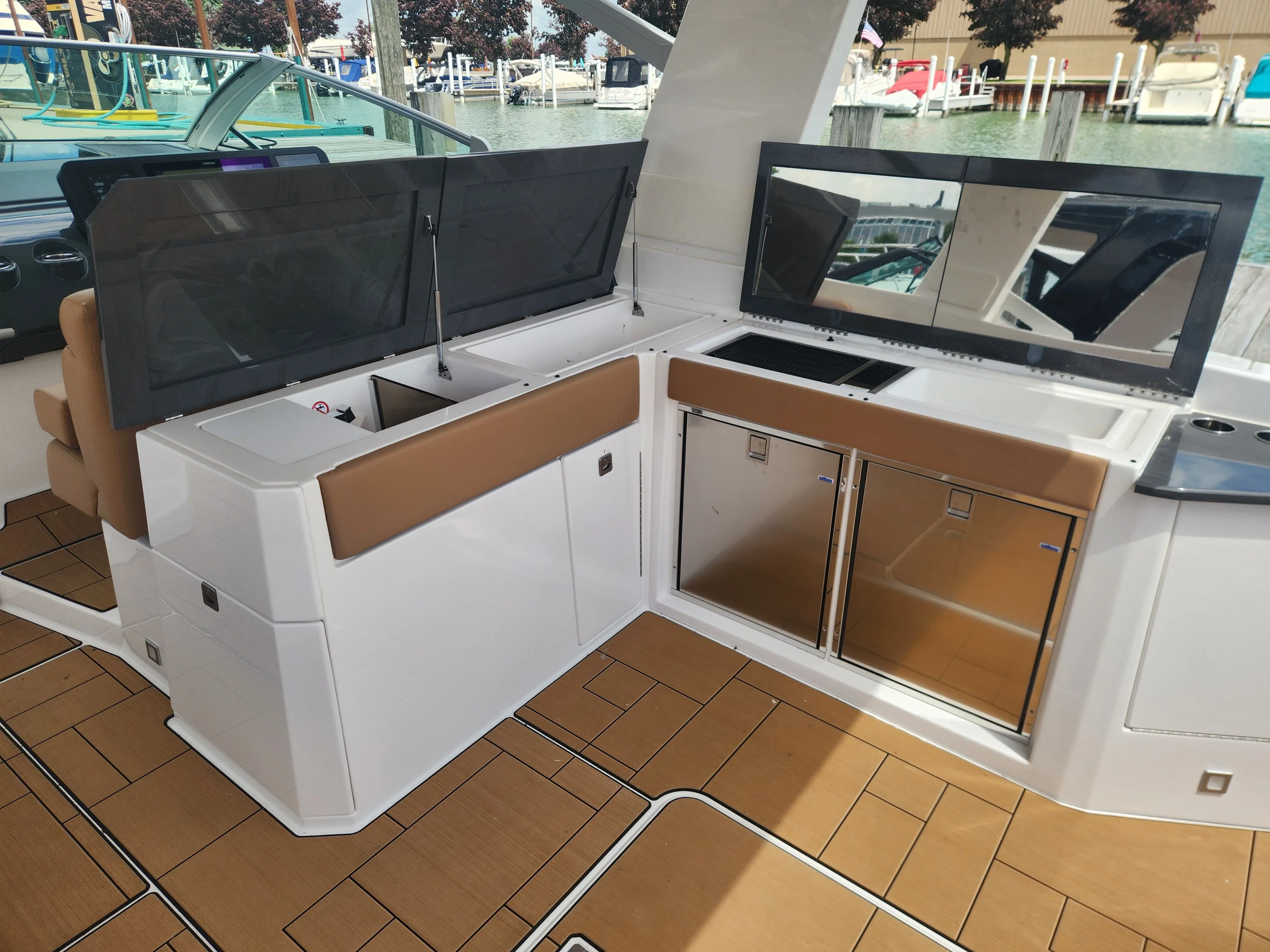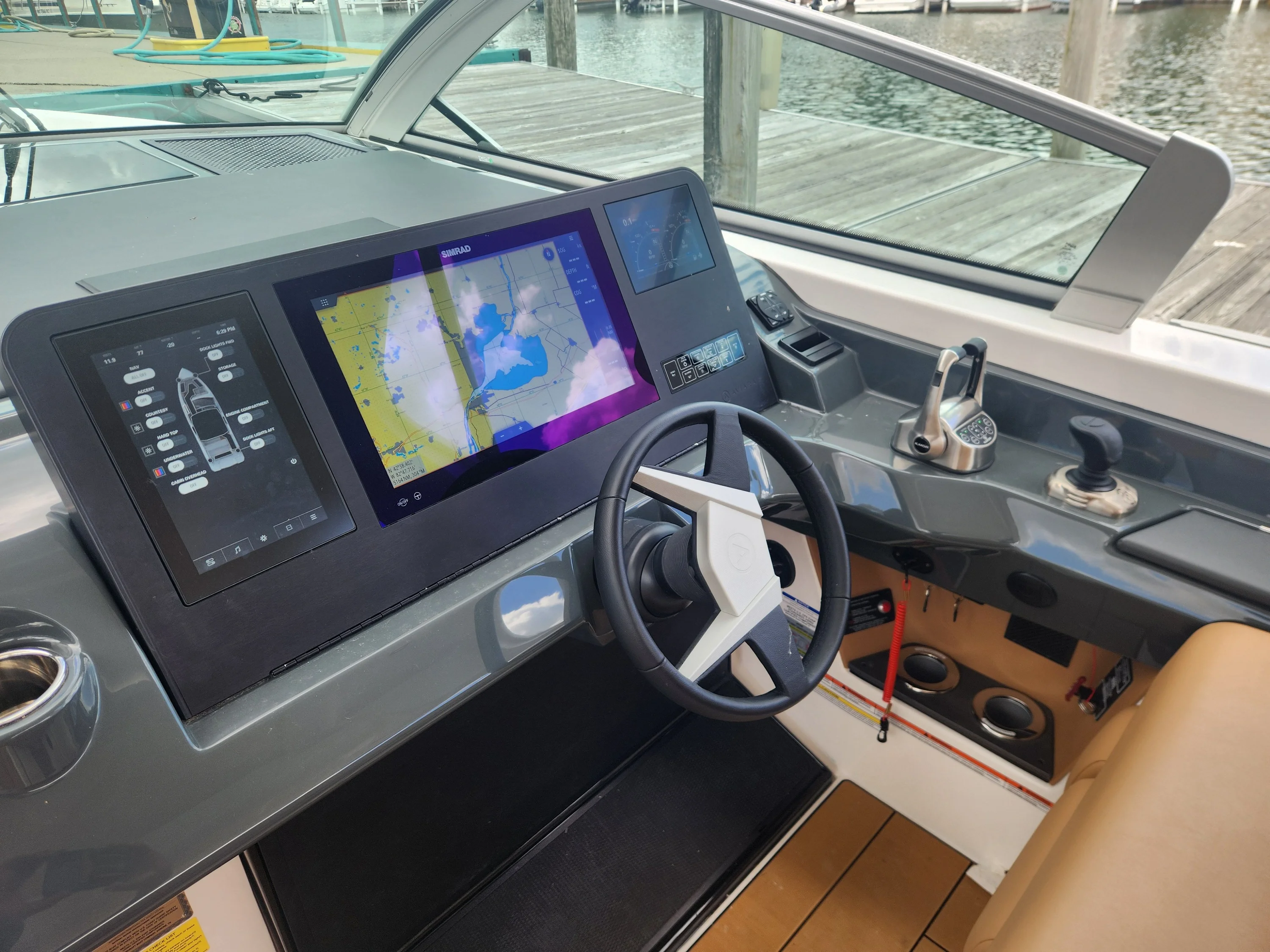 Contact us to findĀ out ALL available savings! The AV40 extends days on the water, together. Twin fold-down terraces convert into additional deck space to accommodate all the people you care about most. While a spacious cabin below that sleeps four includes a queen bed as well as a convertible lounger. Host a party from the premium helm, cook a gourmet meal, rest in the cabin, swim off the submersible platform, or just take in the beauty of the water from the convertible barstool-style seating - the AV40 can handle it all - on the same day.