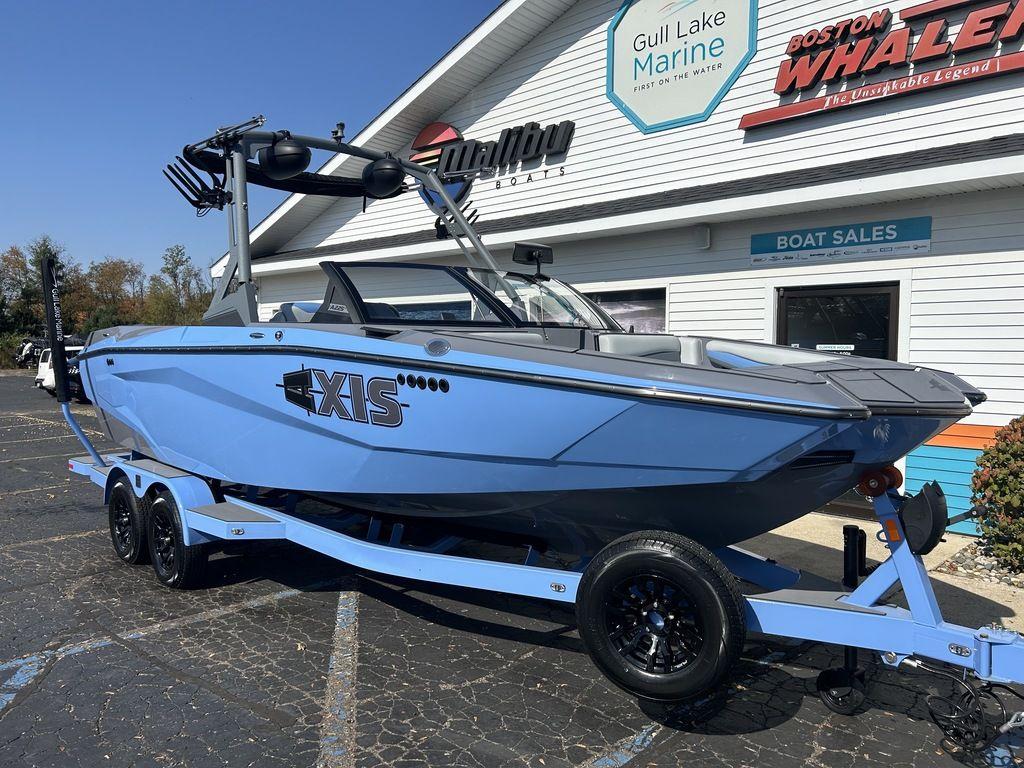 2024 Axis A225 – DEALER DEMOTurn heads and ride in style with the stunning 2024 Axis A225, featuring a striking Maya Blue and Graphite exterior paired with world-class technology. The AW20 Tower with Shock, equipped with Wet Sounds Rev 10 Tower Speakers, ensures a premium sound experience while adding functionality and style. With Surf Gate and Axis Surf Band, you’ll effortlessly control your wave and make every session unforgettable. The Garmin Touchscreen Display provides intuitive control over all major systems, making operation seamless and enjoyable.Notable Options Include: Malibu Monsoon M5Di EngineSurf Gate with Axis Surf BandPower Wedge IIIWet Sounds Rev 10 Tower SpeakersAW20 Tower with ShockGarmin Touchscreen DisplayPlug N’ Play Ballast and 3 Hard Tank Ballast2-Outlet HeatersDeck Trac and Soft-Grip FlooringDocking Lights and Underwater LightsFull Cover for ProtectionTandem-Axle Trailer Additional Details:Contact our team for current hours on this dealer-demo model. The innovative Surf Gate with Axis Surf Band allows for effortless wave customization, while the Power Wedge III shapes wakes and waves to your exact preference. The Wet Sounds Rev 10 speakers bring the party with crystal-clear sound. Whether you’re cruising, surfing, or relaxing, this boat is built to elevate every moment.Why Choose Gull Lake Marine? Gull Lake Marine is your premier Malibu/Axis dealer with over 100 years of boating expertise. We provide factory-certified, inboard technicians with the latest training to ensure your boat operates at peak performance. Every Malibu/Axis purchase includes: Free Delivery within 15 milesOn-Water Orientation with our trained Delivery CaptainFree Watersports Lesson to kickstart your fun For more details, visit GullLakeMarine.com, email us at sales@gulllakemarine.com