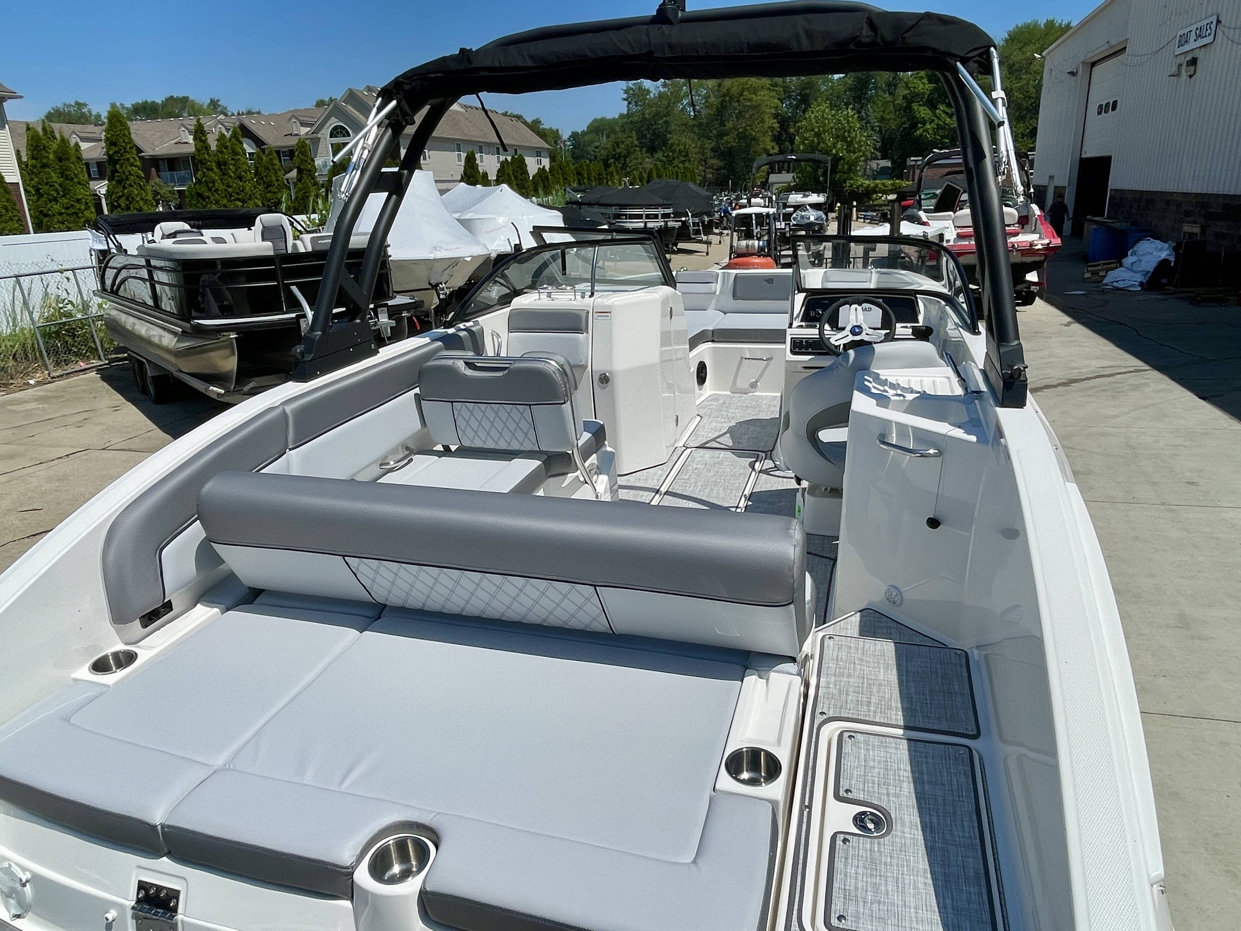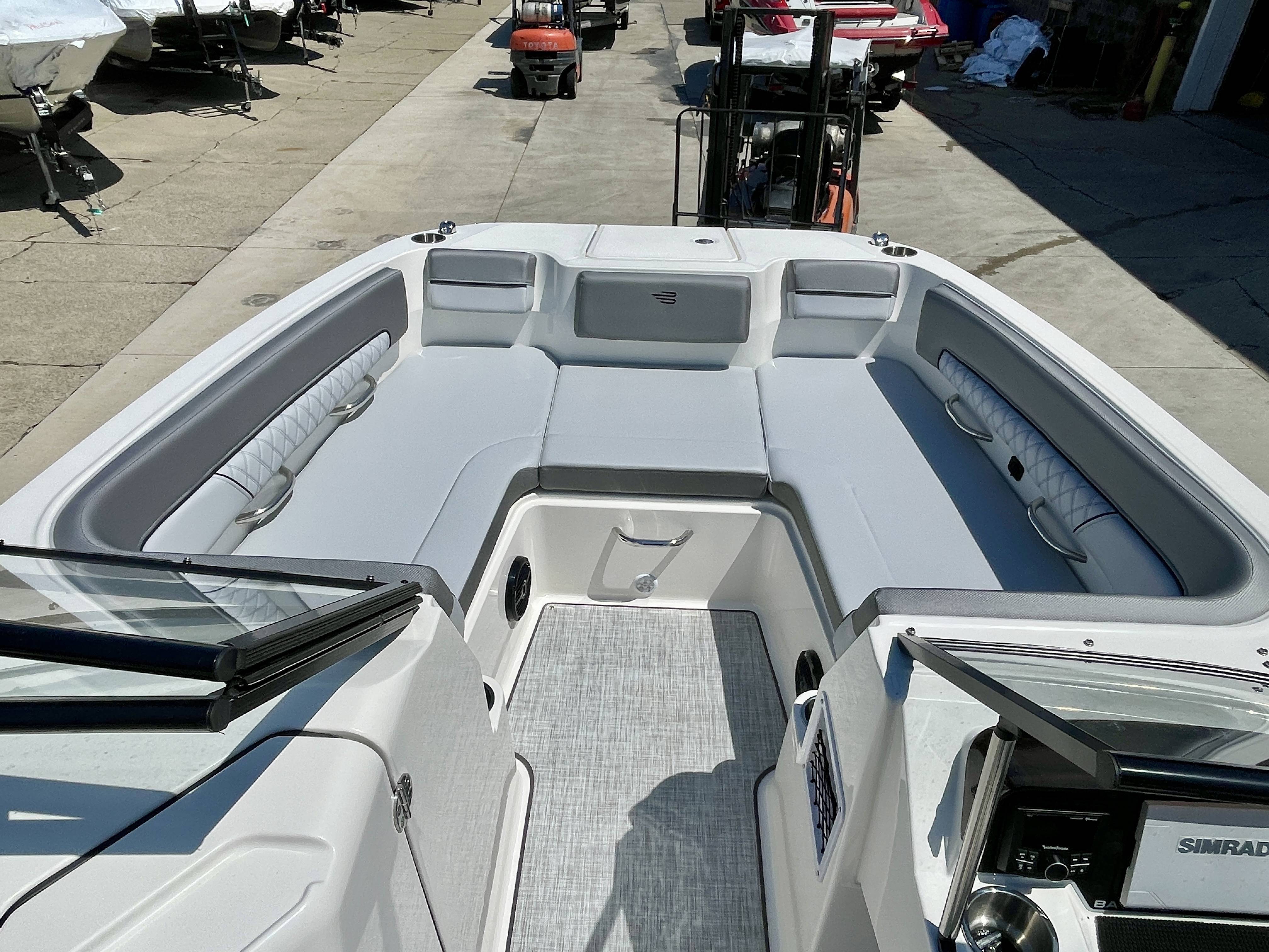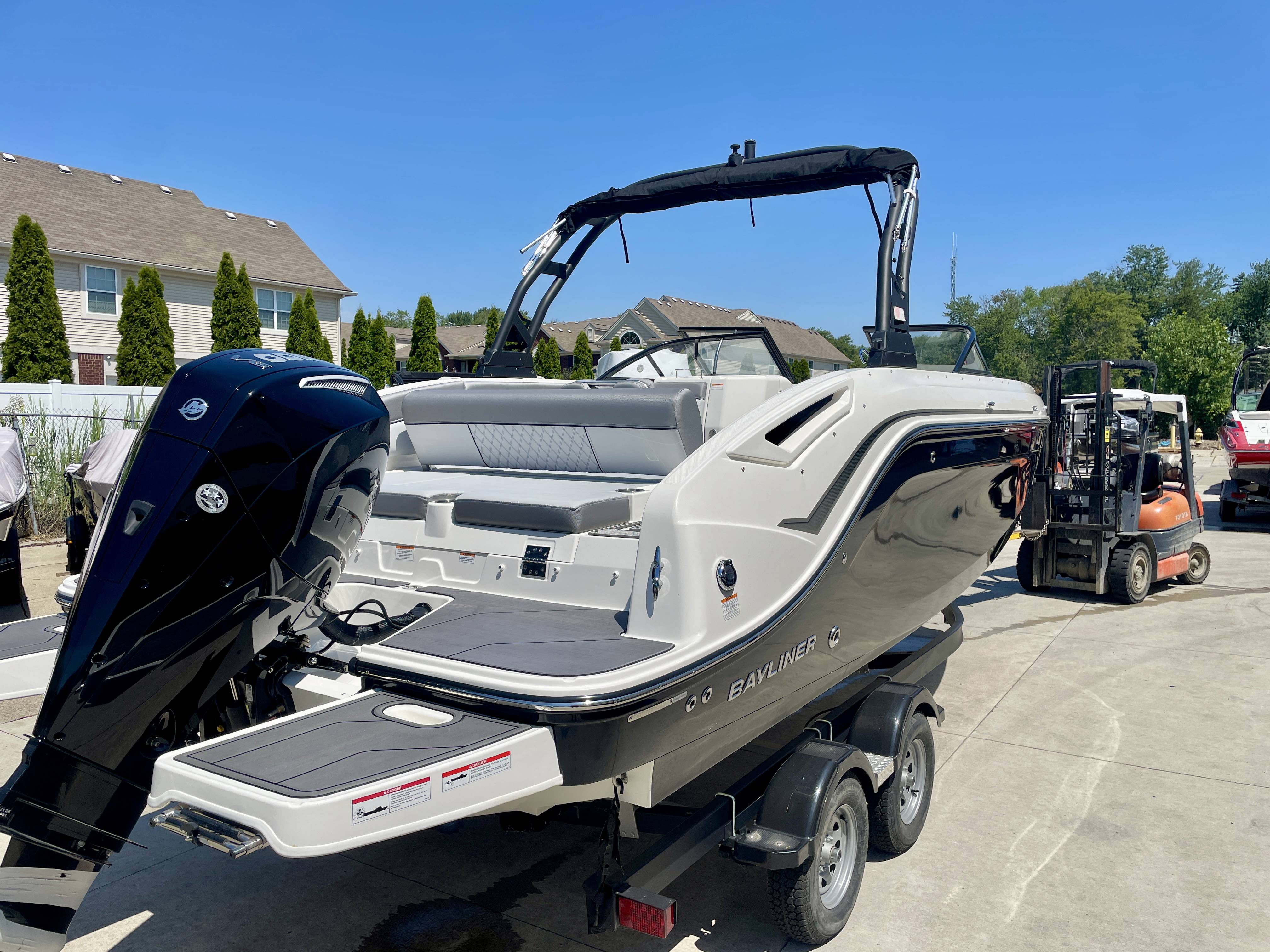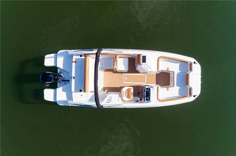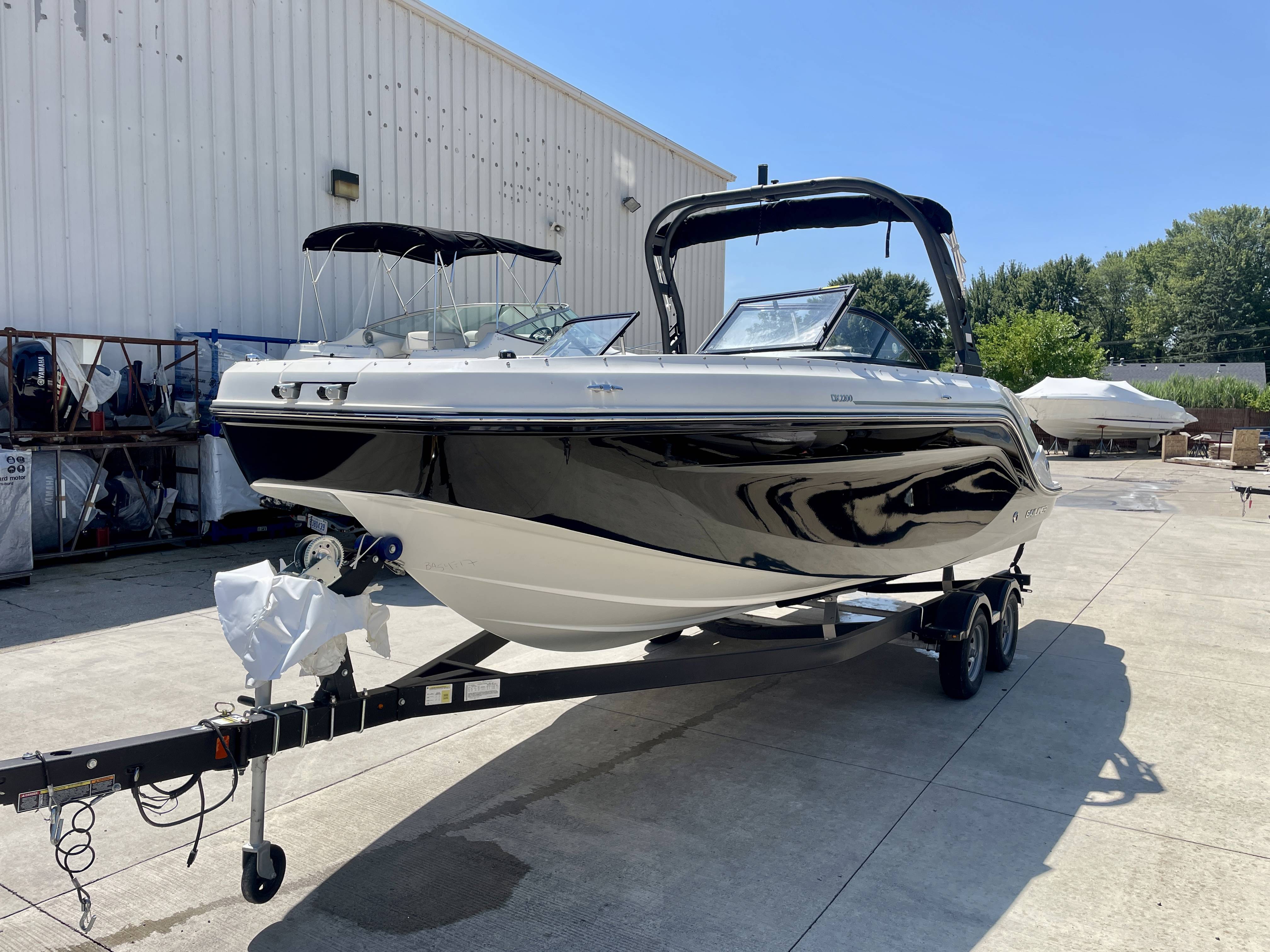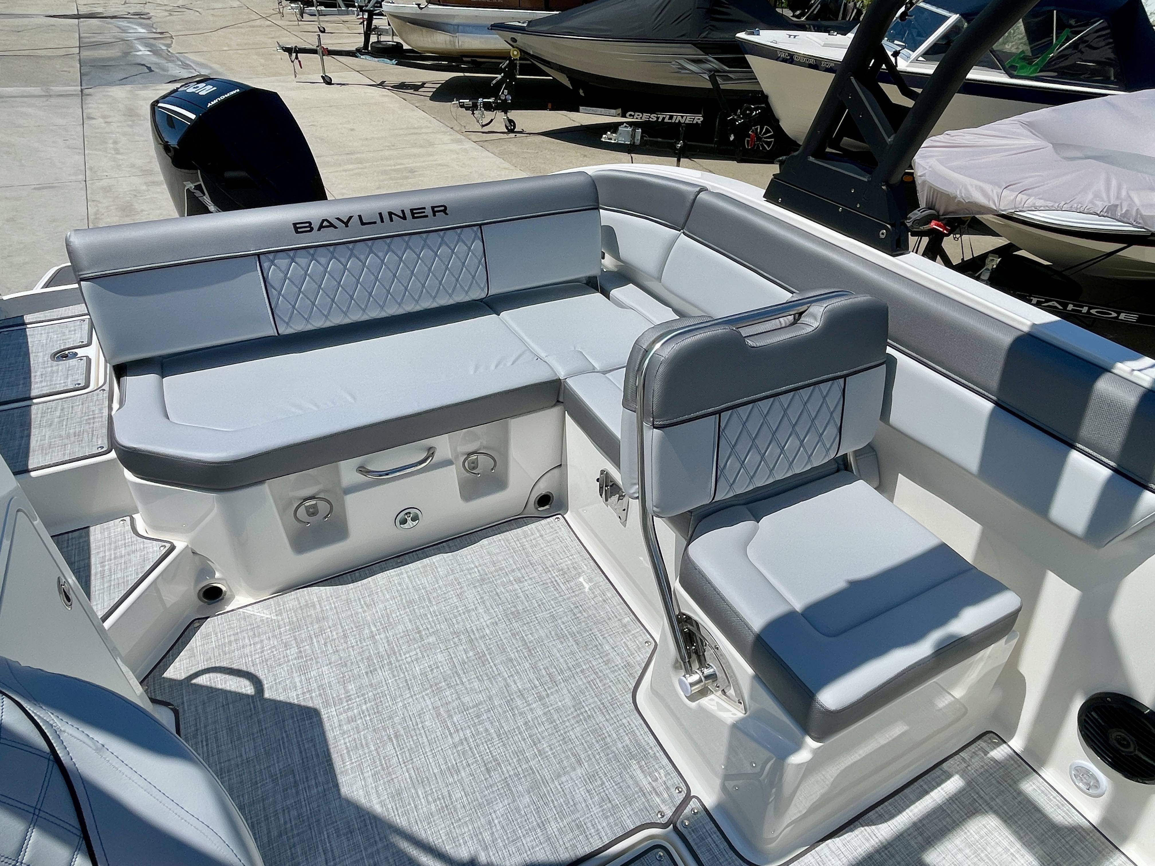 Factory Options:Mercury 200XLTrailer includedExterior- black hull sides with white bottomInterior- DX series graphitePower steeringStainless steel upgrade packageSki tow pylonProarc tower with integrated topFull windshield with opening center panelBow filler cushionBow well & cockpit coverSnap in seagrass flooring- graySwim platform gray matExtended swim platform gray matTransom shower with demand water systemDigital dash with mercury vessel view linkCockpit tableStereo- Rockford Fosgate