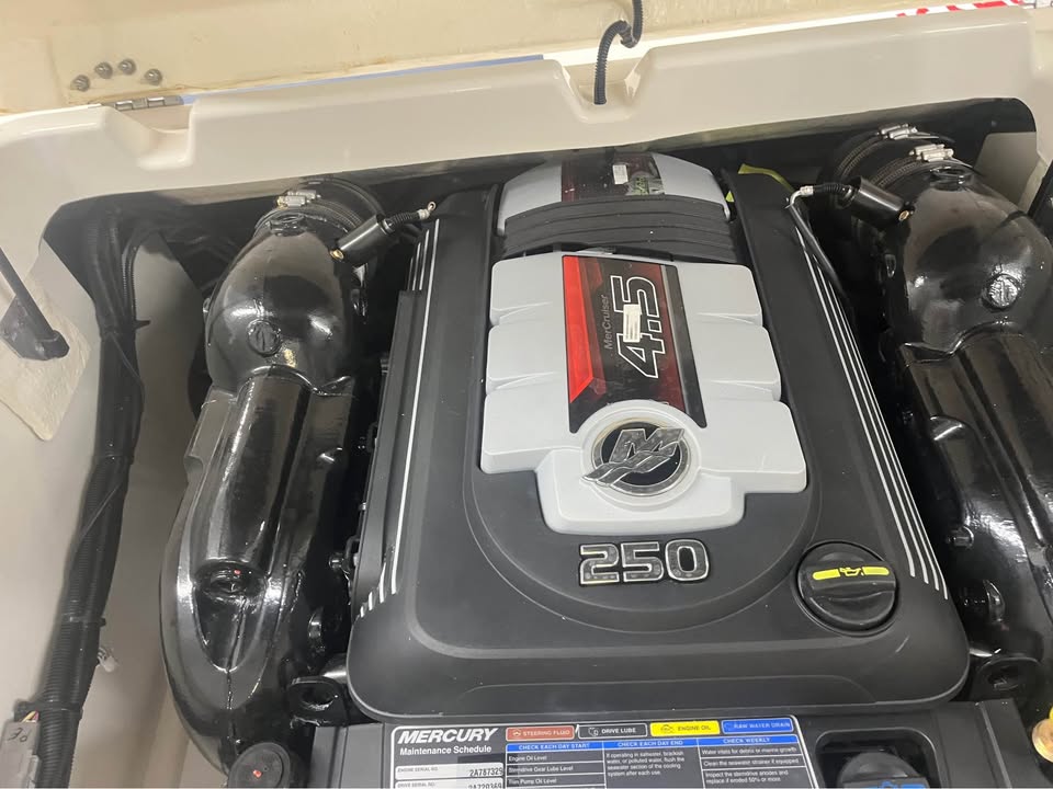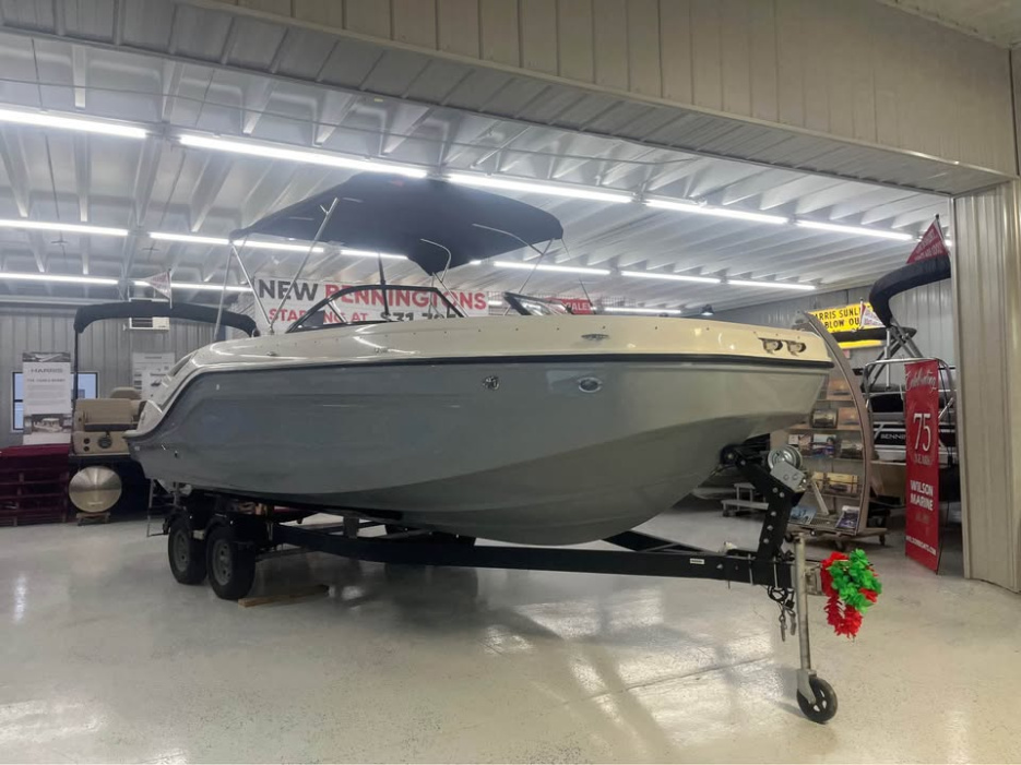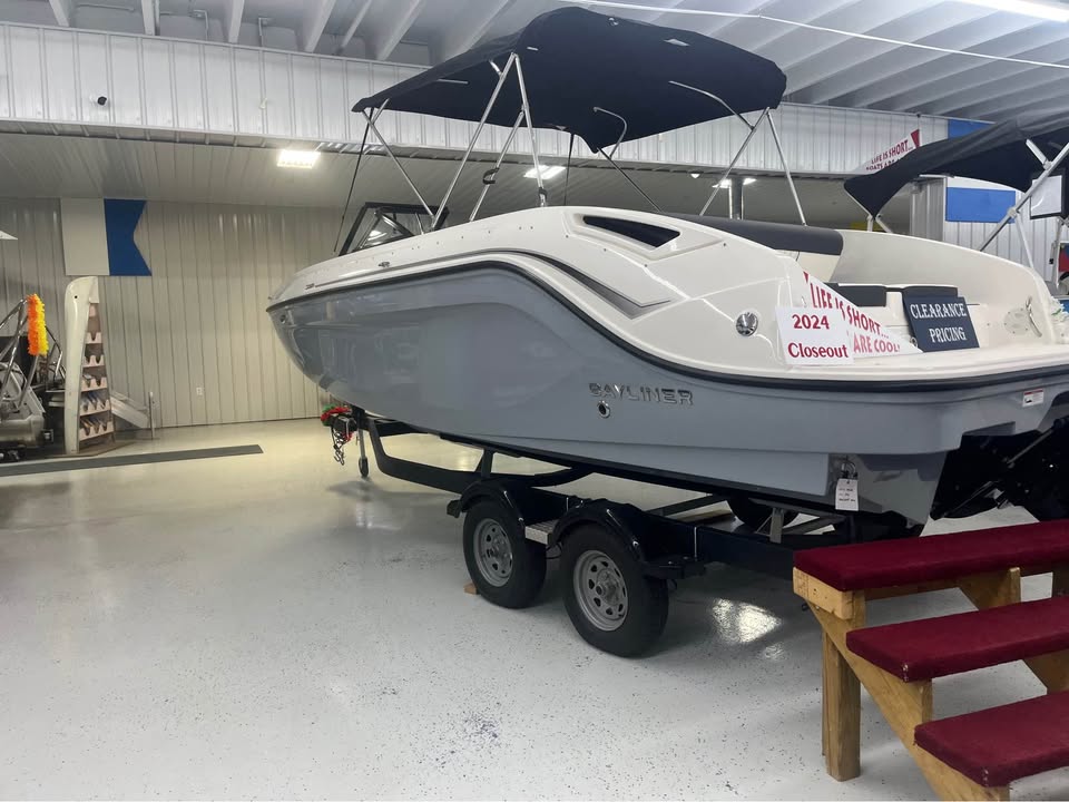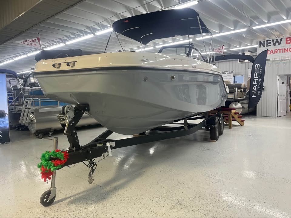 2024 Bayliner DX2250 Deck BoatFactory Installed Options:Mercruiser 250M MPI/A1 4.5LTrailer includedExterior- solid gray hullInterior- DX series gray/whiteWakeboard racksBimini top with bootFull windshield with opening center panelCockpit flooring- gray matTransom shower with demand water systemDigital depth indicatorCockpit tableExterior lighting packageDual battery switchRockford Fosgate stereoDual battery E/24V plug